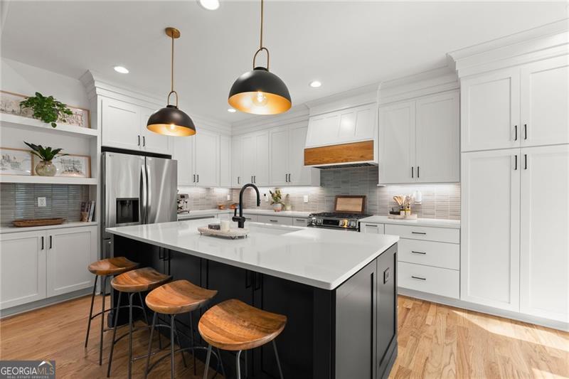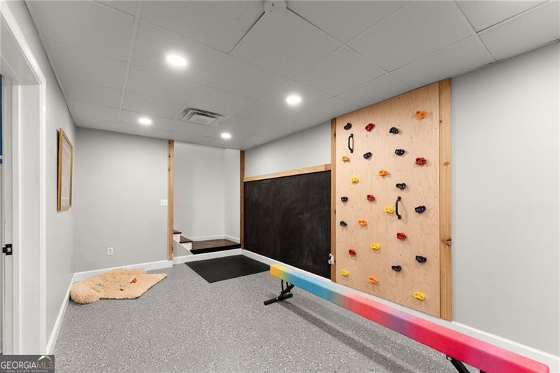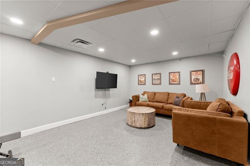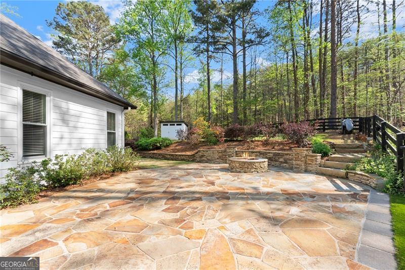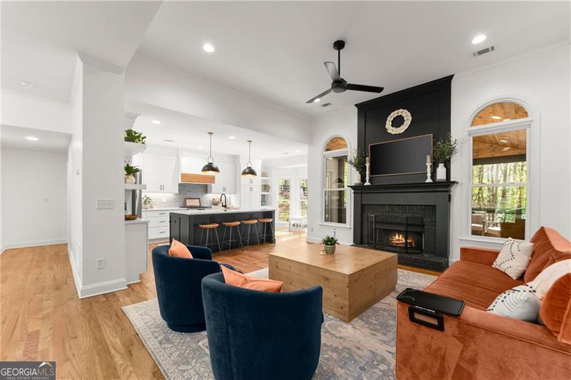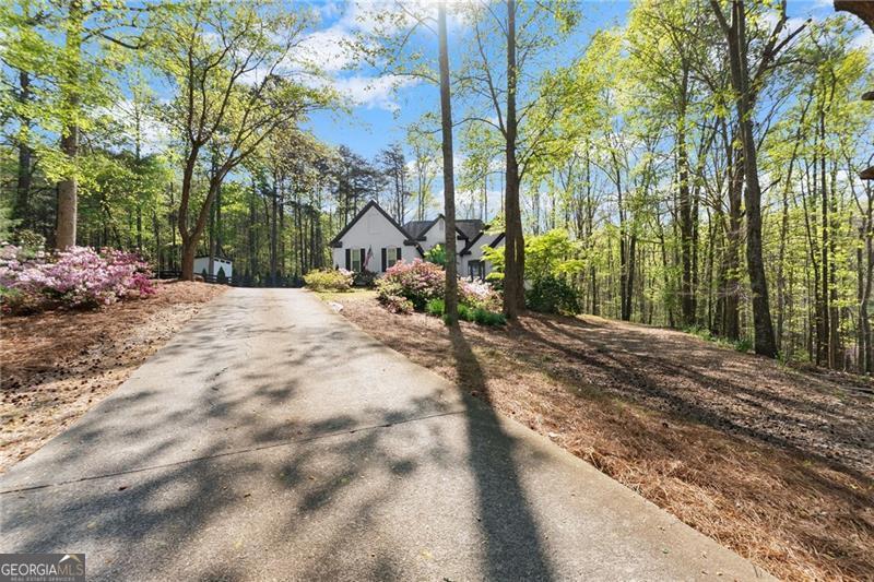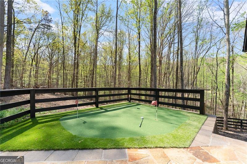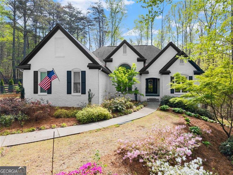A rare find in this area, this fully renovated ranch on a finished basement sits on just over an acre on Sawnee Mountain, tucked into a quiet cul-de-sac and just minutes from the Cumming City Center. Surrounded by mature trees and professional landscaping, the outdoor space is truly special with a screened-in porch and grilling area, extended back patio, fire pit, putting green, garden area, and extra parking-perfect for both relaxing and entertaining. Inside, the home has been completely updated with new flooring, paint, and lighting throughout, featuring an open-concept layout with a vaulted dining room, a cozy living room with custom fireplace and accent wall, and a beautifully designed kitchen with white cabinetry, a custom island, hood vent, and coffee station that flows right out to the screened porch. The primary suite feels like a retreat with a custom wood ceiling, brick accent wall, spa-like bathroom with glass shower, freestanding tub, double vanity, and a closet with built-ins, while two secondary bedrooms and a full bath are located on the opposite side of the home. The finished basement offers so much flexibility with a rec room, gym area, two bedrooms, full bath, wine cellar, and direct access to the backyard. Located in a neighborhood with a pool, tennis courts, and pond, this home truly checks every box in a prime Cumming location!
