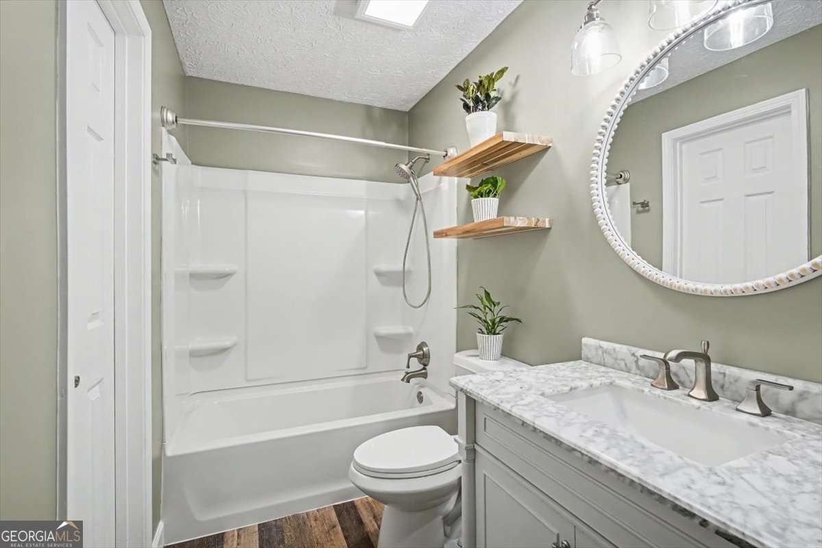 Welcome to this beautifully updated, energy-efficient home in Woodstock, nestled on a private 1-acre lot. This move-in ready property seamlessly blends modern upgrades, flexible living space, and thoughtfully designed systems for comfort, convenience, and peace of mind. Inside, you'll find fresh interior paint, renovated bathrooms, new windows throughout, and enhanced attic insulation. A whole-home UV air purification system adds an extra layer of comfort and air quality. Major mechanical upgrades include a tankless water heater, a 98% high-efficiency natural gas furnace, and a top-of-the-line 26 SEER Carrier inverter HVAC system. Additional features such as an Aprilaire whole-home steam humidifier and commercial-grade basement dehumidifier ensure year-round comfort and efficiency. The partially finished basement offers versatile space ideal for a home office, gym, or guest suite, along with ample storage and a dedicated workshop area. A two-car garage provides everyday convenience, while the impressive 30x30 concrete outbuilding with a lower level/basement offers endless potential - perfect for a future dream garage, workshop, or additional living space. For added security and peace of mind, the home is equipped with a full Lorex security camera system and Ring doorbells at the main entrances. Step outside to enjoy inviting outdoor living, complete with beautiful curb appeal, fresh pine straw and mulch, vibrant landscaping, and a cozy fire pit area with string lighting - perfect for relaxing evenings or entertaining guests. This property truly has it all - modern upgrades, energy efficiency, privacy, and room to grow and all just minutes from everything Woodstock has to offer.