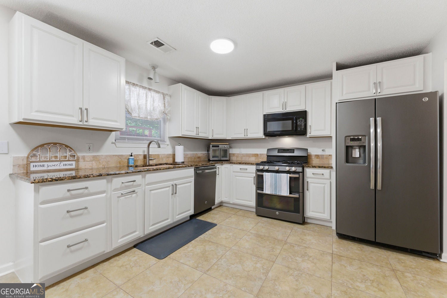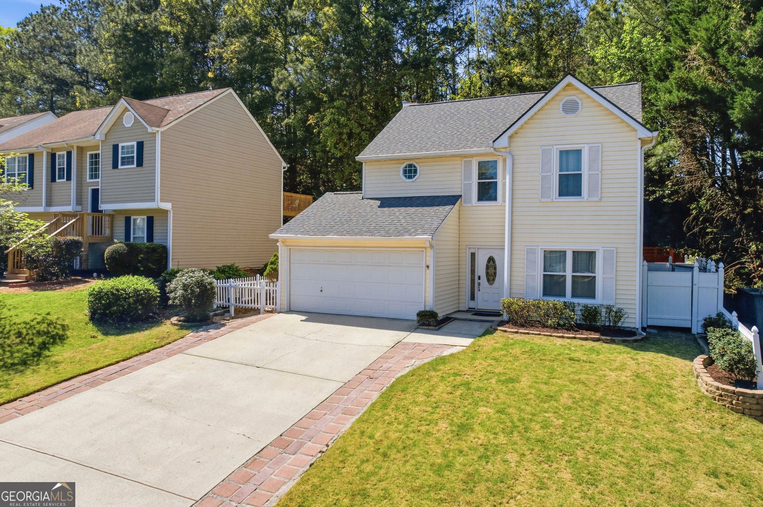 Welcome to effortless living in a sought-after community just minutes from Kennesaw State University, scenic hiking trails, shopping, and convenient access to I-75. This move-in ready home offers a great blend of comfort, updates, and low-maintenance living in an ideal location. The kitchen is spacious and functional, featuring granite countertops, stainless steel appliances, and white cabinetry, along with room for a breakfast area or casual seating. It flows naturally into the family room, making it easy to stay connected while cooking or entertaining. A conveniently located half bath on the main level adds to the home's practicality. Enjoy outdoor living in your private, oversized paved courtyard with a charming white picket fenced backyard-perfect for relaxing or hosting. Upstairs, retreat to the spacious primary suite featuring a vaulted ceiling and ceiling fan for added comfort. The ensuite bath offers a relaxing, spa-like feel with a large soaking tub, generous vanity space, and a well-sized walk-in closet that provides excellent storage and organization. Two additional bedrooms, a full bath, and a conveniently located laundry room complete the upper level. Major updates include a brand-new roof and HVAC replaced in 2022, providing peace of mind for the next owner. A well-maintained home in a prime location-ready for you to move in and enjoy.