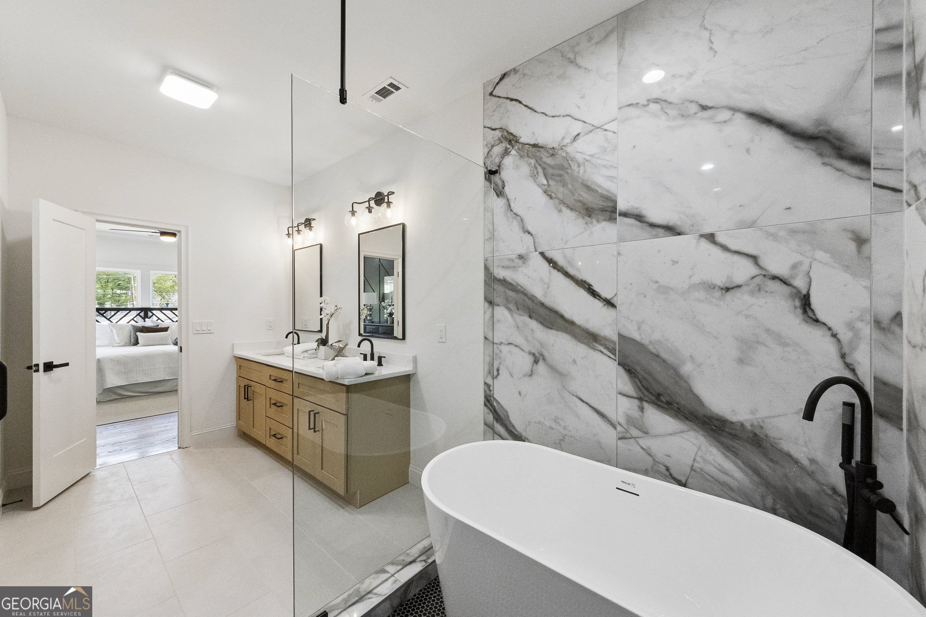 - Interior FeaturesDouble Vanity, High Ceilings, Separate Shower, Soaking Tub, Walk-In Closet(s)