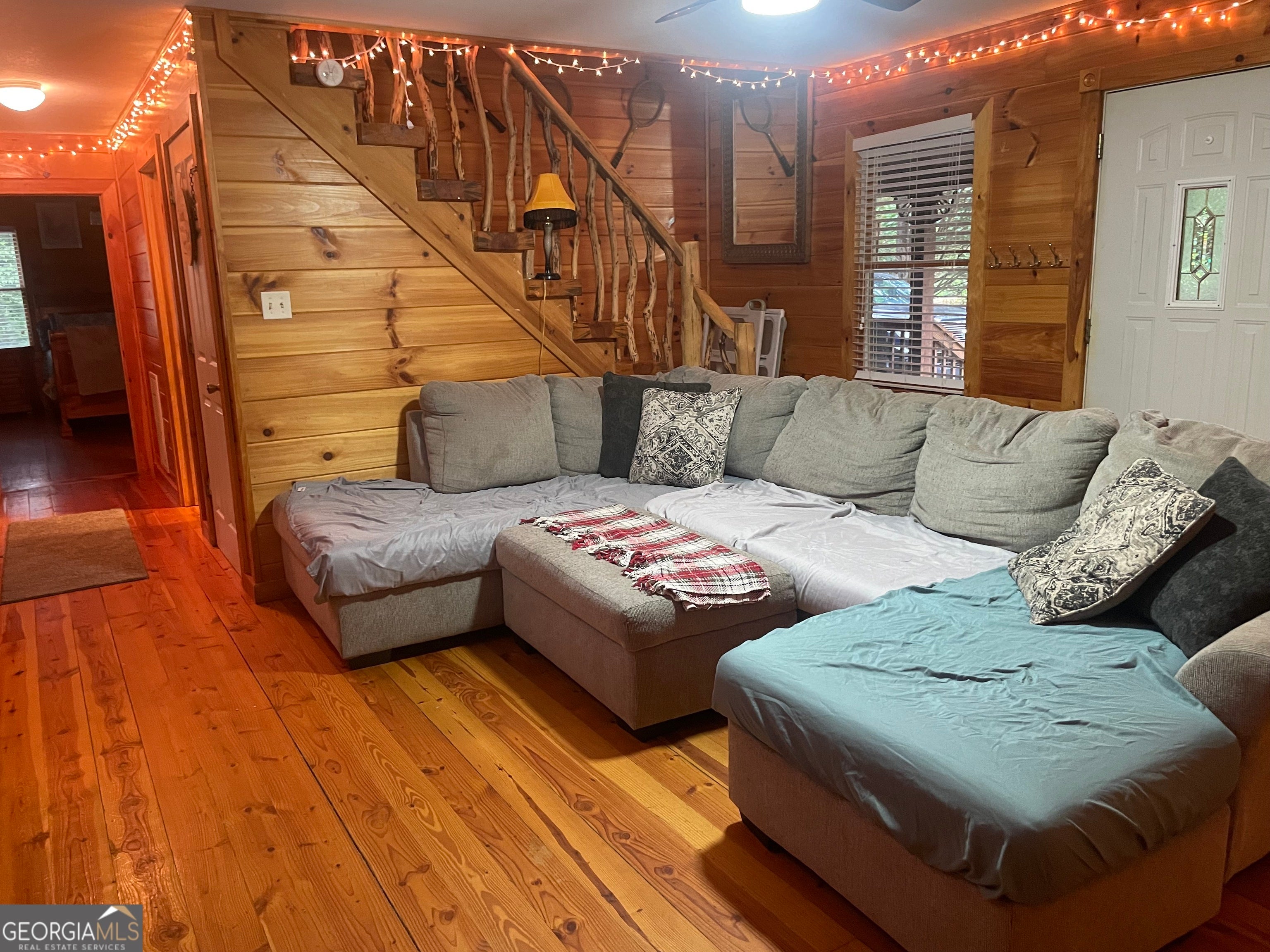 PRICE REDUCED! Motivated Sellers! Beautiful cabin with porches galore! Great location close to schools an shopping! Home has 3 large bedrooms and 2 full baths. Master on main with huge walk-in closet and it's own entrance from porch. Two additional bedrooms upstairs with an additional sitting area/loft. Exterior built with natural wood siding, tin roof (roof screws recently replaced), and lots of covered outdoor seating. Main level has pine flooring throughout and tongue and groove walls. Gorgeous live edge vanity in main bathroom with tile floors. Spacious kitchen with granite countertops, new solid surface stove and solid wood cabinets. Farmhouse light fixtures and all the special touches you hope to find in a cabin! Kitchen opens to large dining room and dining area opens onto large covered back porch. Natural wood pickets and handrails showcase the staircase heading upstairs. Back porch is ready for you! Complete with fans, lighting, curtains and wooden swing bed! Porch overlooks open back yard with rock fire pit and play area. Home sits on a full unfinished basement. Basement has regular door heading out to back yard as well as garage door if a shop is desired! So much potential to make it your own! Few additional notes: Main bathroom can be accessed from master bedroom as well as the living room. There are 2 laundry areas. One is in the closet of dining room, another is in the basement if larger laundry is desired. Please bring all offers, sellers need to sell!