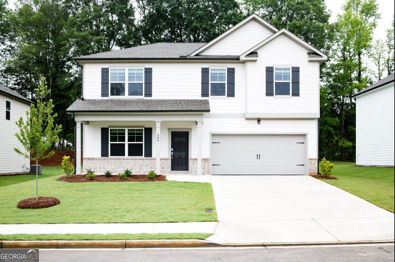 This stunning single-family home welcomes you with a charming covered front porch and is located in a vibrant community with exceptional amenities and great schools. Be the first to enjoy this brand-new two-story residence, thoughtfully designed for comfort and modern living.The first floor features a spacious open-concept layout, seamlessly connecting the kitchen, dining area, and family room perfect for entertaining. A flex space on the main level offers versatility for a home office or personalized use. The gourmet kitchen shines with white cabinetry, granite countertops, stainless steel appliances, a walk-in pantry, and a large island with numerous upgrades.Upstairs, you'll find four generously sized bedrooms centered around a versatile loft area. One secondary bedroom features a private bath, while the owner's suite offers a luxurious en-suite bathroom with dual vanities, a large super shower, and a spacious walk-in closet. The conveniently located laundry room is also on the second floor.The front of the home faces a large green space with a fire pit and direct views of the kids' playground, making it ideal for families and gatherings.Enjoy peaceful evenings in the private, flat, and spacious backyard perfect for relaxation, play, and outdoor fun.Community amenities include a cabana, fire pit, picnic pavilion, walking trails, and a tot lot creating a resort-like atmosphere right outside your door. The mailbox is just steps away, adding everyday convenience. Surrounded by greenery, tranquility, and thoughtful design, this home offers the perfect blend of style, function, and location truly a must-see! Washer and Dryer is included!!!