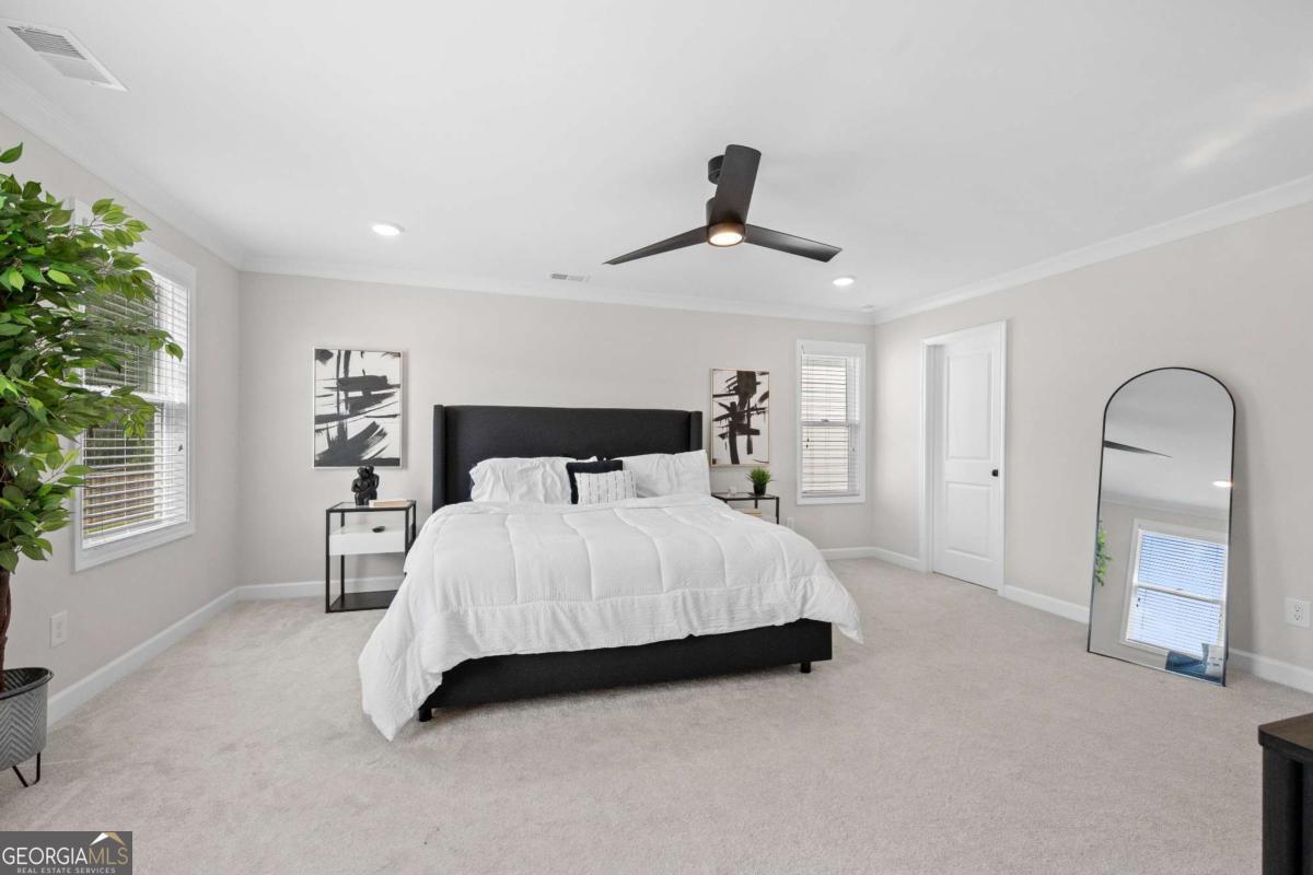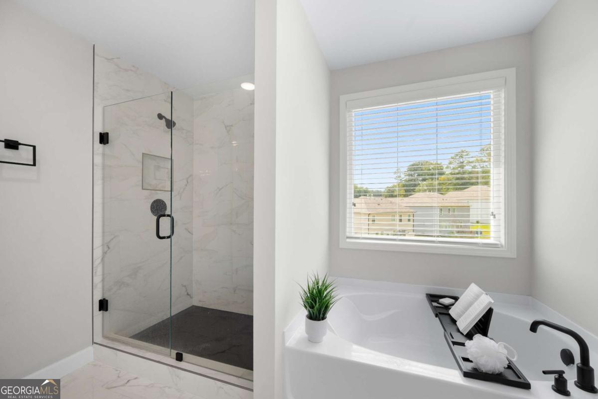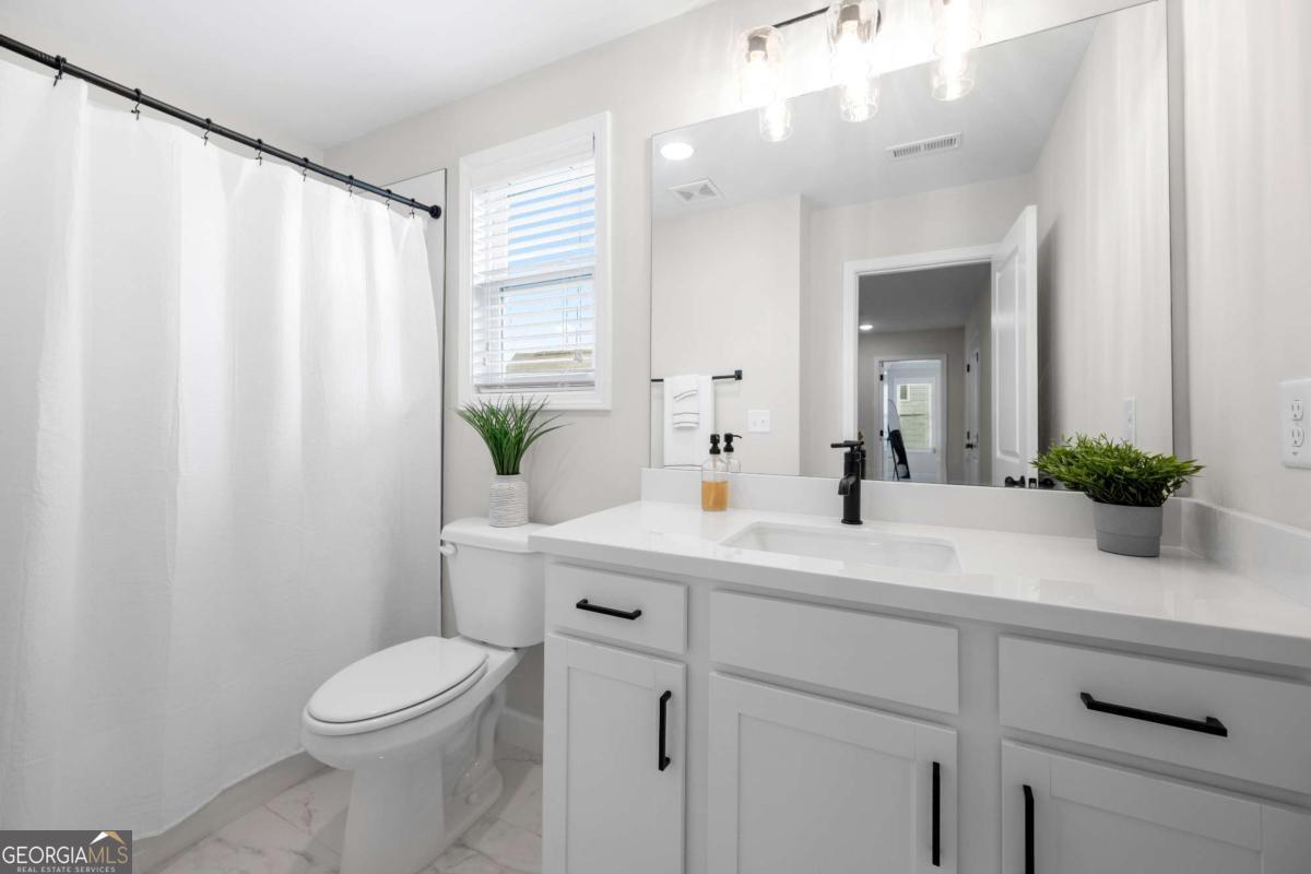 Welcome to your dream home in the heart of Mableton! This spacious 4-bedroom, 2.5-bath home beautifully combines comfort, style, and thoughtful upgrades-over $50,000 in premium enhancements installed by the seller. From the moment you enter, you're welcomed by a versatile flex space-perfect for a home office, formal dining room, or creative retreat. The open-concept design flows effortlessly into a cozy fireside living room and a chef's kitchen boasting an oversized island, upgraded vent hood, abundant counter space, and cabinetry designed for both everyday living and effortless entertaining. Upstairs, the primary suite offers a true retreat with a spa-like bath featuring a walk-in shower, soaking tub, and expansive closet space. Step outside and enjoy the covered patio overlooking a fully irrigated front and backyard-an ideal setting for outdoor dining, entertaining, or simply relaxing year-round. Inside, whole-house surround sound creates the perfect atmosphere whether you're hosting friends or enjoying a quiet evening in. Additional highlights include a 2-car garage and an unbeatable location near shopping, dining, and commuter routes.