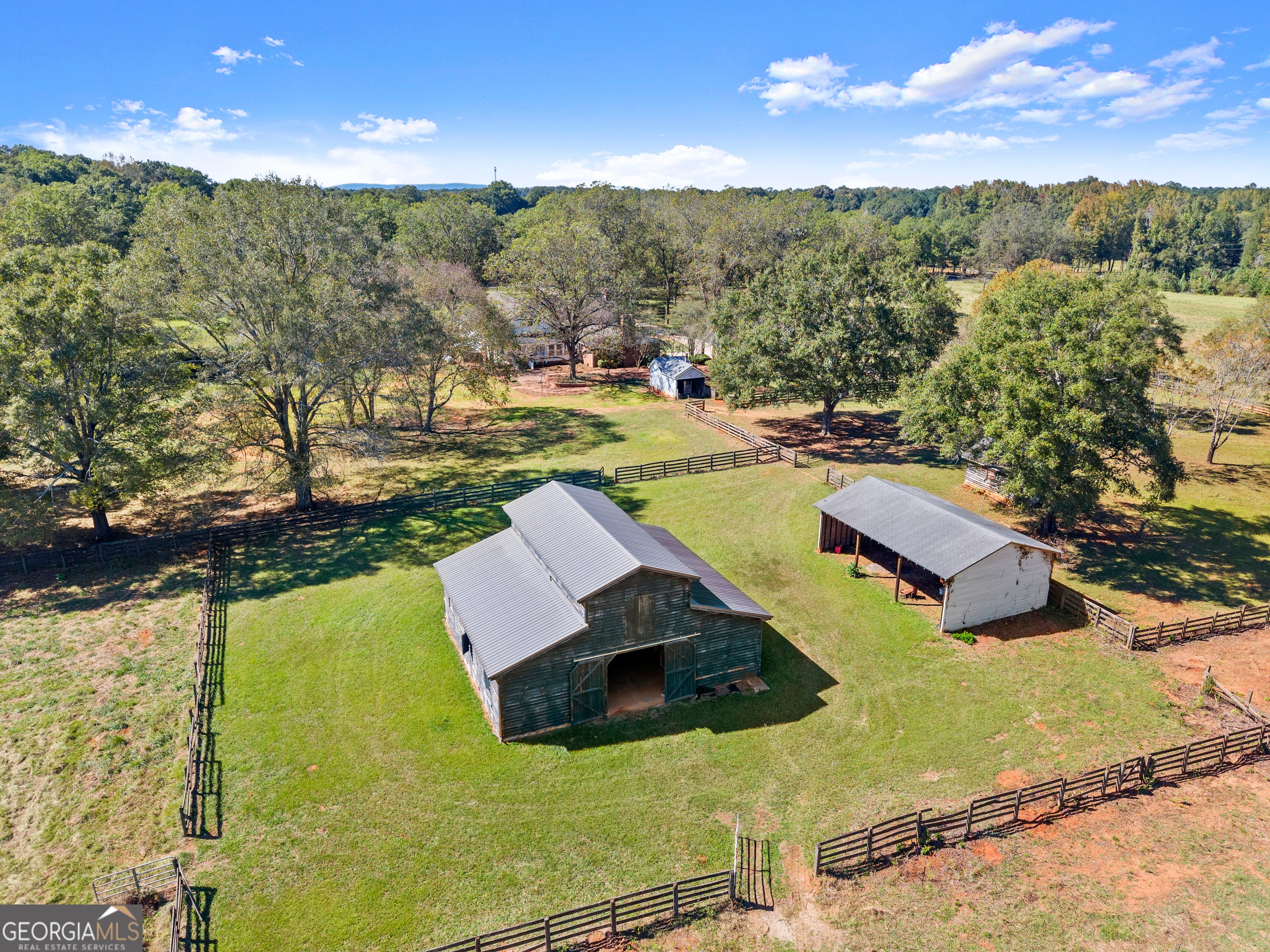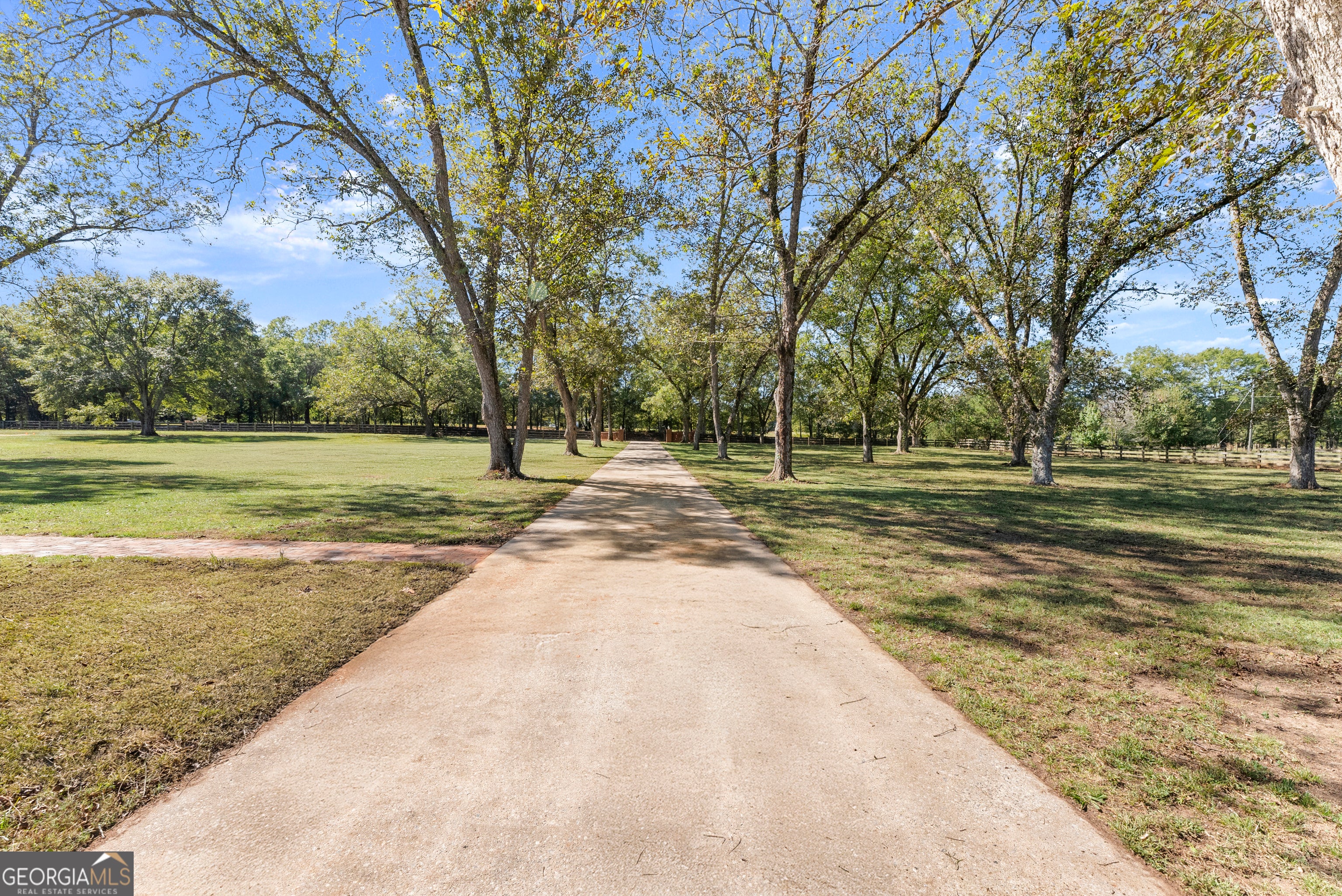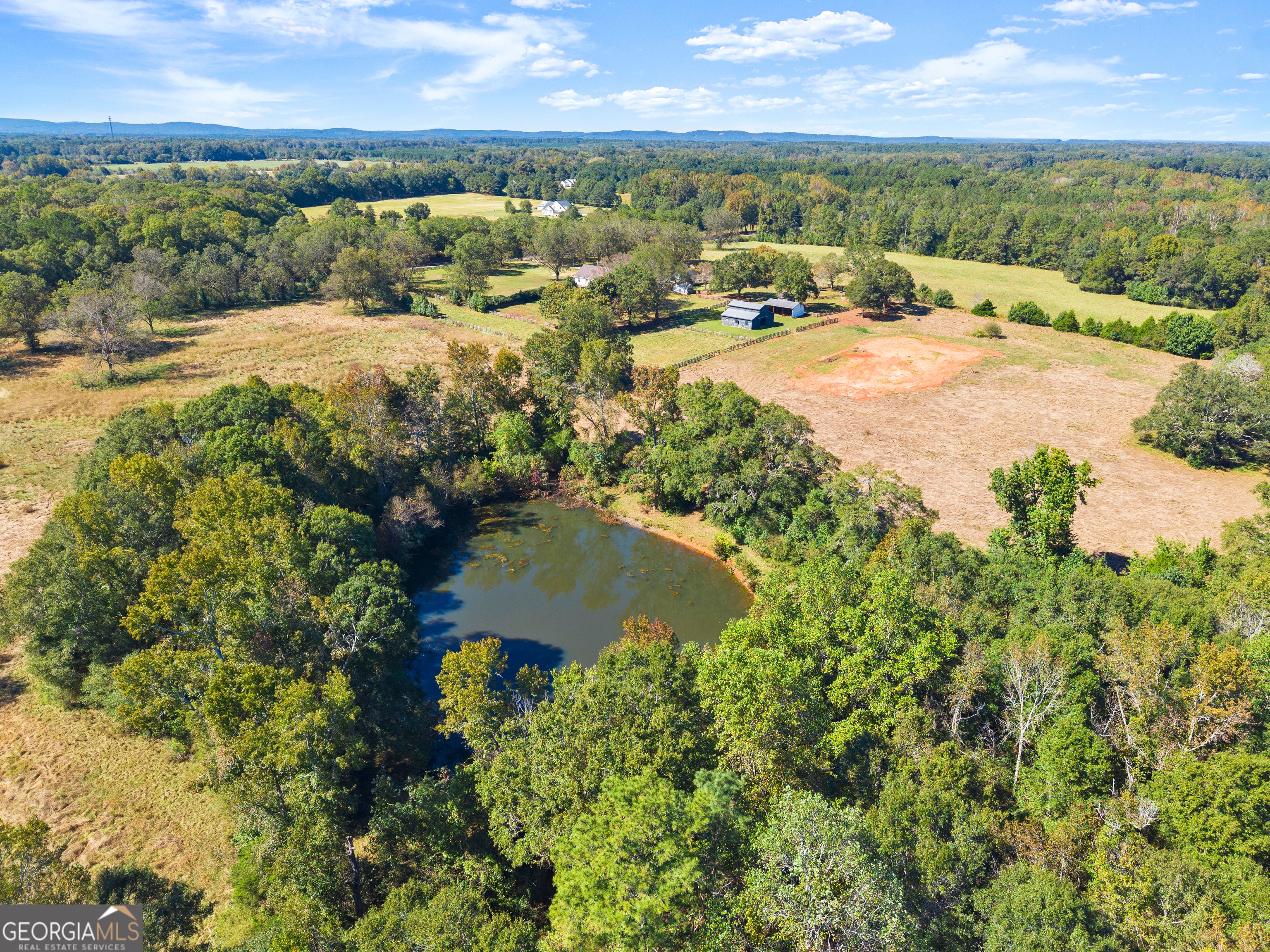 Secluded 75-acre, former Arabian horse farm with a 3,510 square foot, two story, classically designed house built by a member of one of the most prominent families in Upson County. As the former owners of what is now the Interfor Lumber facility, there was unlimited access to premium cuts of local timber and it shows in the craftmanship and materials that are unheard of in any new home. Literally no expense was spared in this house's construction. Over 65 acres of established pasture are on both sides and behind the home with a large front yard with mature pecans well off a low traffic road, no nearby developments, and a forest along the back part of the property assure your privacy. This land also features a stunning 1.75-acre pond, an impressive horse barn and several other out-buildings adding both beauty and function to the property. Some recent renovations were completed such as an ADT alarm/camera system, smart home features including Nest thermostats throughout, a safe closet, new garage doors with remote Wi-Fi control, updated electrical, exterior paint, and recently serviced three zone HVAC. On entry you will love the versatile mudroom that also serves as a bright sunroom, featuring timeless brick paver flooring and a convenient full bathroom. Wide covered porches wrap around much of the home, proving the perfect spots to relax and take in the views. An attached two car garage adds everyday convenience, while a detached three-bay carport offers ample space for additional vehicles. The home features two working wood burning solid brick fireplaces and a supplemental wood burning Hardy heater. The spacious kitchen features solid wood cabinetry crafted with quality you cannot find anymore, solid surface countertops with abundant workspace and wraparound recessed lighting. A stainless steel built in Sub-Zero refrigerator and a charming butler's pantry with beautiful shelving make this kitchen ideal for both everyday living and entertaining. The cozy den exudes warmth and character, featuring rich wood tones, built in bookshelves and timeless pine hardwood floors, with a beautiful brick wood burning fireplace creating the perfect gathering spot. The home also features a grand and light filled formal living room with an additional fireplace and an elegant formal dining room ideal for hosting friends and family during the holidays. Wide hallways flow throughout the home, enhancing accessibility and comfort. Each bedroom reflects the home's enduring quality, featuring original wood shutters and large windows (new in 2014) that invite in the natural light. Thoughtful trim work and elegant crown molding accent the rooms, adding to their timeless appeal. Spacious walk-in closets provide excellent storage throughout, and the second and third bedrooms are connected by a classic Jack-and-Jill bath for added functionality. Upstairs you will find a massive bonus room that offers endless possibilities, ideal for a playroom, home office, or media space. A convenient walk-through door leads to the attic, revealing more of the home's exceptional craftsmanship with solid 1x6 wood roof backing. This area also provides easy access to systems and ample space for holiday decor and additional storage. Outside, brick paths and soft landscape lighting create a garden-like stroll through the backyard, leading you to an elegant horse barn that is every horse enthusiasts dream! Featuring concrete floors, a new metal roof installed in 2011, four large stalls, a tack room, feed room, and a loft upstairs. The barn is not only fully functional; it boasts the charming silhouette of a traditional barn that we all love! Close by you will find a large three-sided pole barn, perfect for additional shelter or equipment storage. Expansive pastureland provides ample space for nearly any interest! Ready to move in and enjoy, this well-built farmhouse also offers plenty of potential for those who'd love to add their own flair and make it their own!