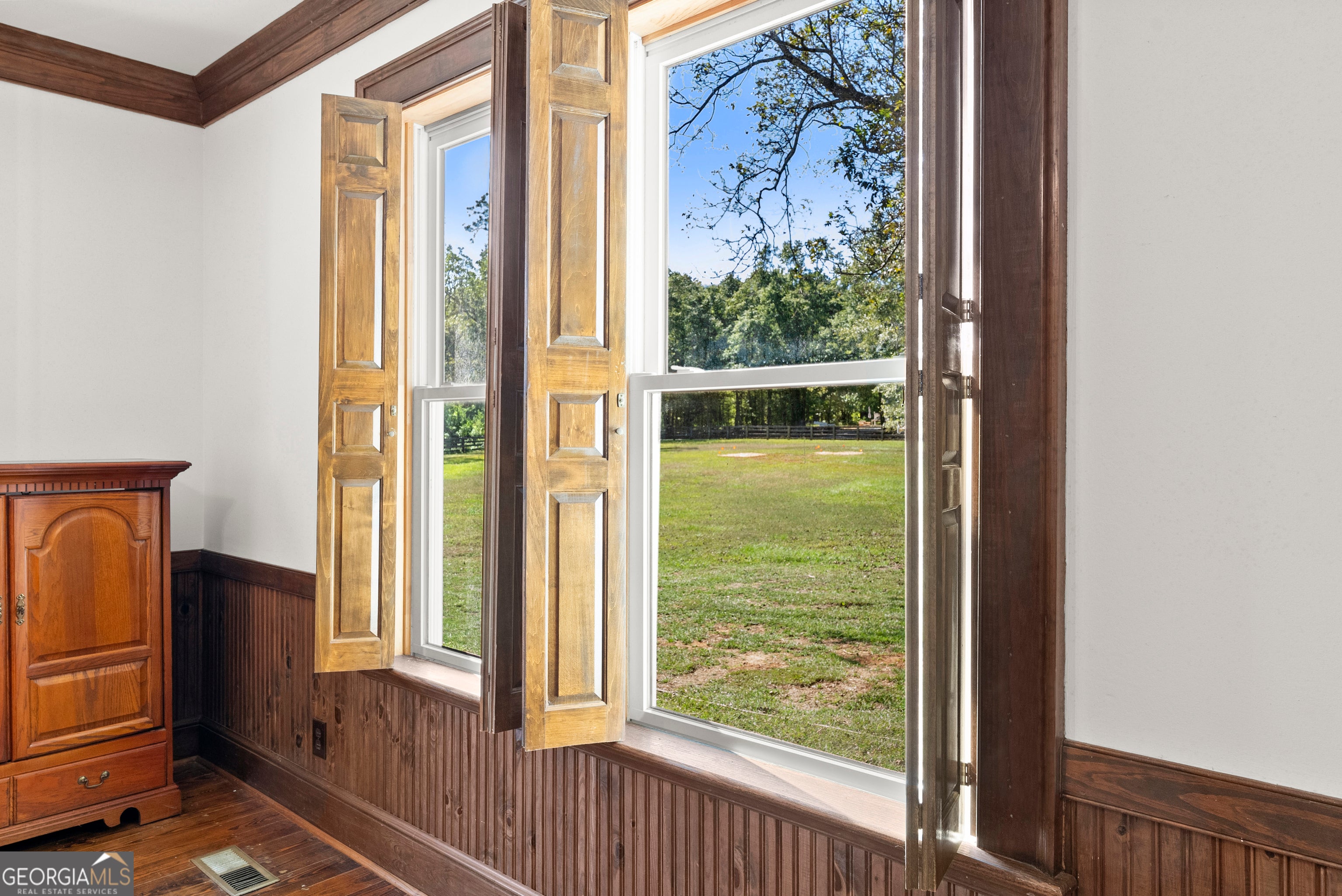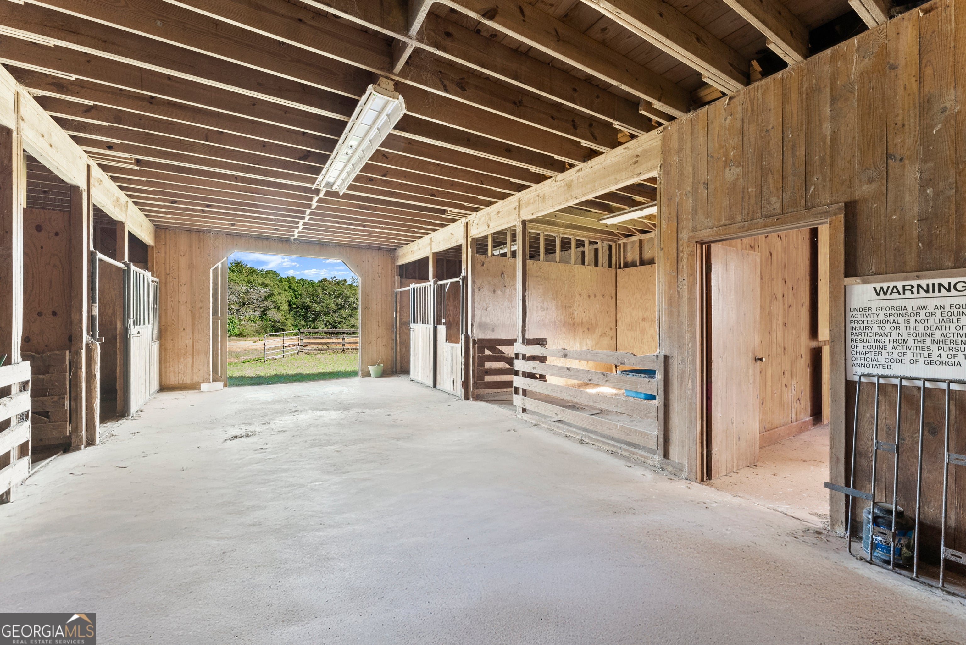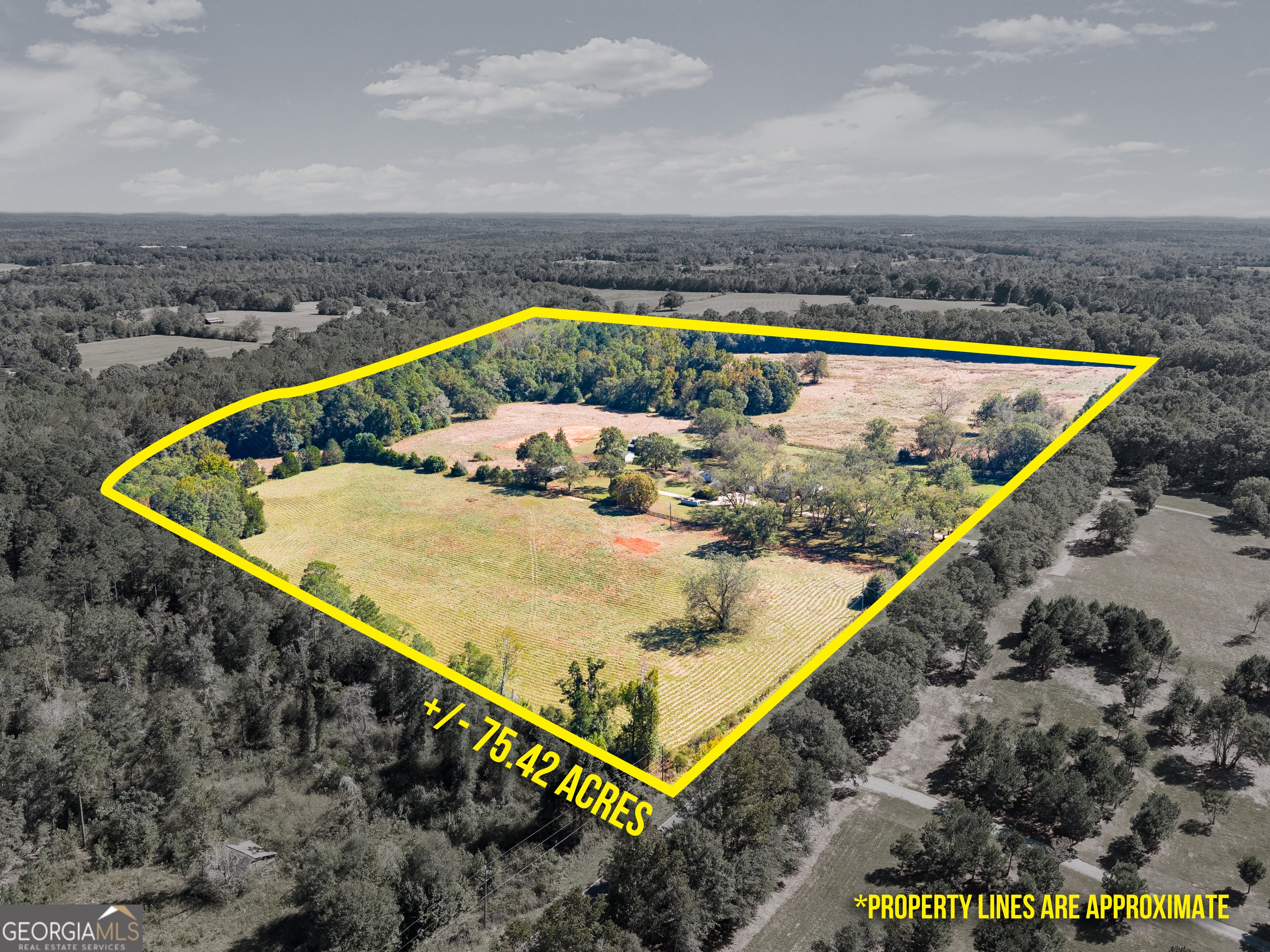 Secluded 75-acre, former Arabian horse farm with a 3,510 square foot, two story, classically designed house built by a member of one of the most prominent families in Upson County. As the former owners of what is now the Interfor Lumber facility, there was unlimited access to premium cuts of local timber and it shows in the craftmanship and materials that are unheard of in any new home. Literally no expense was spared in this house's construction. Over 65 acres of established pasture are on both sides and behind the home with a large front yard with mature pecans well off a low traffic road, no nearby developments, and a forest along the back part of the property assure your privacy. This land also features a stunning 1.75-acre pond, an impressive horse barn and several other out-buildings adding both beauty and function to the property. Some recent renovations were completed such as an ADT alarm/camera system, smart home features including Nest thermostats throughout, a safe closet, new garage doors with remote Wi-Fi control, updated electrical, exterior paint, and recently serviced three zone HVAC. On entry you will love the versatile mudroom that also serves as a bright sunroom, featuring timeless brick paver flooring and a convenient full bathroom. Wide covered porches wrap around much of the home, proving the perfect spots to relax and take in the views. An attached two car garage adds everyday convenience, while a detached three-bay carport offers ample space for additional vehicles. The home features two working wood burning solid brick fireplaces and a supplemental wood burning Hardy heater. The spacious kitchen features solid wood cabinetry crafted with quality you cannot find anymore, solid surface countertops with abundant workspace and wraparound recessed lighting. A stainless steel built in Sub-Zero refrigerator and a charming butler's pantry with beautiful shelving make this kitchen ideal for both everyday living and entertaining. The cozy den exudes warmth and character, featuring rich wood tones, built in bookshelves and timeless pine hardwood floors, with a beautiful brick wood burning fireplace creating the perfect gathering spot. The home also features a grand and light filled formal living room with an additional fireplace and an elegant formal dining room ideal for hosting friends and family during the holidays. Wide hallways flow throughout the home, enhancing accessibility and comfort. Each bedroom reflects the home's enduring quality, featuring original wood shutters and large windows (new in 2014) that invite in the natural light. Thoughtful trim work and elegant crown molding accent the rooms, adding to their timeless appeal. Spacious walk-in closets provide excellent storage throughout, and the second and third bedrooms are connected by a classic Jack-and-Jill bath for added functionality. Upstairs you will find a massive bonus room that offers endless possibilities, ideal for a playroom, home office, or media space. A convenient walk-through door leads to the attic, revealing more of the home's exceptional craftsmanship with solid 1x6 wood roof backing. This area also provides easy access to systems and ample space for holiday decor and additional storage. Outside, brick paths and soft landscape lighting create a garden-like stroll through the backyard, leading you to an elegant horse barn that is every horse enthusiasts dream! Featuring concrete floors, a new metal roof installed in 2011, four large stalls, a tack room, feed room, and a loft upstairs. The barn is not only fully functional; it boasts the charming silhouette of a traditional barn that we all love! Close by you will find a large three-sided pole barn, perfect for additional shelter or equipment storage. Expansive pastureland provides ample space for nearly any interest! Ready to move in and enjoy, this well-built farmhouse also offers plenty of potential for those who'd love to add their own flair and make it their own!