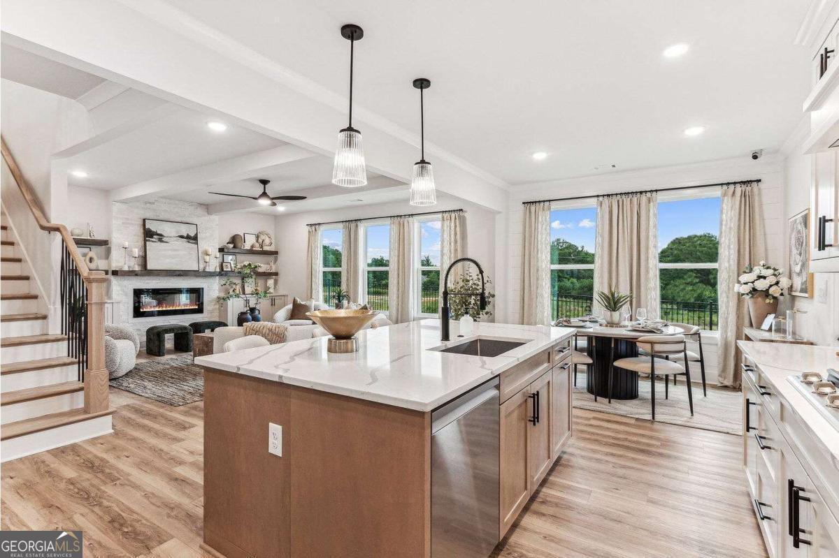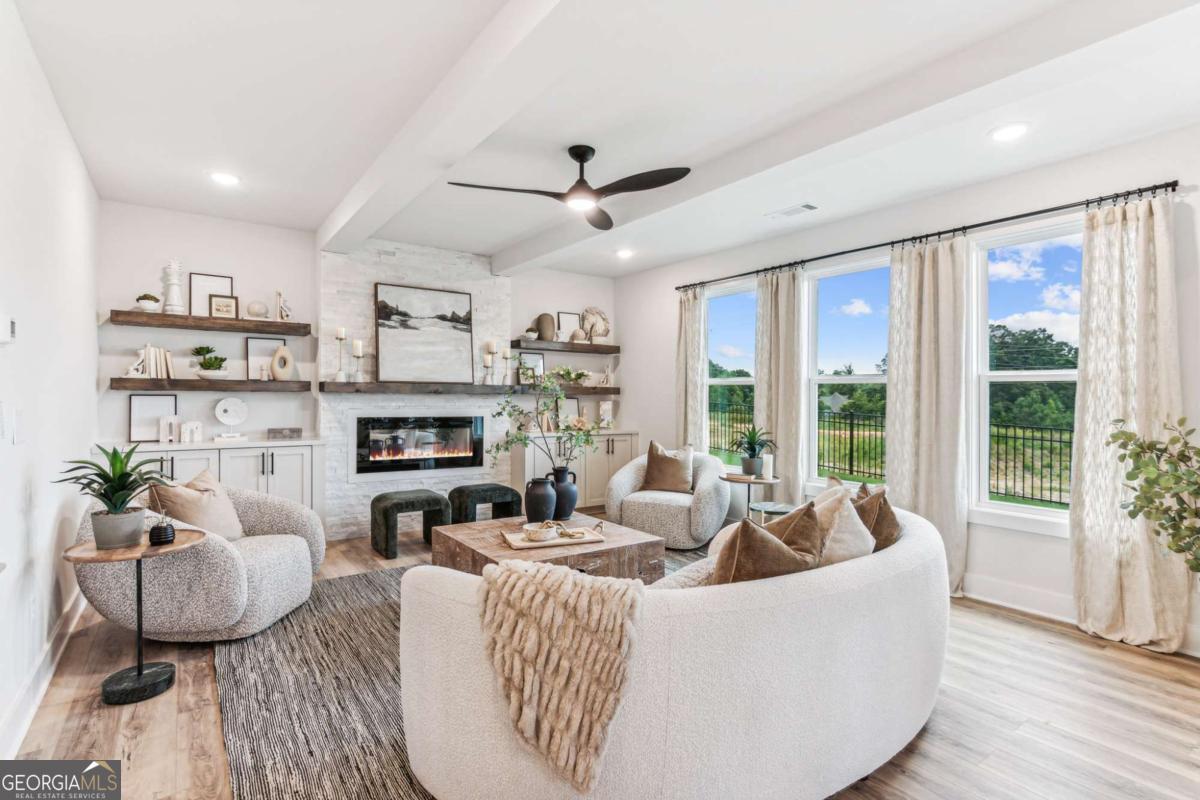 Built by SPI Homes - Homesite 50 in Phase Two! NEW COMPETITIVE PRICING AND INCENTIVE FOR BUYERS WHO CLOSE BY MAY 15th. An additional $20,000 incentive can be applied to a rate buy-down and/ or closing costs with the preferred lender. This Orchard C home plan offers 5BR 4BA, a three-car garage, a spacious backyard, open concept living room with decorative electric fireplace & floating bookshelves flowing into the breakfast sitting area and luxury kitchen with quartz counter tops, pendant lighting over the island, handmade vent hood, kitchen cabinets to the ceiling with soft-close drawers, stainless steel appliance package, gas cooktop with wall-mounted pasta faucet, wall oven and microwave! Elevated features throughout, including shiplap accents and crown molding. The fifth bedroom is on the main floor and is adjoined to a full bath. The second floor welcomes a large primary bedroom with a lavish bath showcasing a soaking tub, quartz countertops, and a generous walk-in closet. In addition, the upstairs features three bedrooms, a jack and jill bath, a junior suite, and a loft area! Laundry facilities are upstairs. Refrigerator and blinds are included! Hosch Reserve is a swim, cabana, and pickleball HOA community for active recreation. Conveniently located in Gwinnett County's sought-after Seckinger High School district, Hosch Reserve offers tranquility just off Old Thompson Mill Road. Secondary Stock Photos of another Orchard in Hosch Reserve. GPS Address: 3105 Old Thompson Mill Rd (use Apple Maps or Waze). Secondary stock photos of Model Home (Orchard A plan) and of an Orchard B (within Hosch Reserve).