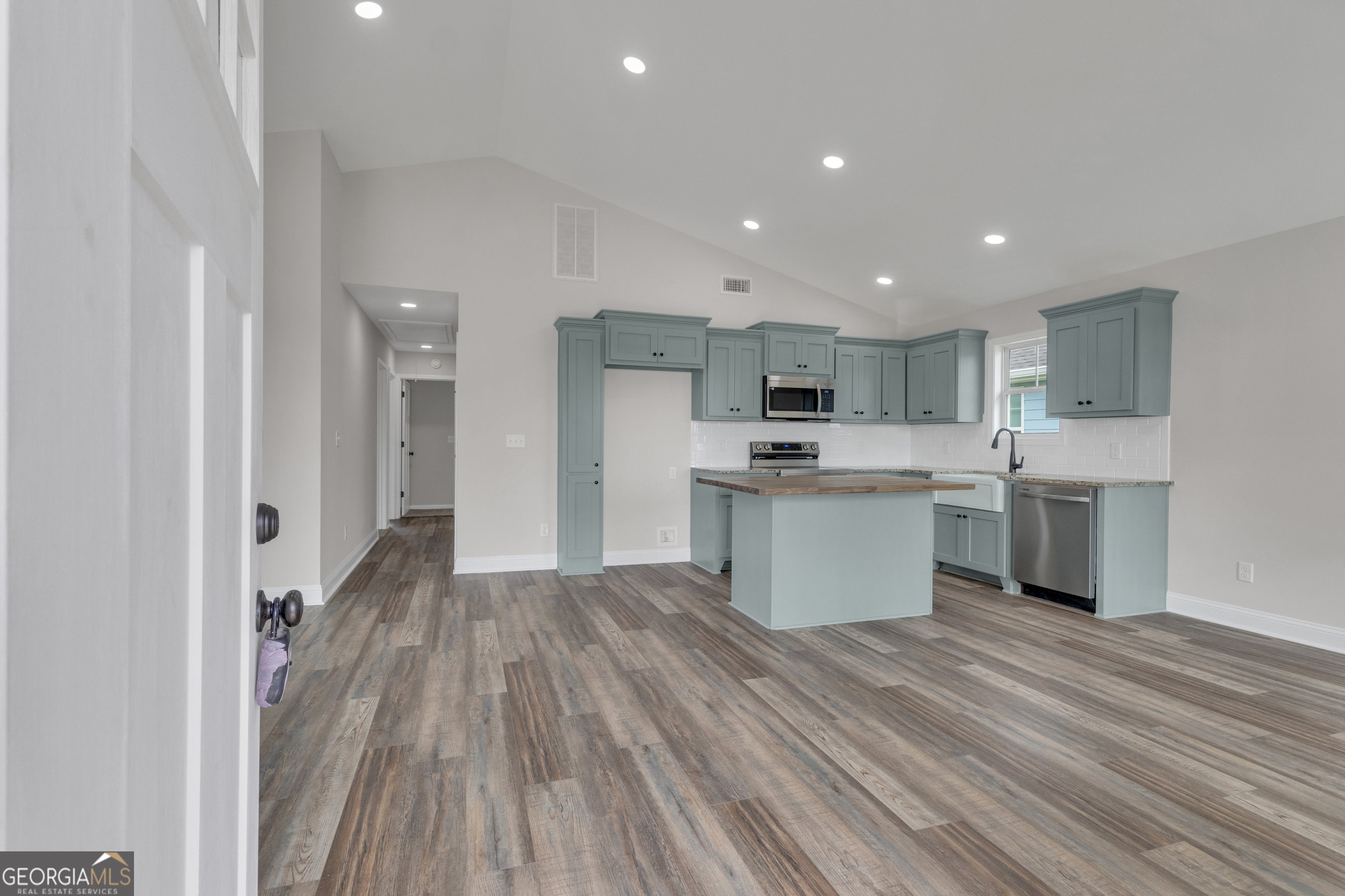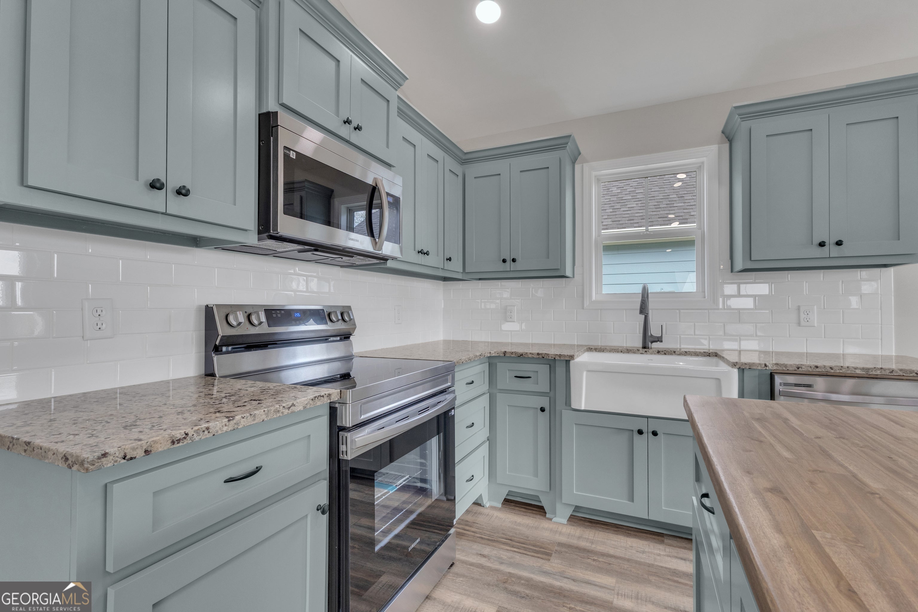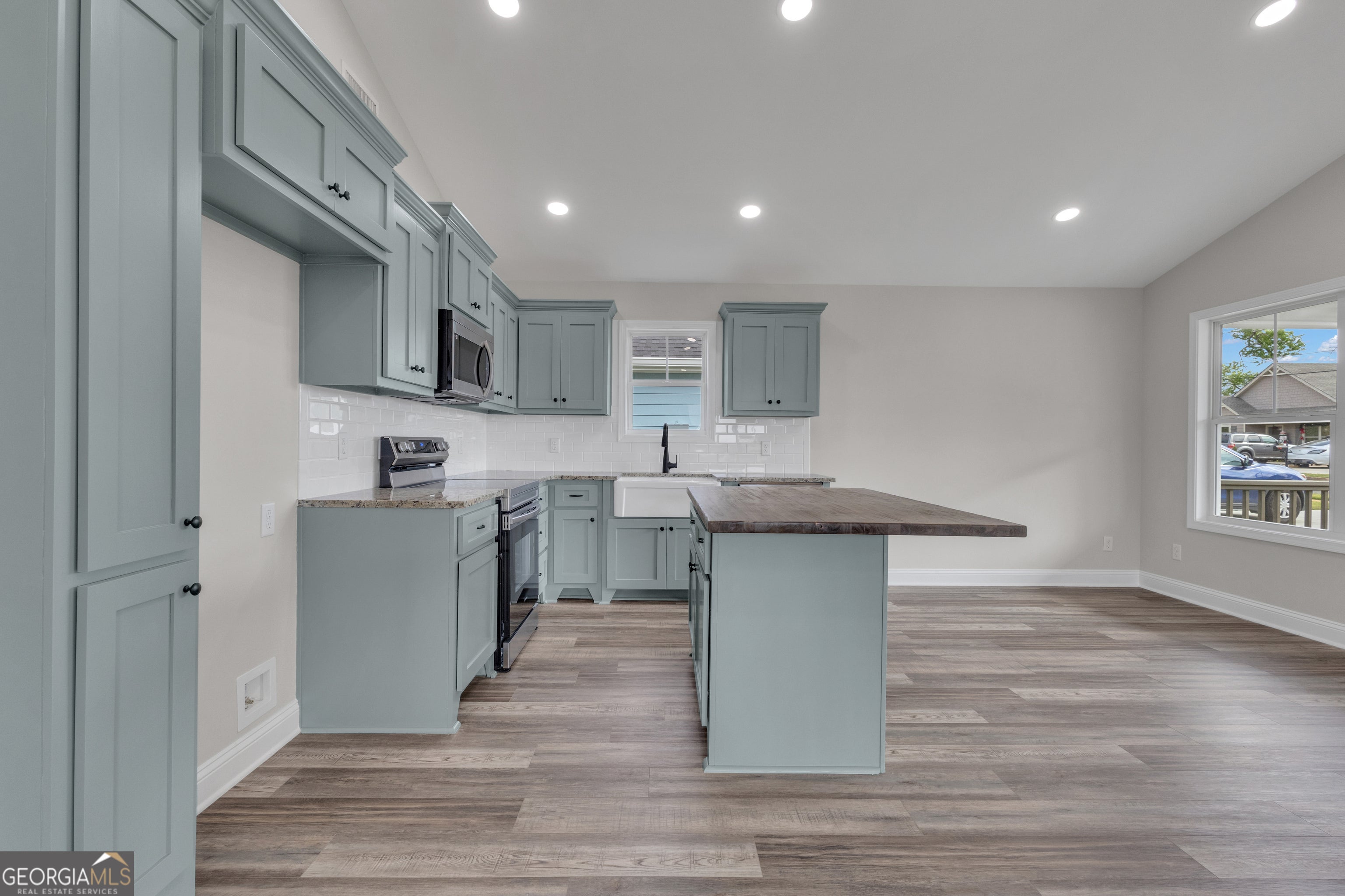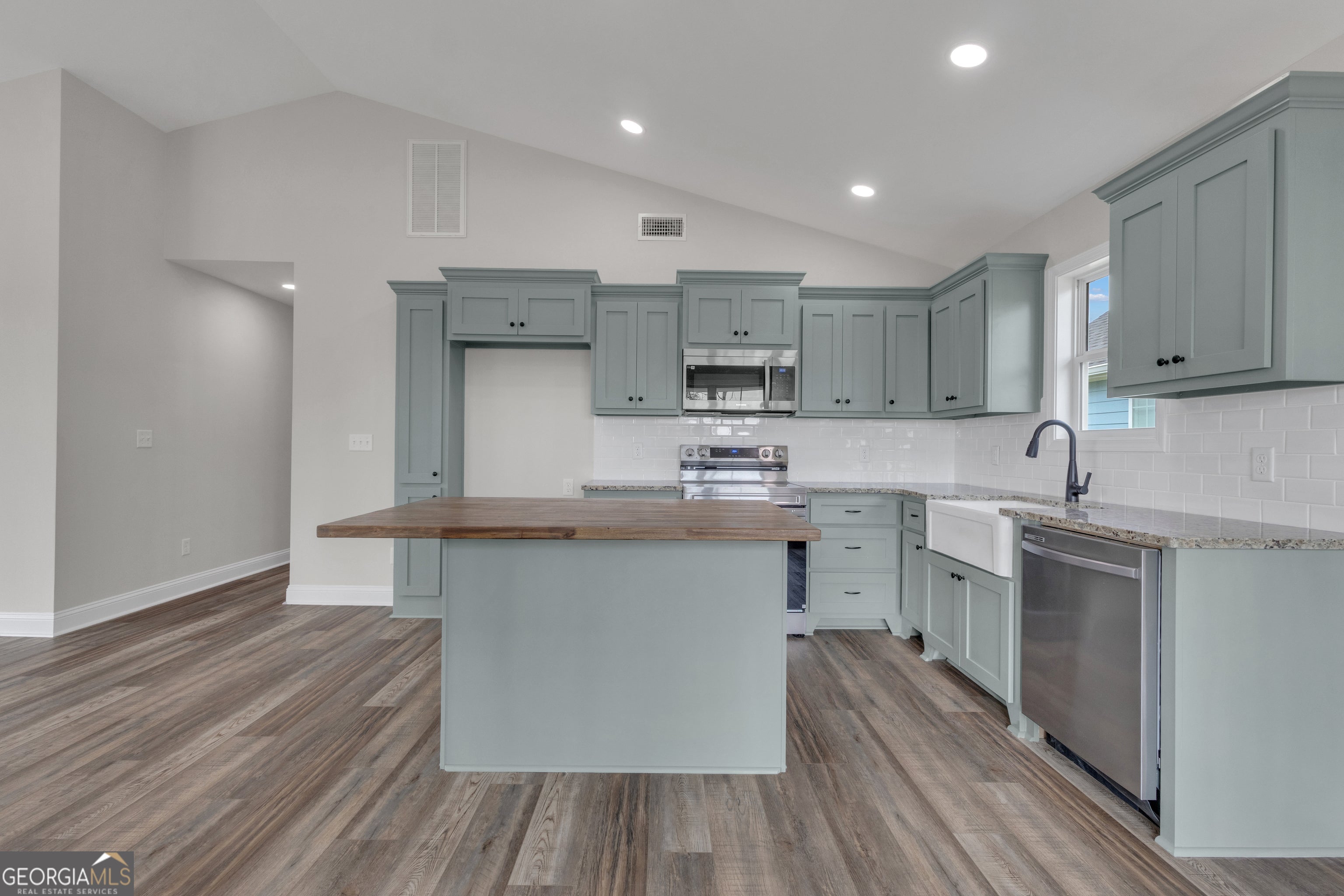 Experience modern comfort in this stunning new construction ranch home! Perfectly situated just steps from The Thread trail, this 3-bedroom, 2-bath residence offers the ideal blend of style and efficiency. Step inside to an open-concept living space featuring durable LVP flooring. The kitchen is a true standout, with custom cabinetry, granite countertops, a classic farmhouse apron sink, and a beautiful butcher block island-perfect for meal prep or casual entertaining. The primary suite serves as a private retreat with a spacious walk-in closet, while the bathrooms feature elegant tile flooring. This home is built for long-term savings and comfort with spray foam insulation. Located in a growing community surrounded by other new builds, you are just minutes from I-85 and in close proximity to LaGrange College, the vibrant LaGrange Square, and local shopping. Whether you're biking the trail or enjoying the nearby downtown amenities, this home puts you at the center of it all!