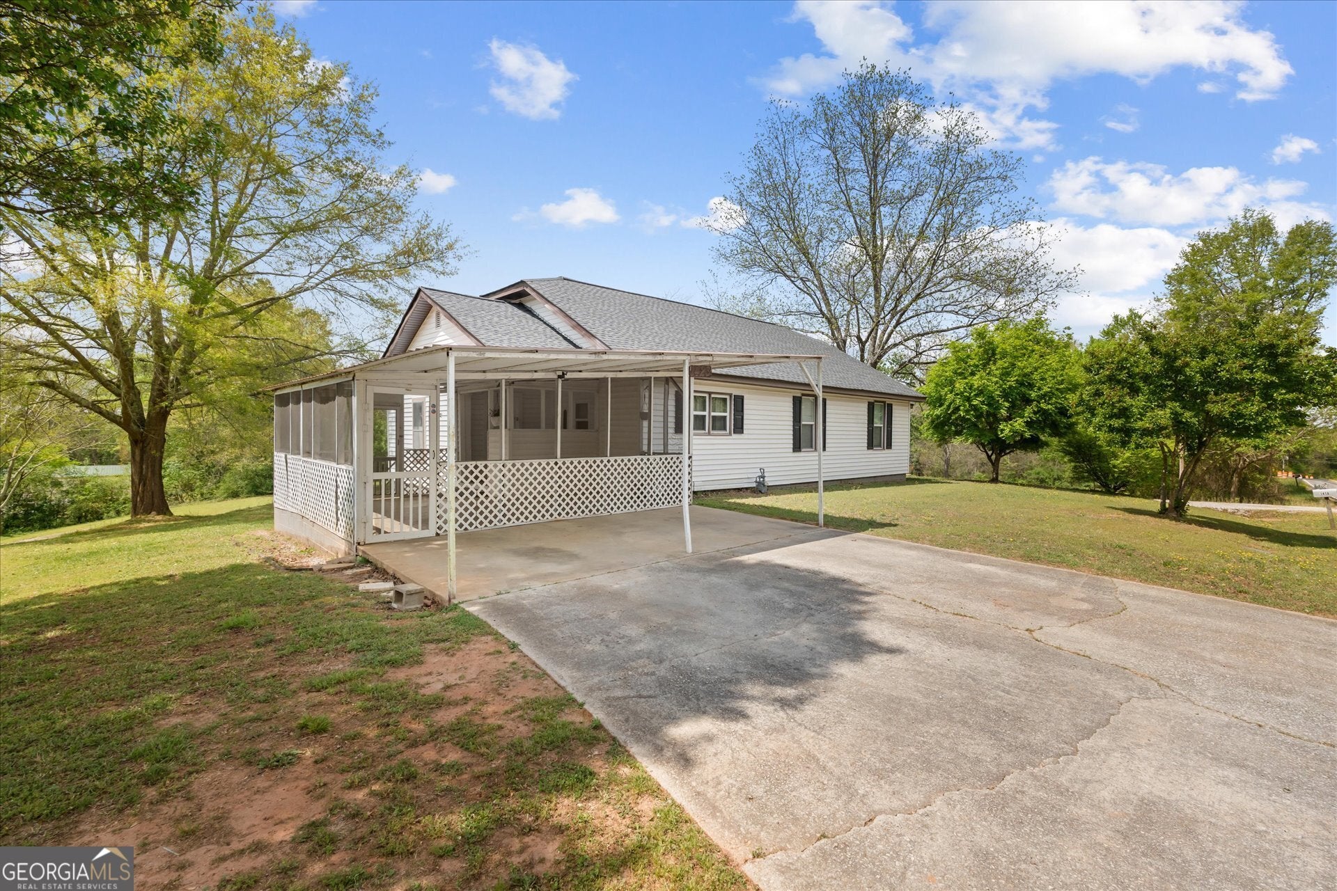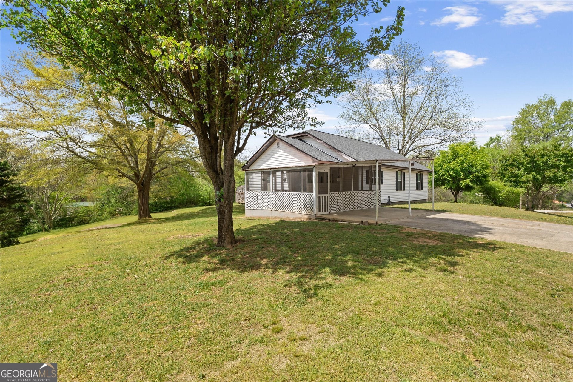 This charming residence beautifully combines timeless character with thoughtful modern updates, creating a warm and inviting place to call home. Original solid wood interior doors, said to have been crafted by the original owner, lend a distinctive, classic touch rarely found in newer construction, while abundant storage throughout ensures everyday convenience. The updated bathrooms are designed with flexibility in mind, featuring one with a walk-in shower and another with a tub/shower combination to suit a variety of needs. Just outside the carport entry, a convenient storage room offers the perfect space for tools, paint, and everyday essentials-keeping everything within easy reach. Enjoy quiet mornings on the covered porch with a cup of coffee, and unwind in the evenings on the screened porch overlooking a peaceful, private backyard. The expansive lot provides endless opportunities for gardening, whether you envision vibrant flower beds, a thriving vegetable garden, or even a small orchard. Additional highlights include two outbuildings ideal for storage or hobby space, as well as a dedicated concrete pad ready for a fire pit-perfect for gathering with friends and family under the stars. Ideally situated in a serene, country-like setting, this home offers the best of both worlds-privacy and convenience. Located just minutes from the University of West Georgia and the Carrollton GreenBelt, and only a short drive to downtown Carrollton's vibrant dining, shopping, and entertainment scene, this property delivers comfort, charm, and an exceptional lifestyle opportunity.