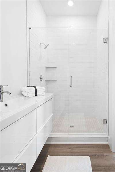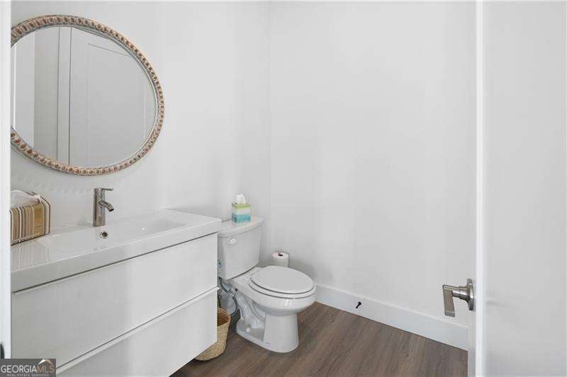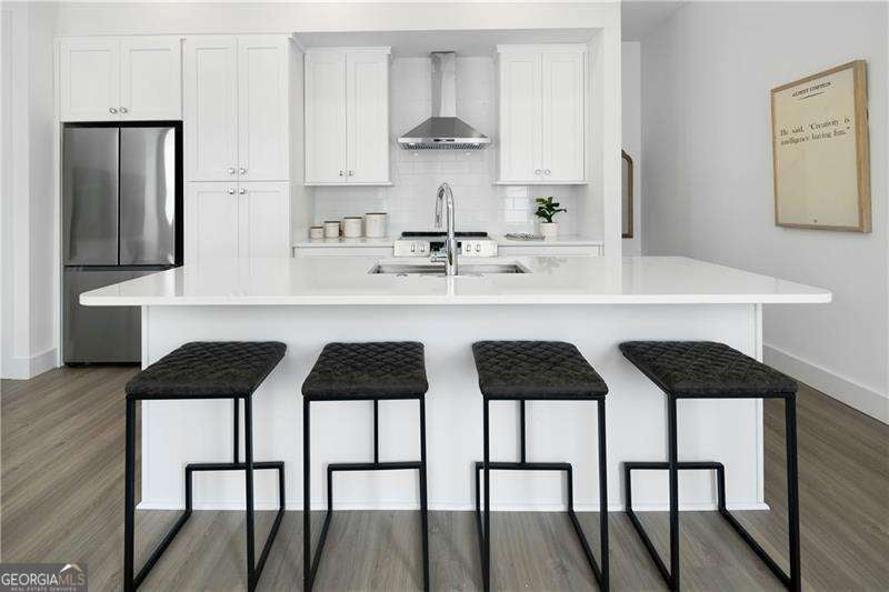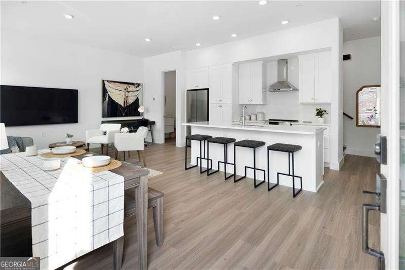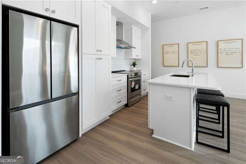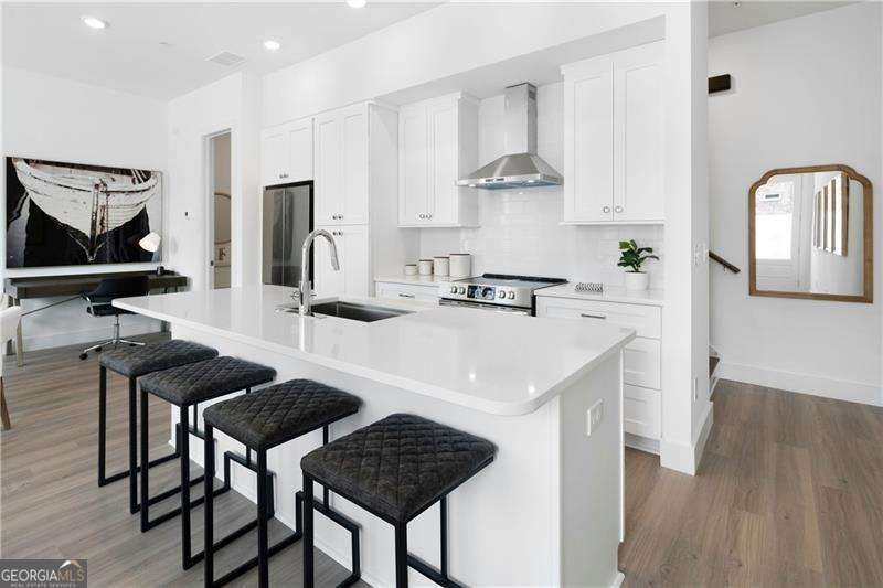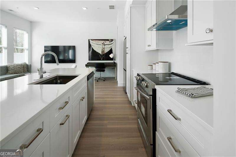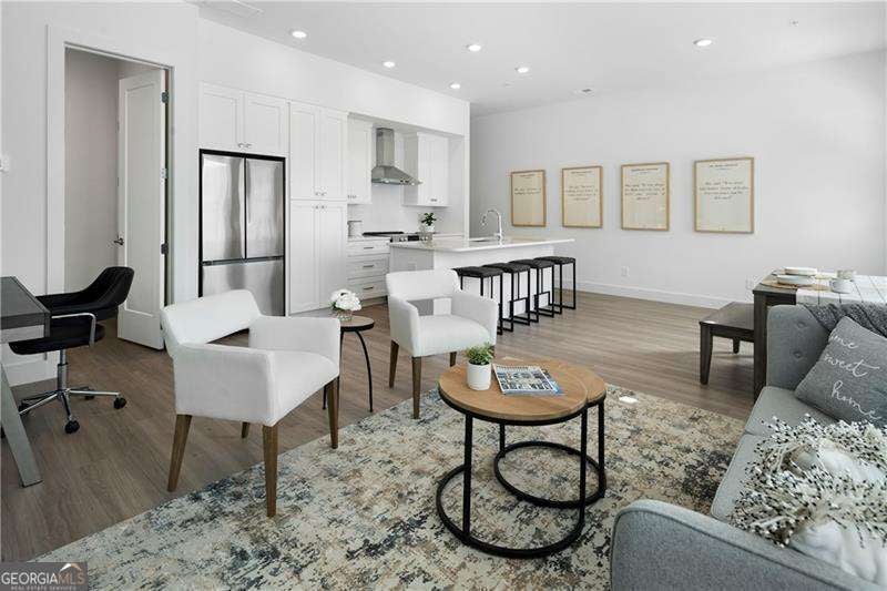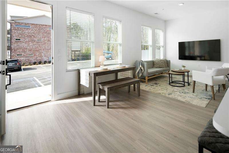 SHORT WALKING DISTANCE TO THE HEART OF DOWNTOWN WOODSTOCK! THIS END UNIT TOWNHOME IS 2 YEARS NEW AND VERY WELL APPOINTED! With its modern amenities and convenient location, it seems like an ideal place to live. The absence of carpet and the presence of hard surface flooring throughout is a practical and stylish choice. The kitchen upgrades, including the quartz countertops, tile backsplash, and rollout shelves, make it both functional and aesthetically pleasing. The high ceilings on both floors and the large doors with lever hardware add to the sense of spaciousness and luxury. The upstairs bathroom is particularly impressive with its all-tile shower, frameless shower door, and large vanity. Living just a couple of blocks from downtown Woodstock offers easy access to all the city has to offer, from its vibrant arts scene to its diverse dining options and shopping opportunities. Being able to walk to these amenities makes it even more appealing. Overall, it is a wonderful place to call home!