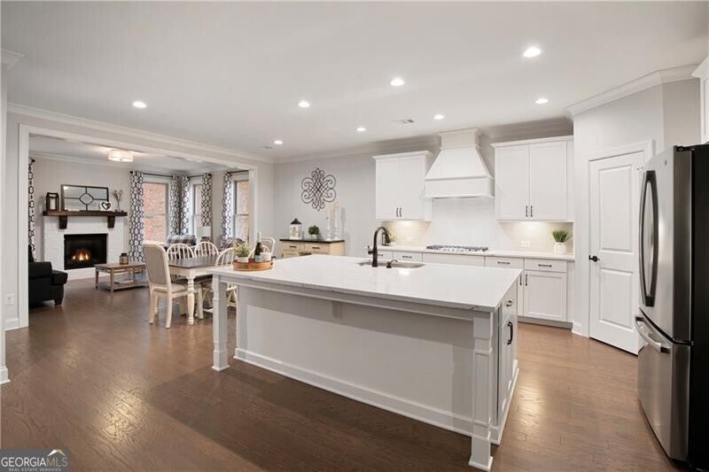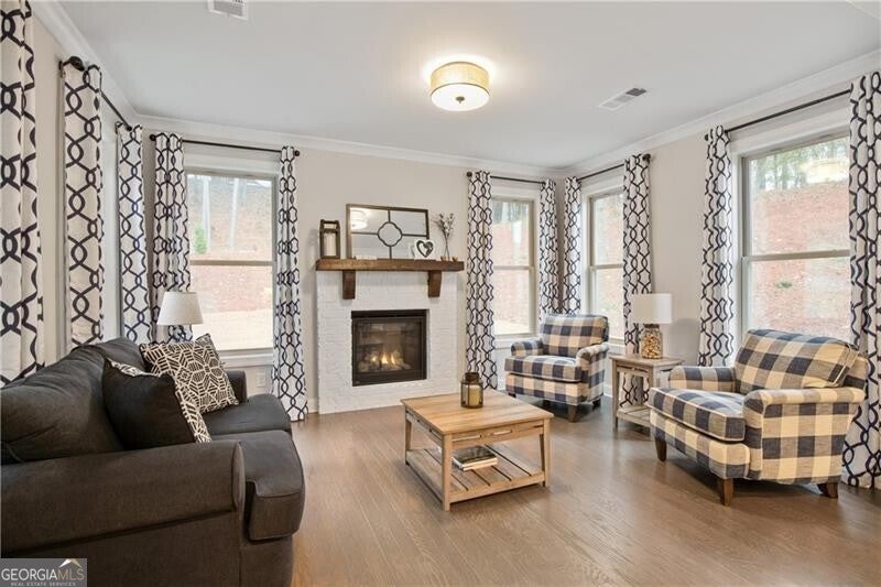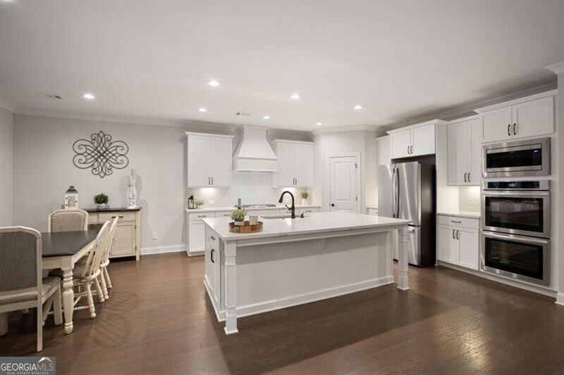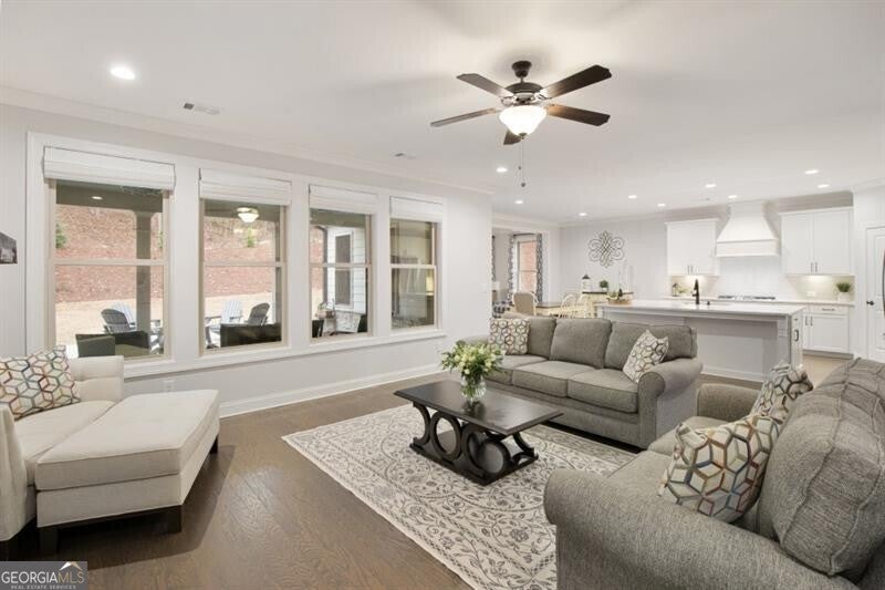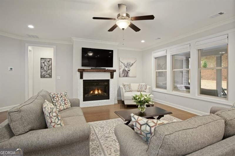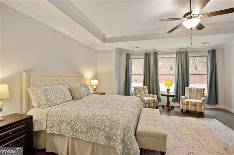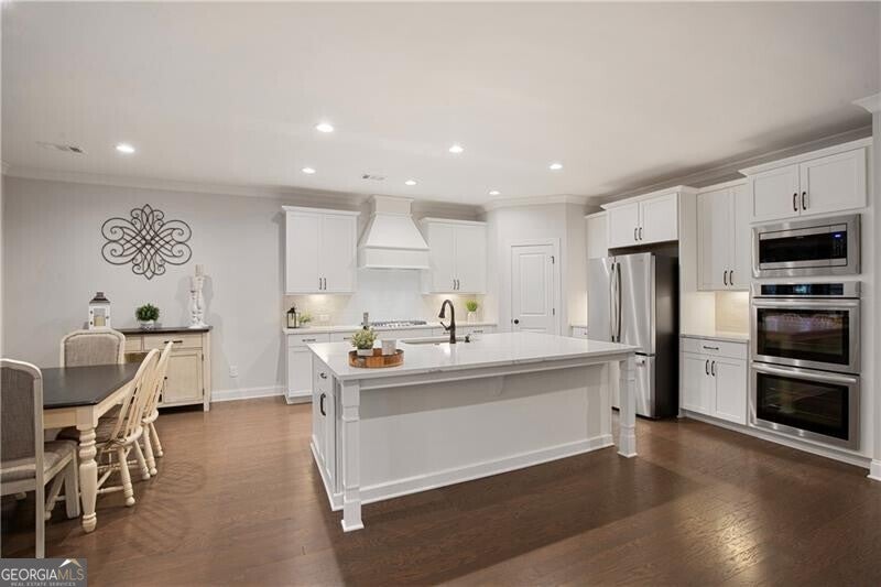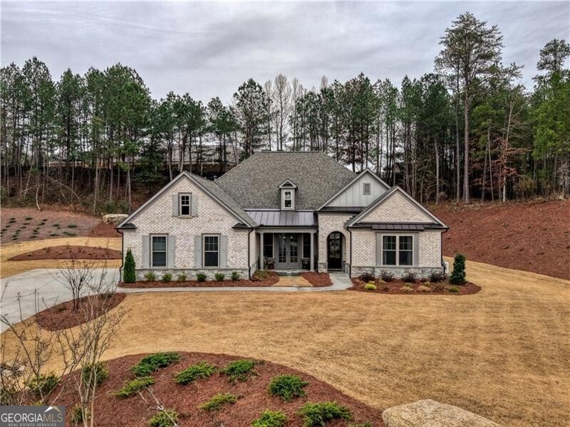 Wonderful and rare opportunity to experience luxury main level living in the sought-after Governors Towne Club! Architecturally extraordinary and meticulously kept, this impressive estate home is perfectly situated on nearly one acre, with delightful views from the stone front porch in a peaceful private setting. Welcome to The Reserve at Governors Towne Club, where distinguished living meets a relaxed lifestyle in a gated community offering spectacular resort-style amenities. The Seller will pay the $30K mandatory athletic membership fee with an acceptable offer. The Wellington model provides abundant main level living complemented by a well-appointed upstairs bonus/bedroom with a full bath - ideal for a playroom, guest suite or private retreat. The main level showcases a chef's dream gourmet kitchen featuring an expansive quartz island, quartz countertops, soft close cabinetry, top-of-the-line stainless steel appliances, a five burner gas cooktop with custom range hood, double ovens, walk-in pantry, and an inviting eat-in breakfast area. The kitchen opens seamlessly to the fireside family room and adjacent fireside keeping room filled with natural light providing a warm, welcoming setting. A separate formal dining room displays exceptional millwork while glass french doors open to the beautiful front porch - inviting you to relax and enjoy the serene views. The Owners retreat is a true haven complete with a sitting area, a grand spa shower, dual vanities and a tremendous walk-in closet. The main level also includes two additional guest bedrooms and a full bath, an executive study, a mudroom and a spacious laundry room. Home highlights include a whole-house generator, front and rear 8-zone irrigation system, a large garage with dedicated golf cart niche, a covered back patio with extended stone detailing and exceptional craftsmanship throughout. You will love this beautiful home and all that the Governors Towne Club offers - golf, tennis, swimming, pickleball, fitness, athletic fields, and much more! All within minutes of Acworth's Dining & Shops & Schools with convenient access To major highways and downtown Atlanta - you will absolutely love living here!