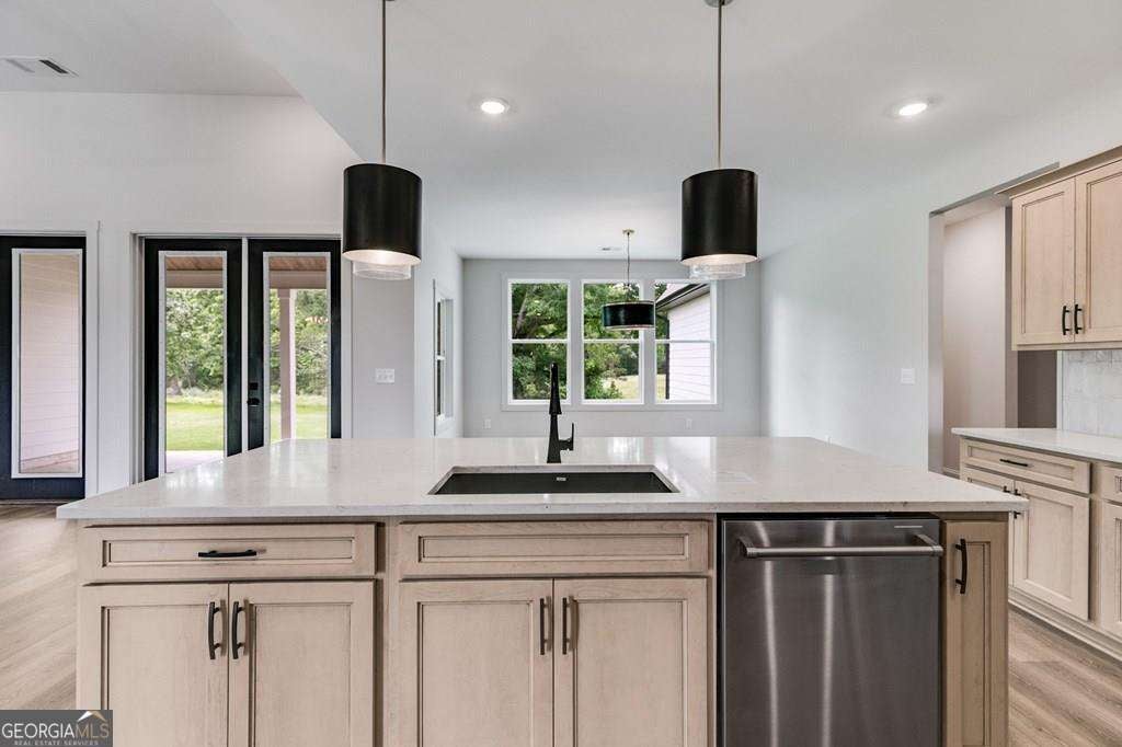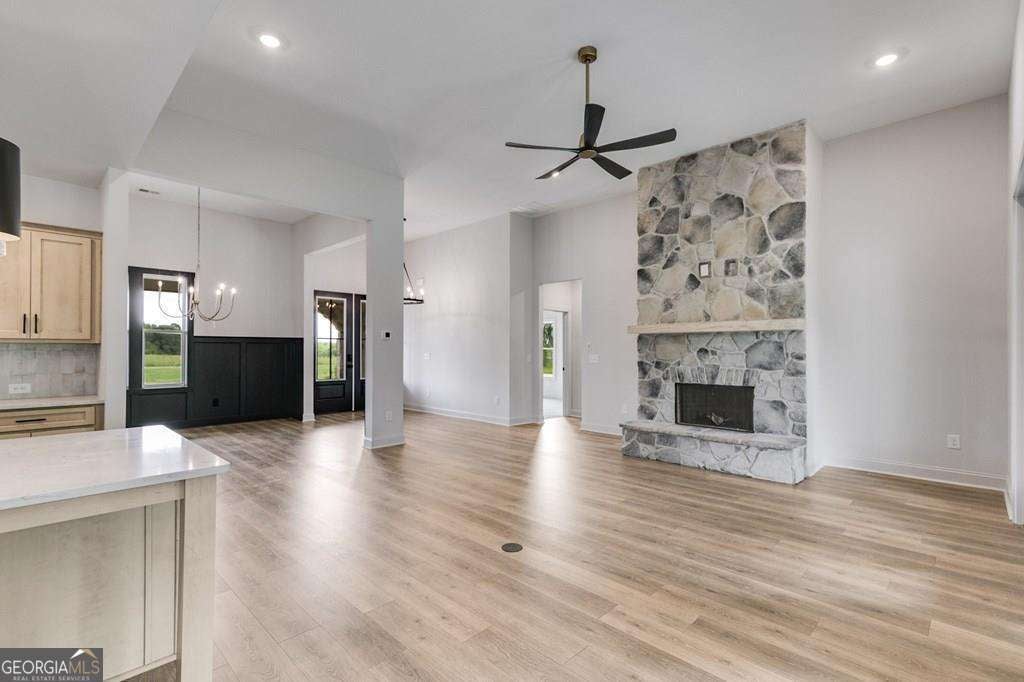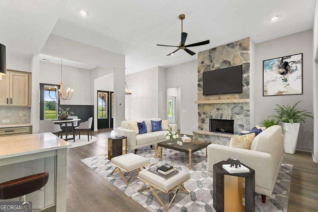 WOAH NELLIE.....HERE'S ANOTHER BEAUTIFUL HOME IN A GORGEOUS SETTING! The Meadows at Lake Circle is located in a stunning area of Haralson County known as The Flat Woods Community. It's convenient to I-20, Hwy 120, Rome, Carrollton and the surrounding smaller towns. This home has so many phenomenal features they are difficult to list. Here we go.... Owner's Suite on MAIN LEVEL, along with 3 other secondary bedrooms. There is a 5th Bedroom and full bathroom upstairs, which could also be used as an office or bonus space. When you enter the home through the wide foyer, you'll see the formal dining room to the right with high judges paneling and an elegant chandelier. The family room has a stone wood burning fireplace and has double French doors leading to the covered back patio. The kitchen is a cook's dream with Mystic Beige (cherry wood stained with a light glaze) wood cabinetry and QUARTZ countertops. The PROFESSIONAL THOR GAS COMMERCIAL RANGE is a delightful upgrade with a decorative range hood. The Owner's Suite is delightful with Fantasy Brown Granite Countertops in the bathroom, freestanding soaking tub and cool tiled shower with bench seat and lots of STYLE! This home EXUDES style and sophistication! You will not be disappointed and the finished product is sure to please. This home is equipped with a SMART HOME PKG - Zoned HVAC - Spray Foam Insulation in the attic - SUPERB WARRANTY with 10 year structural warranty. QUICK CLOSING ON THIS ONE!
