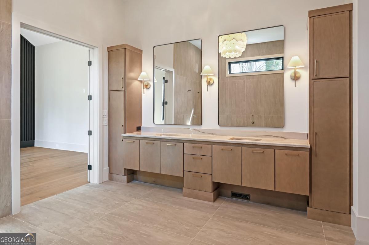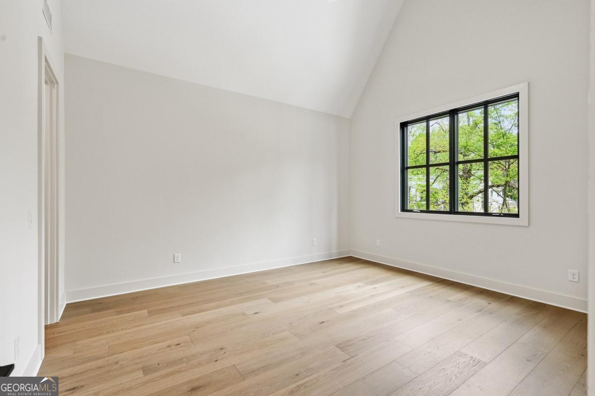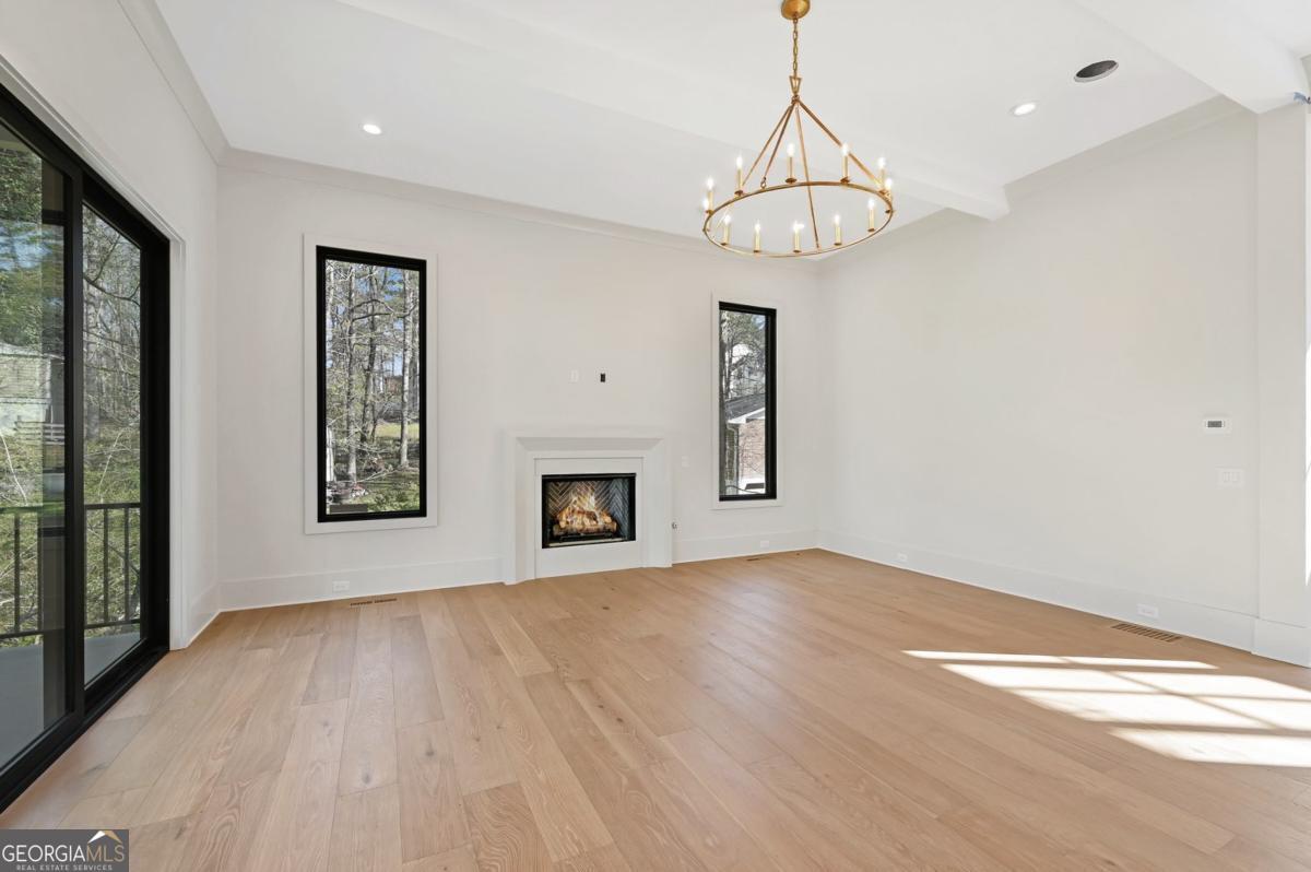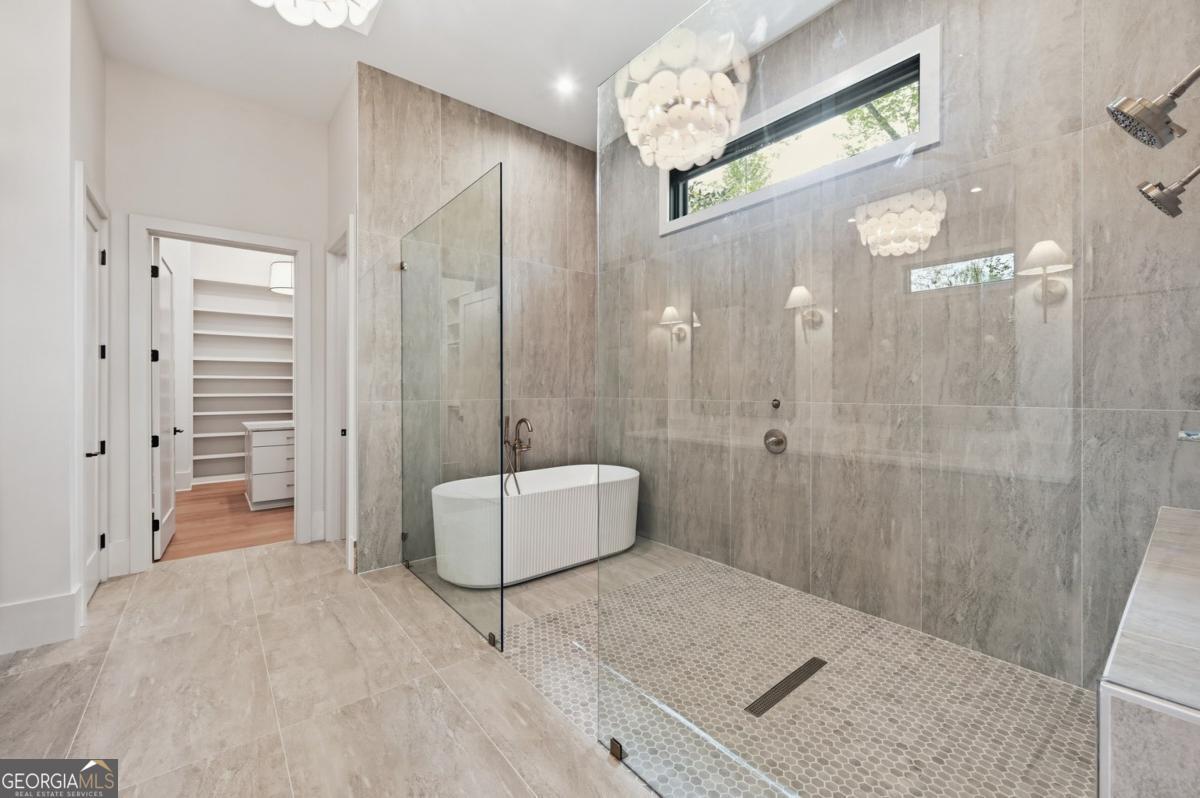 ** READY NOW ** ANOTHER EXCEPTIONAL NEW CONSTRUCTION HOME BY MODERNIZE PROPERTIES - WALKABLE TO DOWNTOWN ALPHARETTA. Experience refined luxury and effortless living in this stunning new home on a full unfinished basement, perfectly situated on a private, pool-ready lot just steps from the shops and restaurants of downtown Alpharetta. Soaring 12-foot ceilings define the main level, highlighted by an open, light-filled floor plan and designer finishes throughout. The chef's kitchen features an oversized quartzite waterfall island, hidden walk-in pantry, and abundant custom cabinetry. A dramatic vaulted primary suite on the main level offers serenity and style, complemented by a luxurious spa bath. A private guest suite with en-suite bath and a private home office with glass and steel double doors complete the main floor. Expansive sliding doors open from the family room to a covered outdoor living space with fireplace - ideal for year-round entertaining. Upstairs offers a spacious loft, three additional bedrooms each with private baths, and a full laundry room. Additional features include a 3-car garage with 9' tinted glass doors, full paver driveway, spray foam insulation, tankless water heater, and a full daylight basement ready to finish.