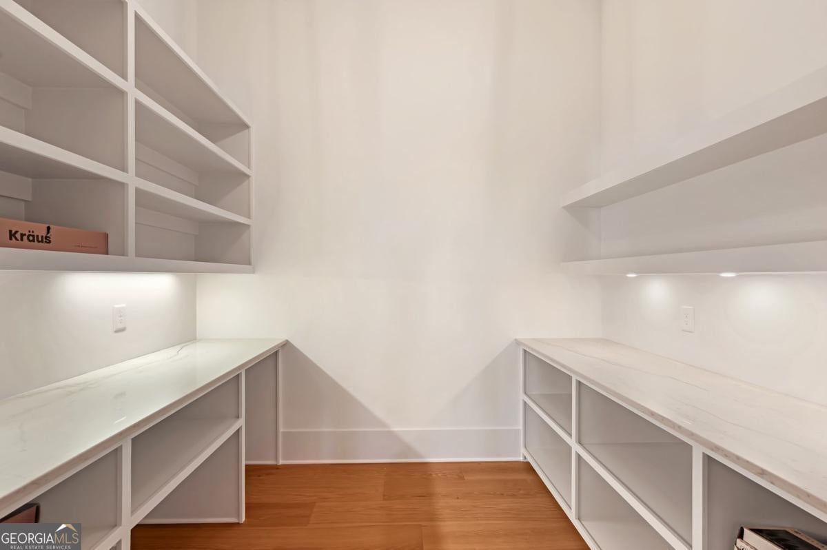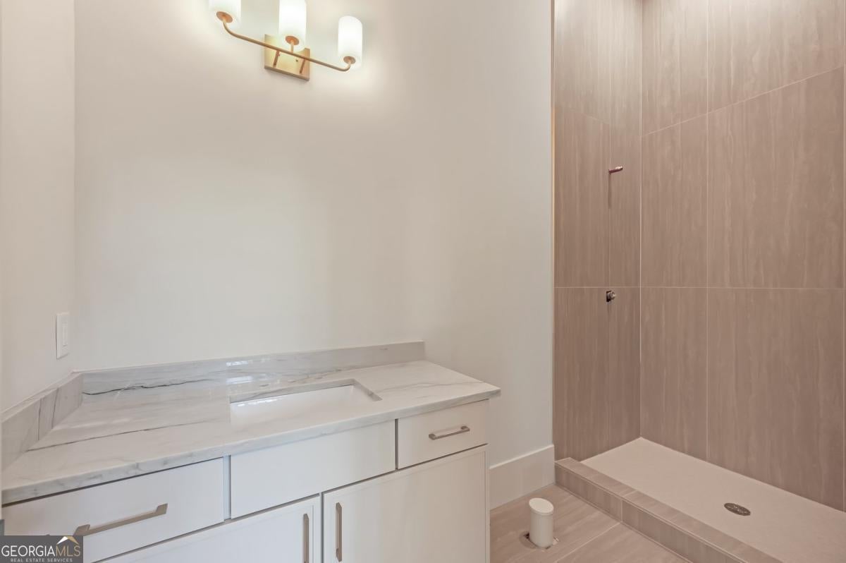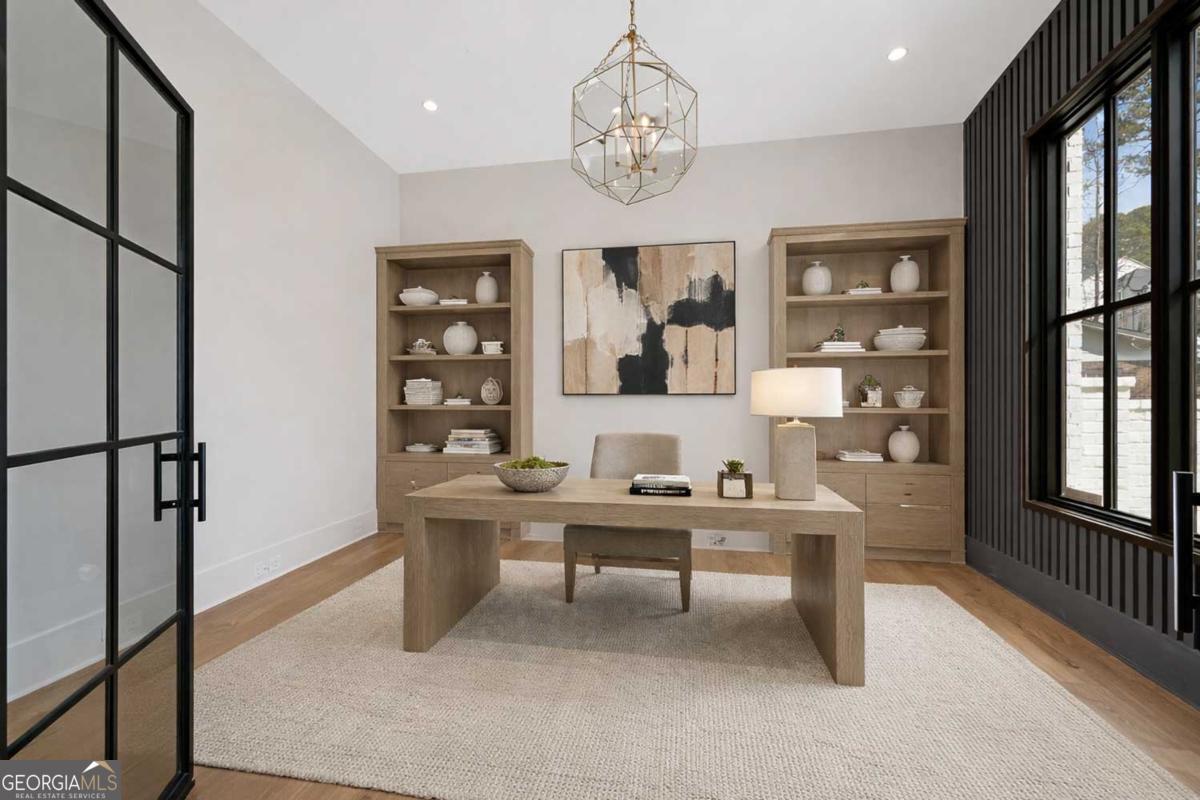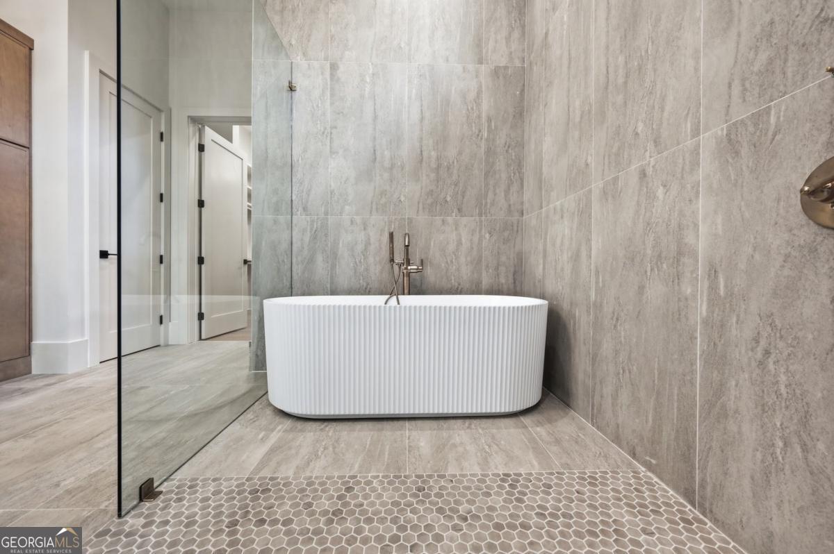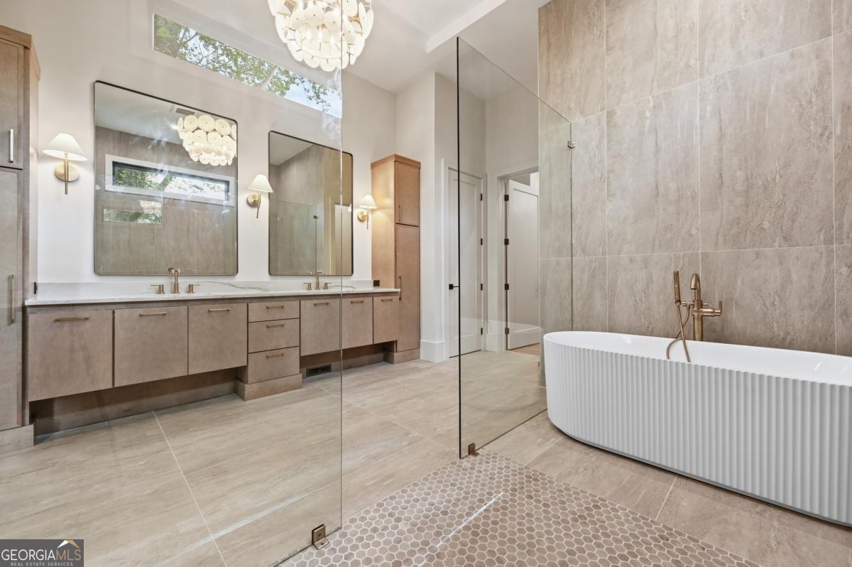 ** READY NOW ** ANOTHER EXCEPTIONAL NEW CONSTRUCTION HOME BY MODERNIZE PROPERTIES - WALKABLE TO DOWNTOWN ALPHARETTA. Experience refined luxury and effortless living in this stunning new home on a full unfinished basement, perfectly situated on a private, pool-ready lot just steps from the shops and restaurants of downtown Alpharetta. Soaring 12-foot ceilings define the main level, highlighted by an open, light-filled floor plan and designer finishes throughout. The chef's kitchen features an oversized quartzite waterfall island, hidden walk-in pantry, and abundant custom cabinetry. A dramatic vaulted primary suite on the main level offers serenity and style, complemented by a luxurious spa bath. A private guest suite with en-suite bath and a private home office with glass and steel double doors complete the main floor. Expansive sliding doors open from the family room to a covered outdoor living space with fireplace - ideal for year-round entertaining. Upstairs offers a spacious loft, three additional bedrooms each with private baths, and a full laundry room. Additional features include a 3-car garage with 9' tinted glass doors, full paver driveway, spray foam insulation, tankless water heater, and a full daylight basement ready to finish.