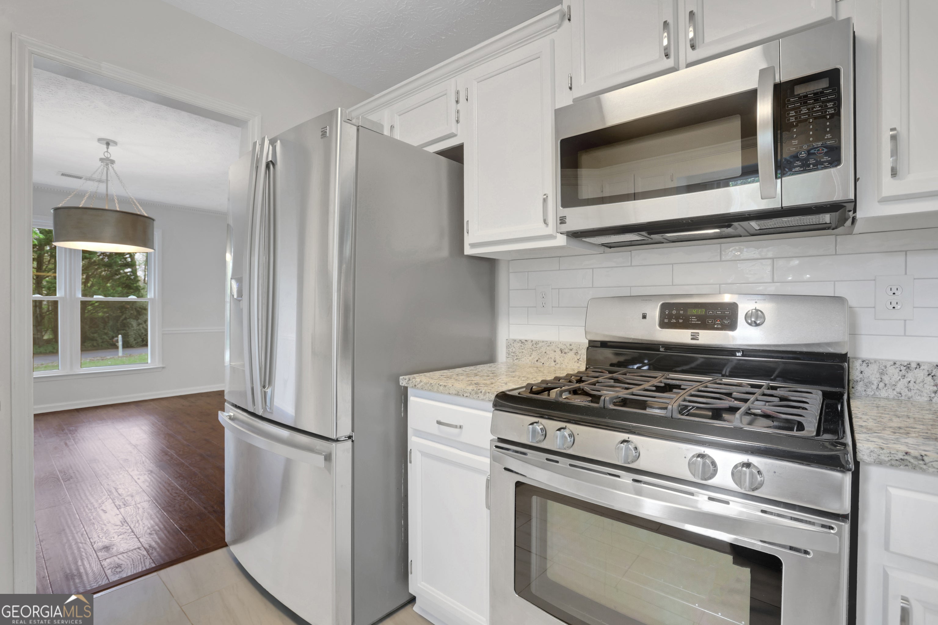 Welcome to 4655 Hampton Square Dr-a well-maintained 3BR/2BA home offering the perfect blend of comfort, functionality, and convenience. Inside, you'll find fresh interior paint and real hardwood floors. The vaulted living room features a traditional fireplace and ceiling fan, creating a comfortable and inviting central space. The kitchen offers a practical layout with stainless steel appliances, granite countertops, subway-style backsplash, and a large walk-in pantry closet-providing both storage and everyday usability. The oversized primary suite stands out with a vaulted trey ceiling and a spacious walk-in closet. The primary bathroom includes a double vanity along with a separate tub and shower. Step outside to a fully fenced, level backyard-private and well-suited for entertaining, pets, or future outdoor enhancements. Located just minutes from Avalon, Webb Bridge Park, and downtown Alpharetta, this home offers exceptional access to shopping, dining, and recreation-all within a highly sought-after school district.