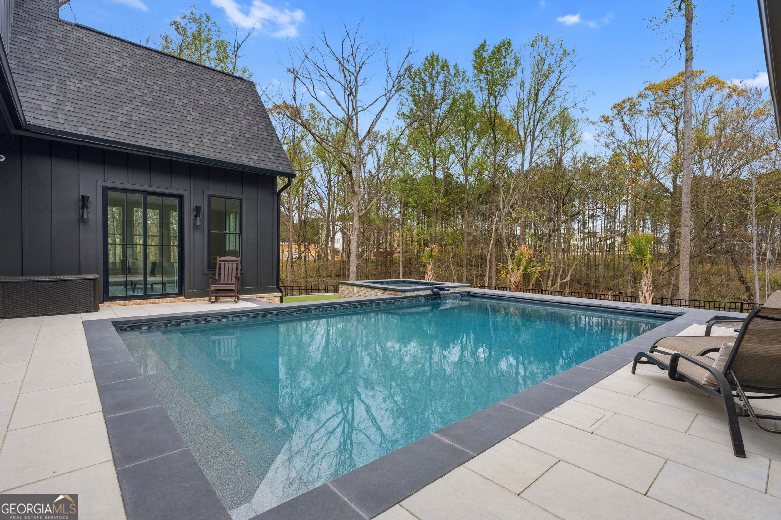 It's not often a house like this hits the market in Dacula. Set in the new neighborhood Homestead at Hog Mountain near Hamilton Mill, this custom-built luxury home completed the end of 2025 brings together the kind of privacy, scale, and luxury design that is hard to find in this area of Gwinnett County. Positioned on a 1.2 acre homesite on a private road with just 2 other custom homes, this property offers a rare combination of space and convenience in one of the most talked-about new neighborhoods in Dacula, GA. Homestead at Hog Mountain is already drawing attention for what is coming next. A community food hall, a walkable coffee shop, bookstore, and boutique are expected to open in summer 2026 and are all part of the vision here, along with additional future plans for a brewery, church, and private school as well as neighborhood amenities. This is a new construction home that offers more than just a beautiful house - it puts you in the middle of an area that is actively growing and changing in a meaningful way. From the moment you arrive, this home stands out, and inside, the custom selections feel timeless. The entrance itself is a showstopper with a gorgeous chandelier and a double staircase flanking the foyer. The kitchen is one of the strongest statements in the home, with custom solid white oak cabinetry, quartz countertops and a waterfall island, paneled Sub-Zero fridge and freezer, and a walk-in butler's pantry with a sink, additional dishwasher and refrigerator space. The living room opens with vaulted ceilings, custom cedar beams, and a brick fireplace that extends all the way to the ceiling, creating a space that feels elevated without losing warmth. The primary suite is located on the main level and includes a separate office space along with a spacious, spa-like bathroom. Upstairs, all four bedroom suites include ensuite bathrooms with tiled showers, touch mirrors, and custom walk-in closets. An additional upstairs laundry hookup near the kids' living space makes the layout even more functional. The enclosed breezeway between the main house and the guest house located over the garage adds an extra layer of privacy right away, The guest suite has its own living room, bedroom, bathroom, and laundry hookup- perfect for private guest quarters or a multigenerational living setup. There is also a dedicated gym with vaulted ceilings and double sliding doors, a soundproof theater with a riser, and extended driveway, three-car garage, and separate golf cart garage. Every part of the home feels custom because it is. And then there's the backyard, which feels more like a private retreat than a typical new construction outdoor space. The 20x33 saltwater pool overlooks a wooded area and features a heater, chiller, a custom seating ledge, and an electric automated cover. There is also an enlarged hot tub, putting green, in-ground trampoline, outdoor half bath, an outdoor shower, grilling area with gas hookup, and a sliding accordion window that connects directly to the indoor bar with nugget ice machine. With top Gwinnett County schools, proximity to Hebron Christian Academy, and a location near Hamilton Mill, Buford, Braselton, Little Mulberry Park, the Mall of Georgia, and Interstate 85 this home, offers the kind of lifestyle and location that buyers seeking luxury will appreciate. This is a rare opportunity to own a custom home in Dacula that already feels finished, already feels private, and already feels ahead of what is coming next.