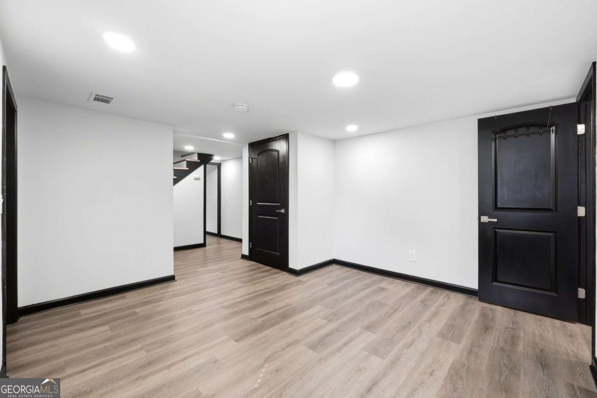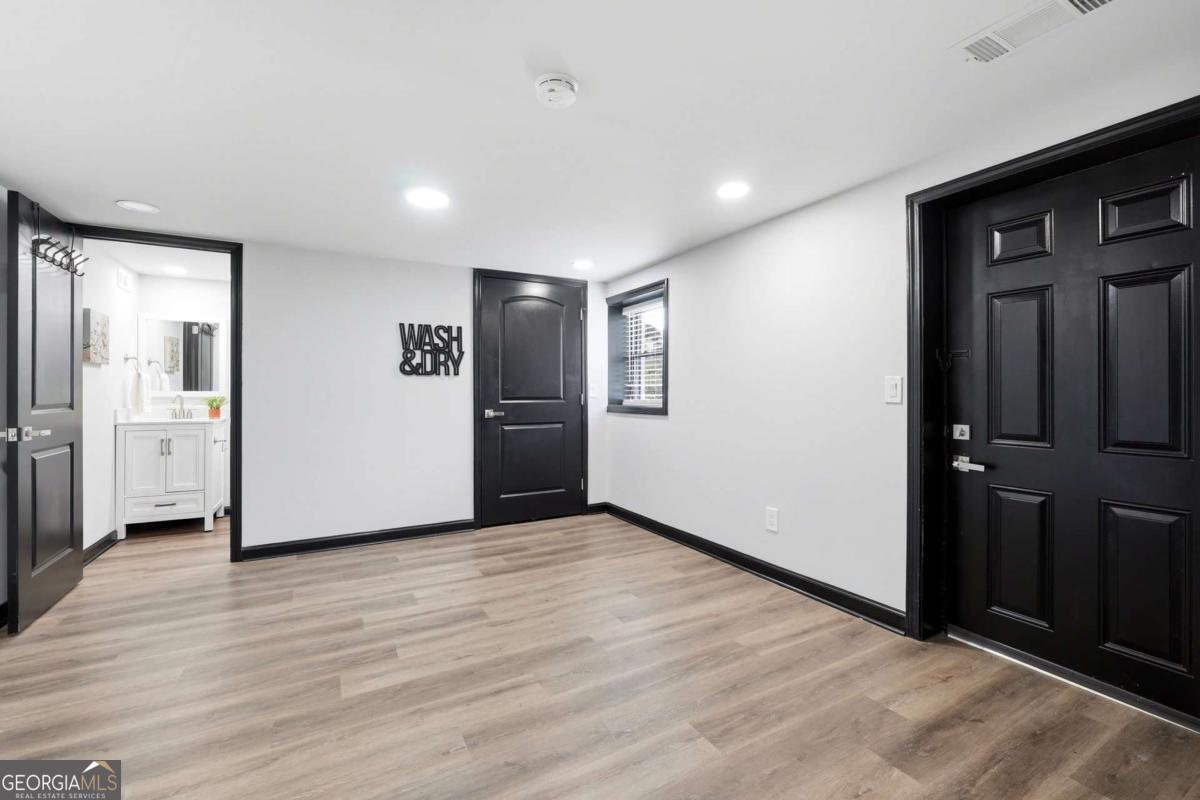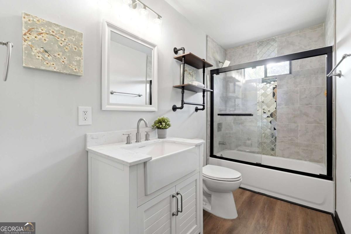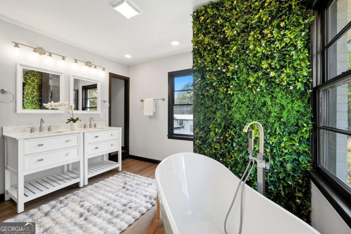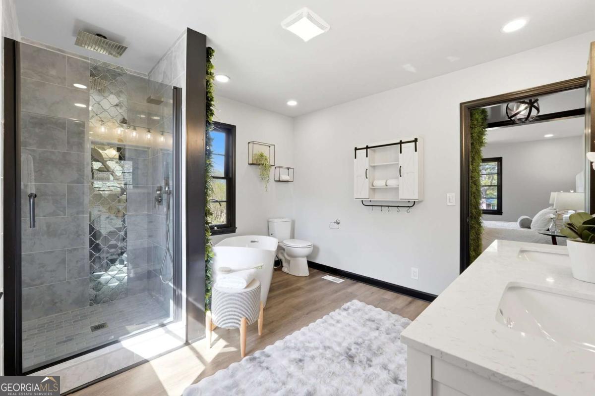 A rare find in Gainesville-completely reimagined and truly one-of-a-kind. This beautifully renovated RANCH is perfectly positioned to capture the morning sun with its desirable eastern exposure. The exterior makes a striking statement with crisp white brick, sharp black trim, and an expansive wrap-around porch. Inside, the open-concept main level features a sleek fireplace, warm wood-plank accent walls, and a designer kitchen with a large central island and stainless steel appliances. The primary suite offers a spa-inspired ensuite with a frameless glass shower and a standalone soaking tub. The newly finished basement includes a full bath and direct access to the backyard, providing the perfect setup for a guest suite, home office, or media room. Situated on hard-to-find acreage with endless possibilities, this turn-key property offers modern style and rare privacy in a peaceful setting.