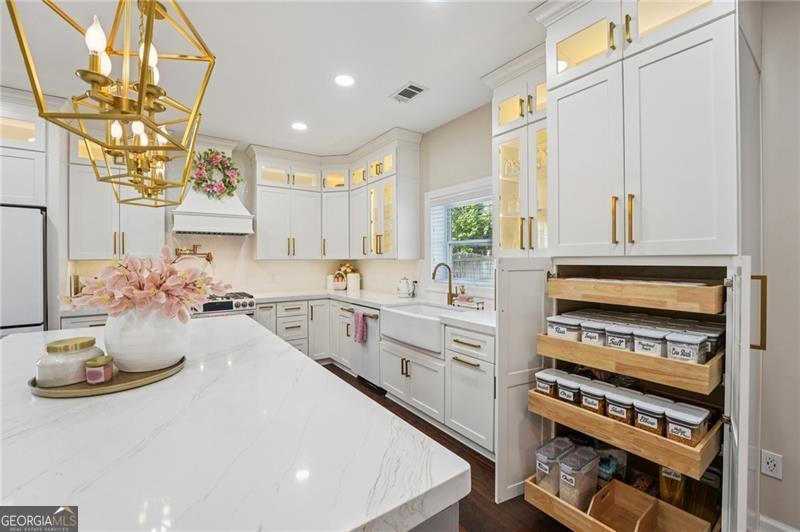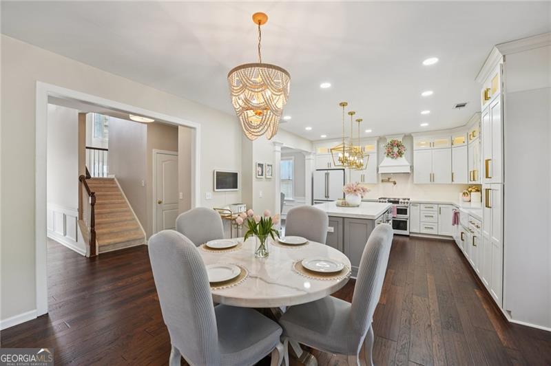 Welcome to this beautifully maintained 6-bedroom, 4-bath home located in the highly sought-after Creekview school district, offering three full levels of thoughtfully designed living space. Step inside to discover a completely renovated kitchen (November 2024) that has been expertly reimagined to create a bright, open-concept layout flowing seamlessly into the dining area. Architectural pillars add a timeless elegance, while the show-stopping oversized quartz island (50 x 92) serves as the heart of the home-perfect for entertaining and everyday living. The kitchen is outfitted with matching Cafe appliances in matte white with bronze accents, including a four-door refrigerator, double oven with six burners, and a microwave/oven combo. Custom cabinetry with soft-close drawers, gold hardware, glass-front display cabinets, and a spacious pantry provide both beauty and exceptional functionality. Additional luxury touches include a farmhouse sink, motion-sensor faucet, pot filler, curved hood with crown molding, and a designer glazed ceramic backsplash. The entire home was updated in November 2024 with new flooring throughout-hardwoods on the main level and plush carpeting on the upper and terrace levels-along with upgraded lighting fixtures, including enhanced kitchen lighting and accent lighting in the living space. Both the interior and exterior have also been recently painted, giving the home a fresh, move-in-ready feel. Upstairs, you'll find generously sized bedrooms, including custom closets in two rooms, while the finished terrace level offers additional flexible living space ideal for guests, a media room, or home office. Major system updates include a new AC unit (2024), providing peace of mind for years to come. Outside, enjoy a well-maintained yard with fresh mulch, a garden area, and a storage shed for added convenience. Meticulously cared for and thoughtfully upgraded, this home truly feels like new construction while offering the space, warmth, and character of an established neighborhood. A rare opportunity in one of the area's most desirable school districts-this is the one you've been waiting for.