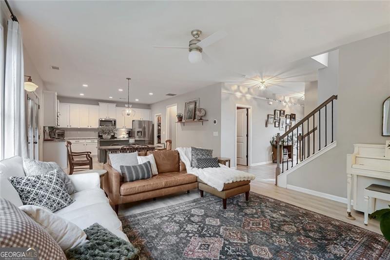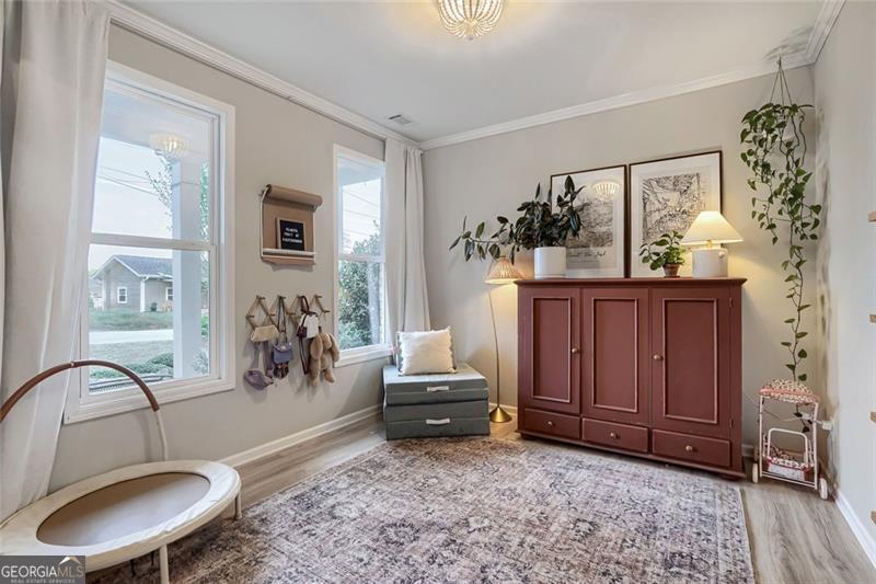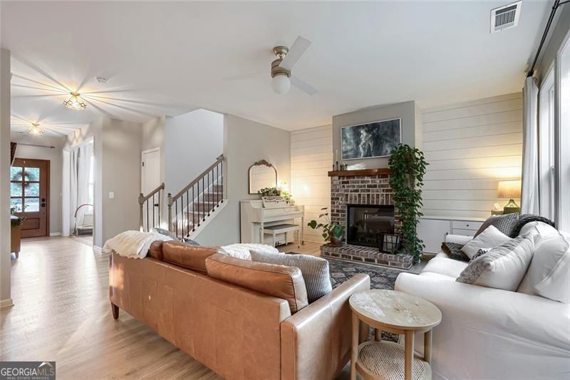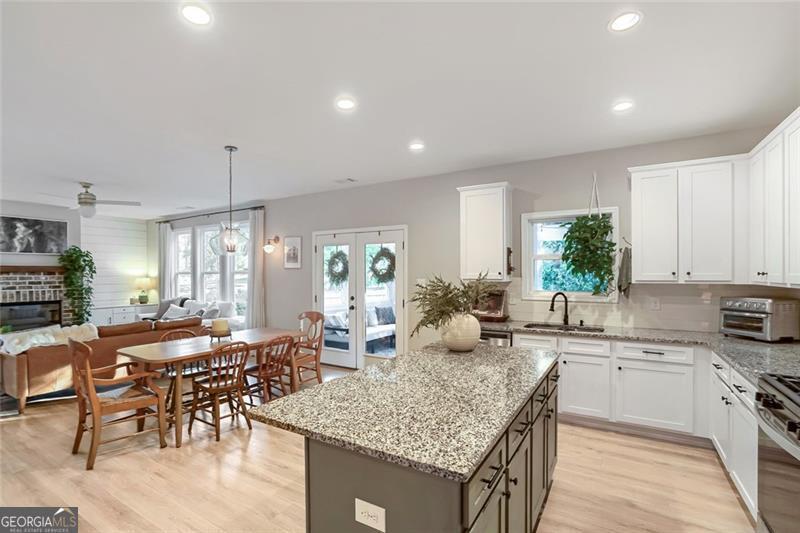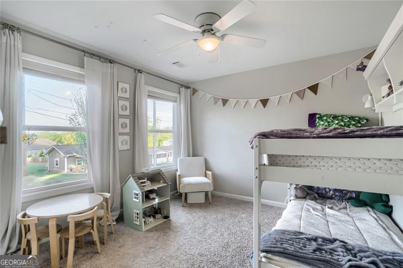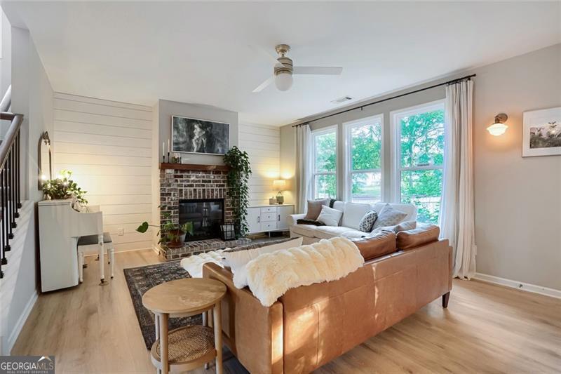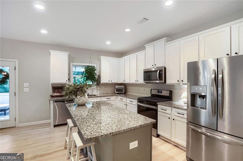 Nearly new and beautifully styled, this 4-bedroom, 2.5-bath craftsman home is located in the sought-after Buford City Schools district. From the moment you step inside, you're greeted by abundant natural light, elevated finishes, and a warm, inviting feel throughout. The open-concept floor plan is ideal for both everyday living and entertaining, seamlessly connecting the kitchen, dining area, and living room. The kitchen features crisp white cabinetry, stainless steel appliances, and a convenient breakfast bar for casual meals. The living room is anchored by a stunning brick fireplace and a wall of windows that overlook the backyard, creating a bright and airy space to gather. A true highlight of the home is the covered back porch with its own fireplace, perfect for year-round enjoyment, whether hosting guests or unwinding at the end of the day. An additional flex space on the main level offers versatility for a formal dining room, office, or playroom. Upstairs, the oversized primary suite serves as a private escape, featuring a well-appointed ensuite with a double vanity, soaking tub, and separate shower. Three additional bedrooms share a well-appointed bathroom and offer plenty of space for family or guests. Located just a short walk to Downtown Buford, this home combines modern living with unbeatable convenience in one of the area's most desirable communities.