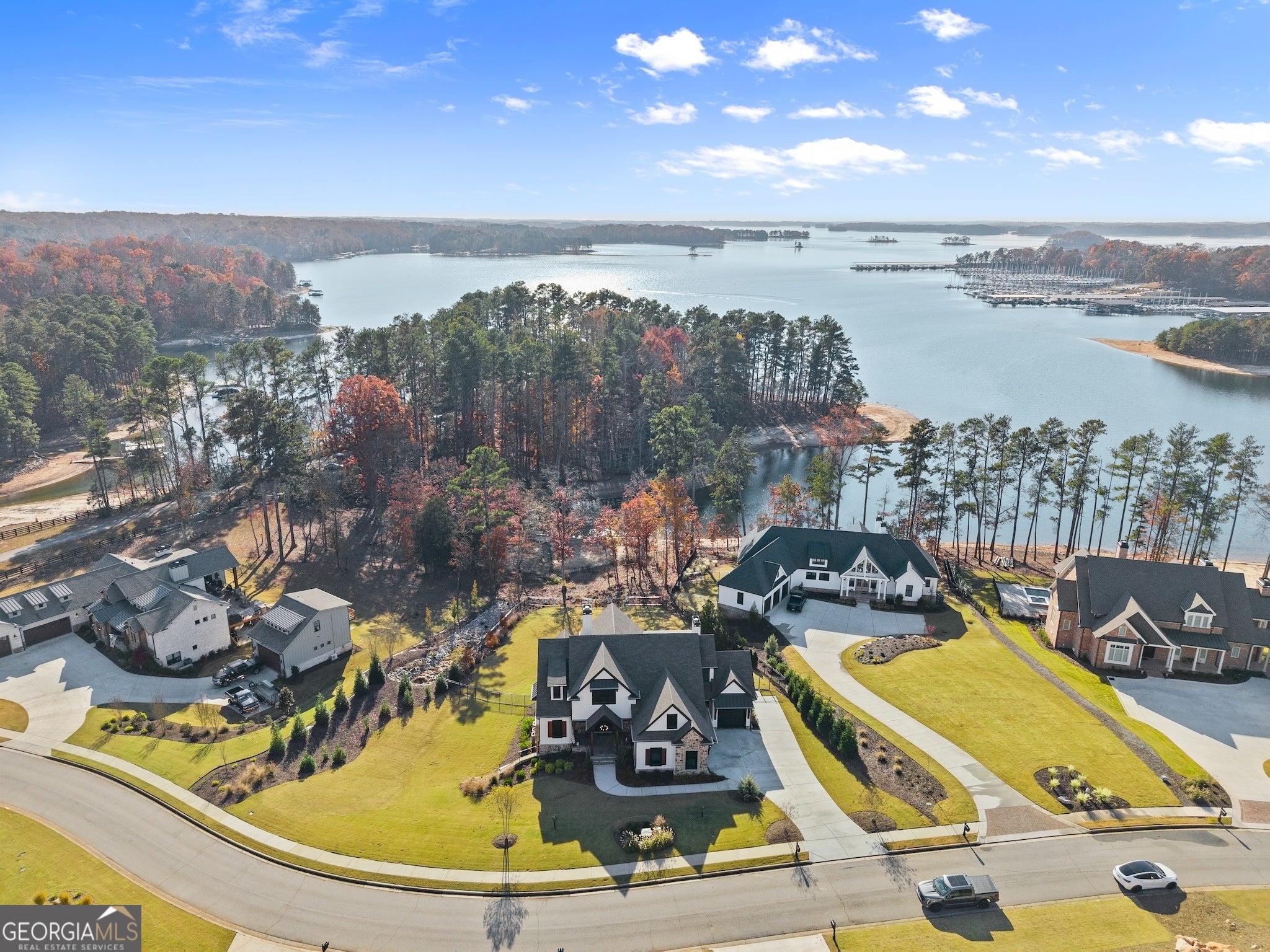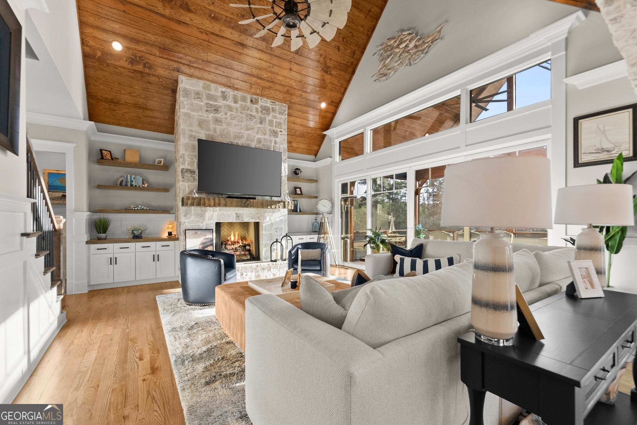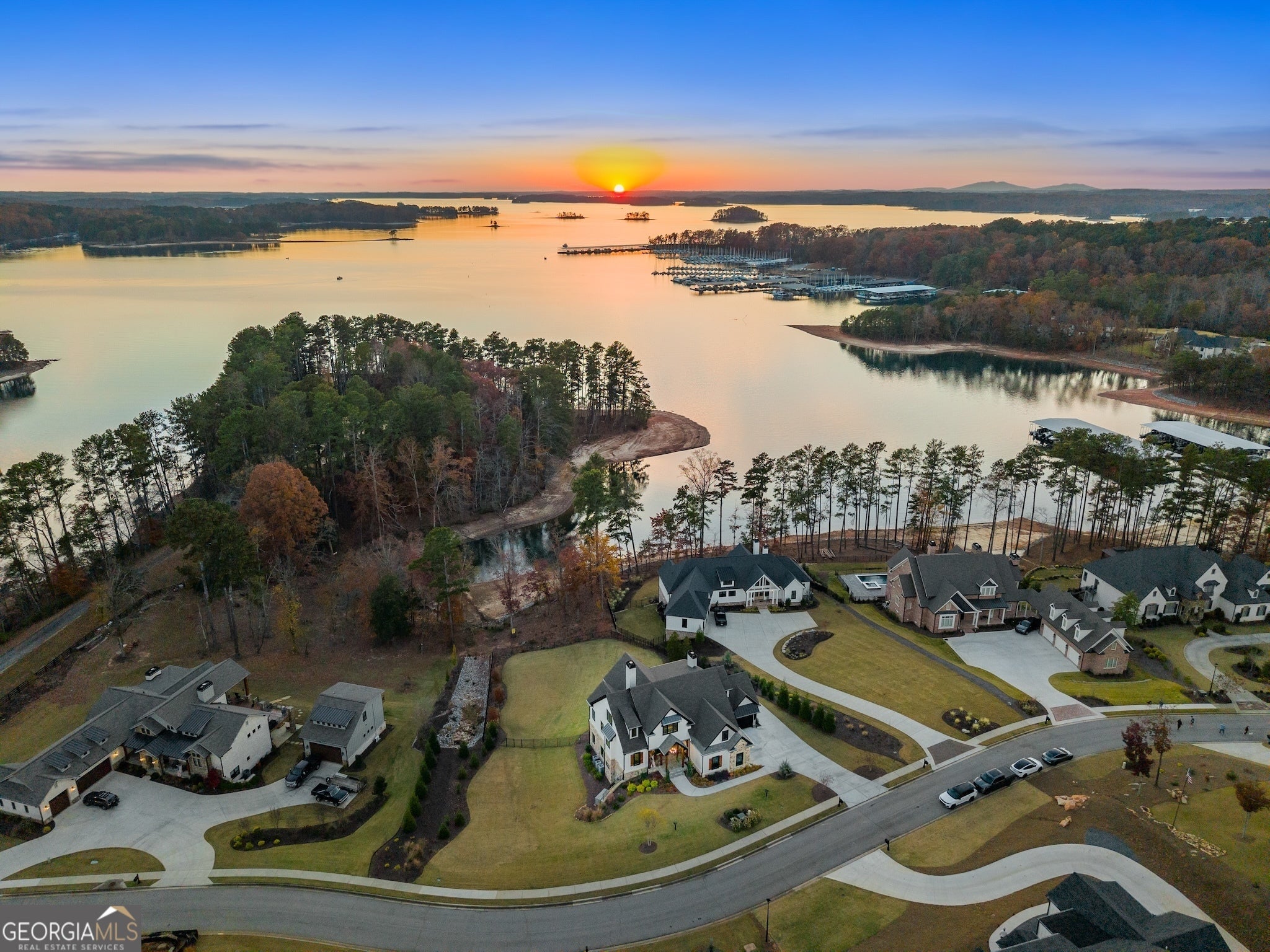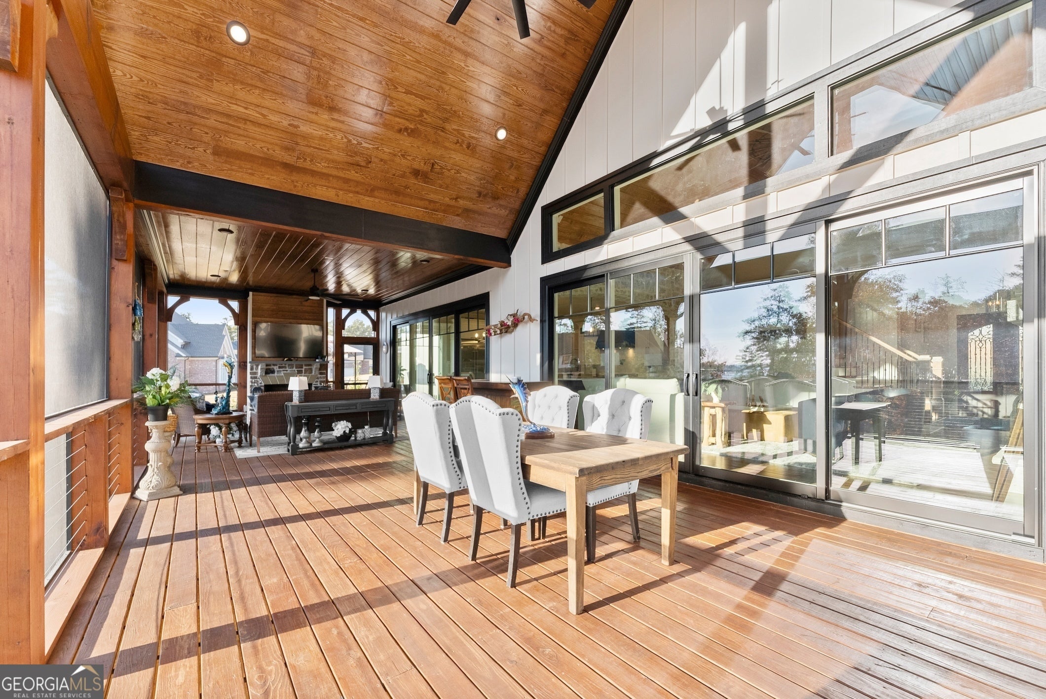 Experience Lake Lanier living at its best - luxury home at water's edge, sunset skies, effortless lake days, and the vibrant South Lake lifestyle right at your doorstep. With your private dedicated boat slip, you're moments from marinas, waterfront dining, and live music nights that make this side of the lake so loved. This home blends elevated design with relaxed lake-life living, creating a true waterfront retreat. Inside, the great room with lake views welcomes you with soaring wood-beam ceiling, floor-to-ceiling stone fireplace, and warm, inviting atmosphere that flows naturally into the chef's kitchen featuring a waterfall quartz island, premium appliances, and a walk-in pantry. Two sets of sliding glass doors open the main level to a full-length screened-in porch and expansive back deck, giving you true four-season living - morning coffee as the lake wakes up, afternoons of grilling and laughter, and evenings spent unwinding under the glowing golden hour sunset skies. This outdoor living space becomes the heart of the home, where gatherings of all sizes feel effortless and unforgettable. The main level primary suite offers a peaceful retreat with a vaulted wood ceiling, calming Lake views, and a spa - inspired bath, with heated floors, soaking tub, oversized frameless shower, and dual closets. A powder room and spacious laundry room complete the main level. Upstairs, and en-suite bathroom/bedroom, two additional spacious bedrooms with shared bath, and a large bonus room provide comfort and flexibility for guests of all ages. The bonus room is ideal for a movie lounge, playroom, or home office - whatever fits your lifestyle. The terrace level is designed for fun and relaxation, featuring tall ceilings, a full wet bar, game area, generous living space, and an oversized flex room with its own bath perfect for additional bedroom, gym or hobby space. It's the ideal backdrop for movie nights, game days, and weekend hangouts. Outside the large level fenced in backyard becomes your lakeside playground - room for fun and games, space to entertain, and easy gate access to the water's edge shoreline for kayaking, fishing, paddle boarding, or simply enjoying quiet moments by the water. With a new price, this home delivers incredible value for a true South Lake waterfront retreat - elevated, inviting, and designed for the way people love to live on Lake Lanier!