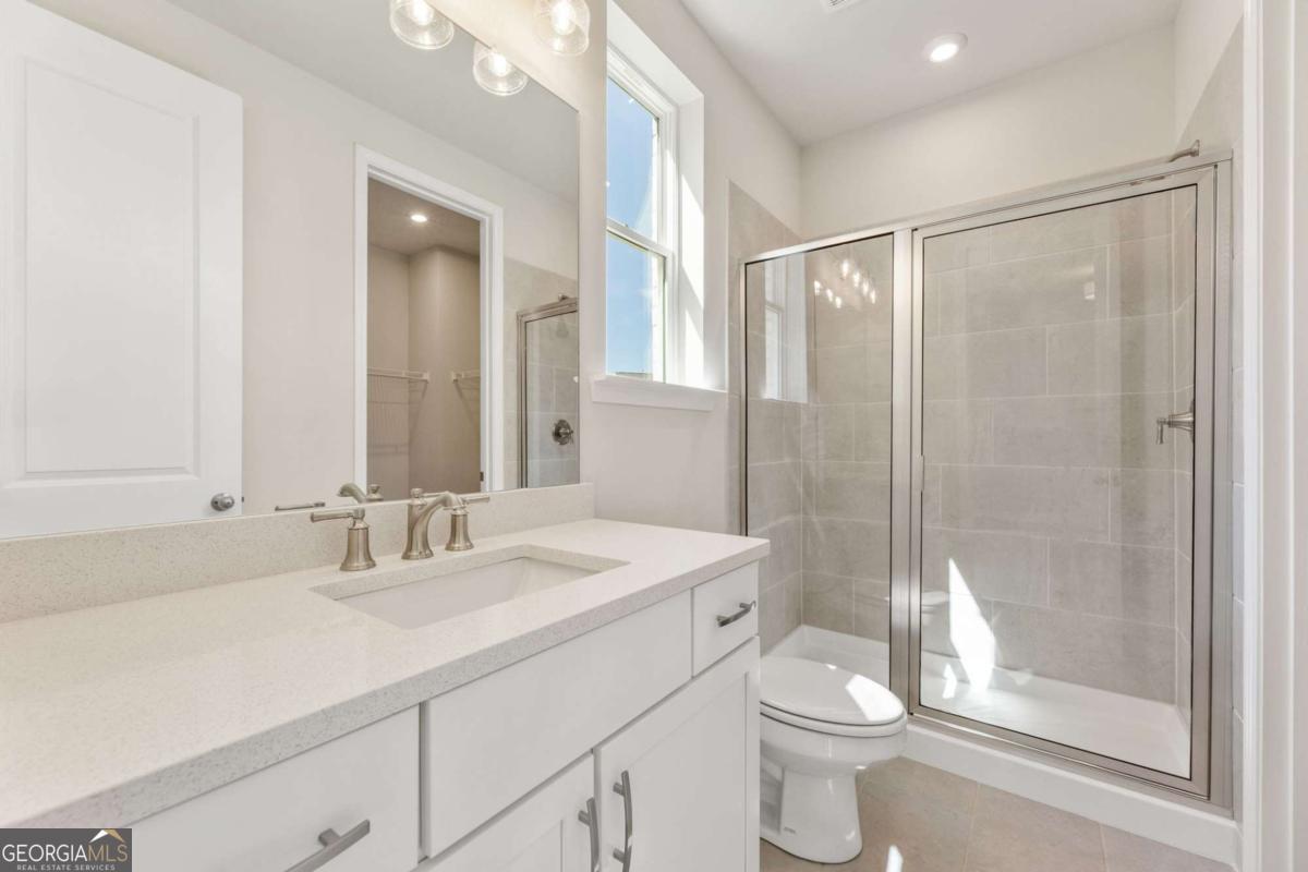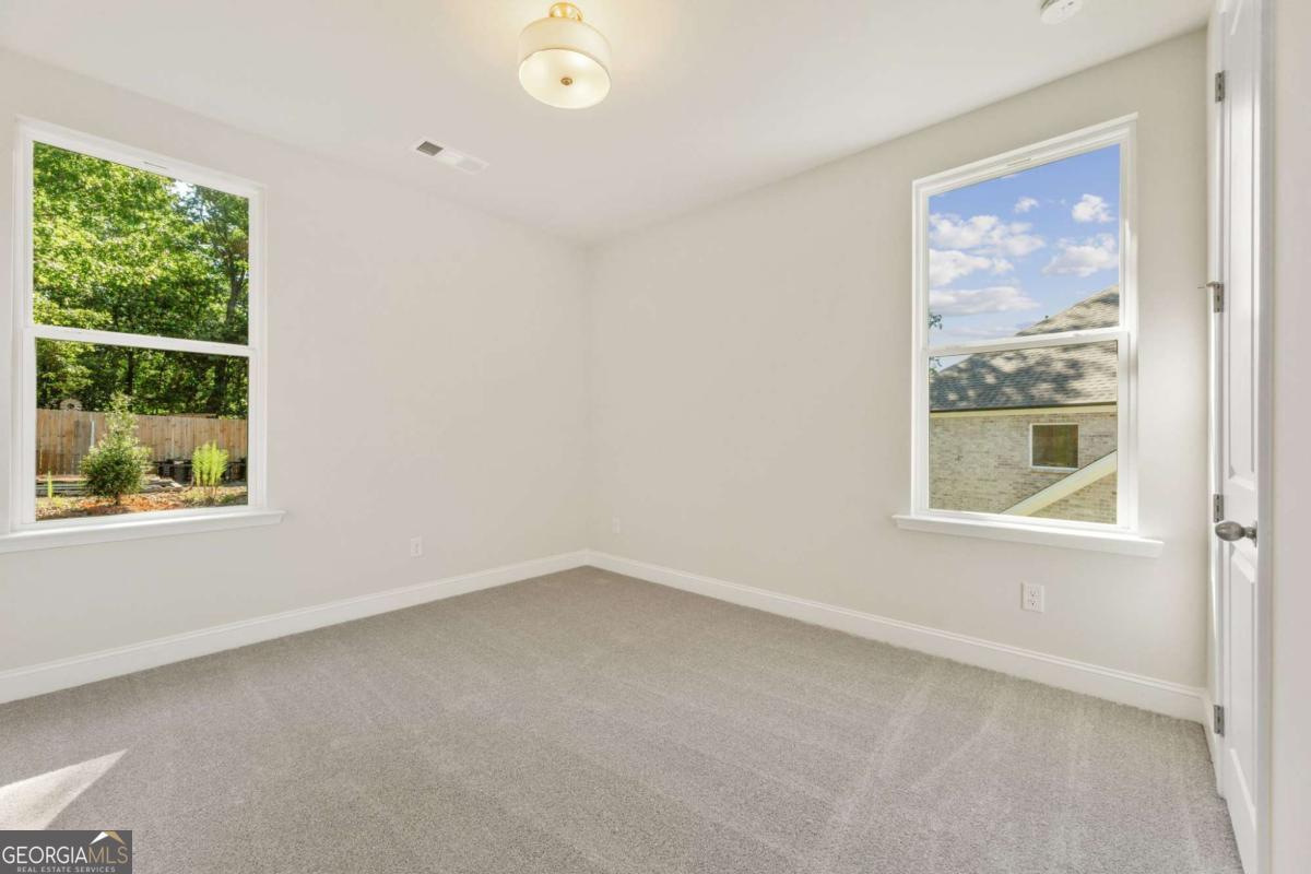 Welcome to Melody Lakes Estates a beautiful boutique community of 22 homes just minutes from Lake Lanier, top-rated schools, golf, and parks. The Danbury E on homesite 5 is Move-In Ready NOW and offers 5 bedrooms, 4.5 baths, and 3,000+ sq ft of thoughtfully designed space with a classic 3-side brick exterior. Inside, a dramatic two-story Family Room with soaring windows fills the home with light, while the open floor plan and waterproof LVP flooring create effortless flow. The gourmet kitchen features 42" maple cabinets, beautiful quartz countertops, oversized island, and Frigidaire stainless appliances including a gas cooktop. A main-level guest suite with full bath and flex room with French doors add convenience. Upstairs, the Primary suite boasts a tray ceiling, tiled shower, dual vanities, and walk-in closet, with 3 additional bedrooms sharing an additional two baths. Outside, enjoy low-maintenance landscaping and an oversized screened in patio and uncovered grilling space with peaceful backyard views. Limited opportunities remain in this boutique lakeside community-don't miss your chance! On site Sales Center open 10-6 on Monday/Tuesday/Thursday/Friday/Saturday, 1-6 on Wednesday/Sunday.