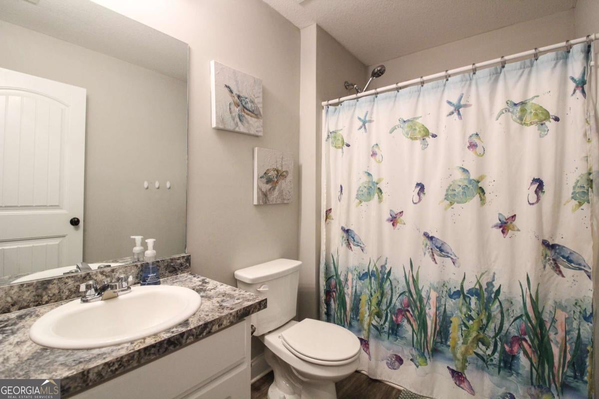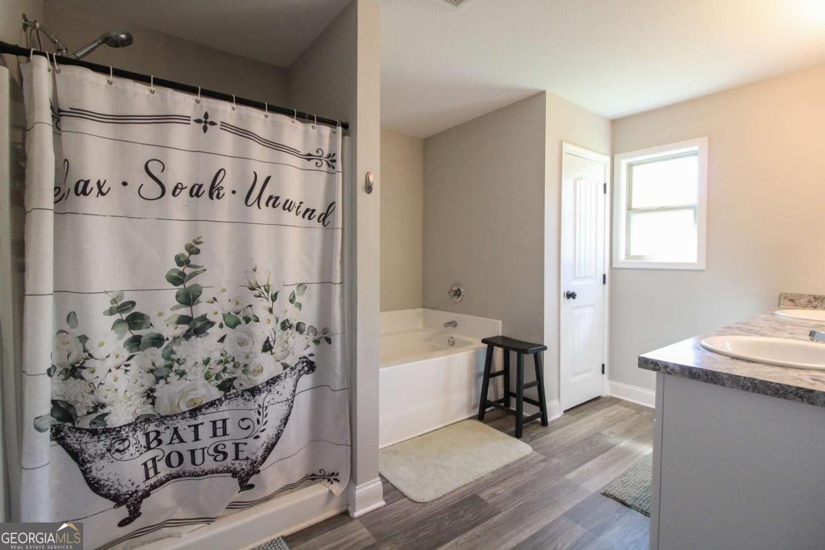 You will love this open floor plan with a huge great room with a large kitchen, abundant counter space and cabinets, breakfast area, dining area and family room area. Kitchen has granite countertops, shaker style cabinets and a large island. Spacious walk in pantry. Wood look luxury vinyl in kitchen, breakfast, laundry and baths. 4 bedrooms and 2.5 baths. Coat and linen closets. Spacious primary bedroom has trey ceiling and walk in closet. Primary bath has comfort height double vanity, full size shower, enclosed commode and separate large bath tub. Almost brand new construction built in 2022. Hardiplank type siding. Large 1.54+/- acre lot with spacious side and back yard. Patio and covered front porch. 11.2 miles to Athens 10 loop bypass. 0% down mortgage loan sources available.