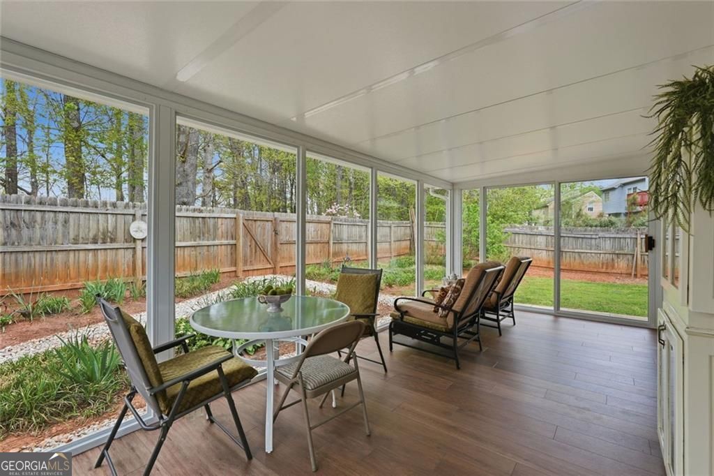 Impeccable home, loaded with upgrades, this beautifully updated single-story home is a standout in Cumming! Offering 1528 sq ft of heated living space plus a PERMITTED 200 sq ft sunroom addition completed in 2024 ( that cost over $60K), this home combines stylish updates, functional living space, and a truly special outdoor setting. Major improvements include a new roof(2024), fully renovated kitchen(2024), luxury vinyl plank flooring (2024), remodeled bathrooms( 2021) and a newer HVAC system ( 2021). The light-filled sunroom addition adds incredible bonus space and is perfect for relaxing, entertaining, working from home, or enjoying views of the lovely, and private backyard. Step outside to a professionally landscaped park-like yard with mature trees and plants that include fruit trees, magnolias, Japanese maple trees, dogwoods, evergreens, and a variety of colorful flowers and bushes that feels like your own private retreat, and it's hard to come by in this price point. With one-level living, tasteful updates throughout, and all the big-ticket items already done, this home offers the ideal blend of comfort, convenience, and peace of mind. And if this wasn't enough, this home has NO HOA!