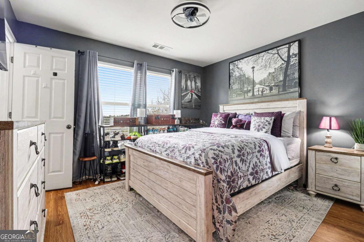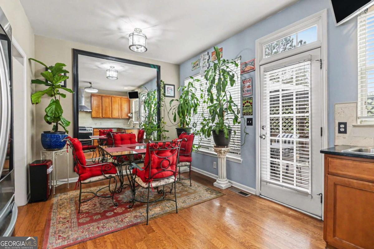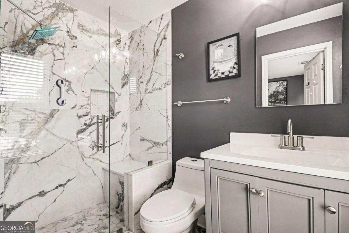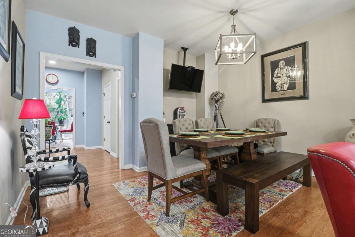 Beautifully Updated 3-Bedroom Townhome in a Prime Location! This impeccably maintained 3-bedroom, 3.5-bath townhome showcases a perfect blend of modern upgrades and timeless charm. Step inside to find rich hardwood floors and a light-filled, open-concept main level anchored by a cozy fireplace and custom built-in bookcases-creating an inviting space for both everyday living and entertaining. The separate dining room flows effortlessly into the beautifully updated kitchen, featuring granite countertops, stainless steel appliances, a vent hood, and an eye-catching travertine backsplash-designed to impress and function with ease. Upstairs, the oversized primary suite offers a true retreat with a generous walk-in closet and a spa-inspired en-suite bath complete with dual vanities, a dedicated makeup vanity, a soaking tub, and a separate shower. The secondary bedroom also features its own private, updated en-suite bath with a sleek frameless glass walk-in shower. The terrace-level basement adds exceptional flexibility, offering a third bedroom, full bath, built-in workspace / private office with a stylish barn door-all ideal for remote work, guests, or multi-generational living. Thoughtful upgrades include porcelain tile in renovated bathrooms, luxury plank flooring replacing carpet upstairs, updated lighting throughout, new ceiling fans, a new hot water heater, and a recently replaced upper-level HVAC system. Enjoy soaring 10-foot ceilings on both the main and terrace levels, along with the convenience of an upstairs laundry room. Residents enjoy access to community amenities including a pool, tennis courts, and playground. Ideally located just minutes from Whole Foods Market, top-rated schools, and only 10 minutes to Kennesaw State University. Outdoor enthusiasts will appreciate easy access to Kennesaw Mountain National Battlefield Park with its scenic hiking and walking trails, while Marietta Square offers nearby boutique shopping, dining, and year-round entertainment. This exceptional townhome truly offers the best of comfort, style, and location-ready for you to call it home! Schedule your private tour today!