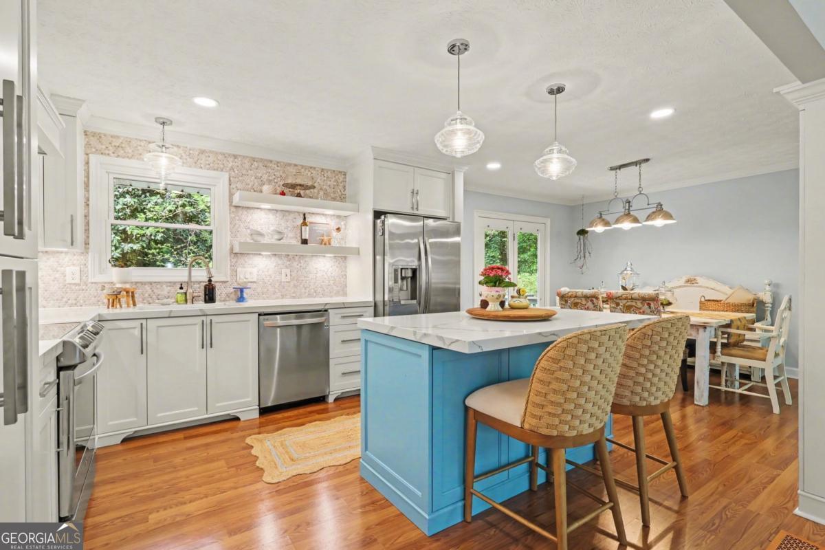 Welcome to 4191 Whispering Forest Court-where "move-in ready" actually means it. This meticulously maintained 4-bedroom, 2 full and 1 half bath home has been thoughtfully updated so you can skip the projects and go straight to living, featuring a fully renovated kitchen with custom cabinetry and a clean, timeless design perfect for entertaining or everyday life. Brand new windows and exterior doors bring in natural light while improving efficiency, and with two new garage doors and fresh paint throughout, the big-ticket items are already handled. Upstairs offers comfortable, well-sized bedrooms, while the lower level delivers the flexible space buyers actually want with a large family room anchored by a wall-length brick fireplace (hello cozy nights), an additional bedroom ideal for guests or a home office, a dedicated laundry area, and plenty of storage. Out back is where this home really shines, with a spacious deck overlooking more than half an acre of lush landscaping filled with perennials that provide seasonal blooms and a peaceful, private setting that feels like your own retreat-without leaving home. Located less than 4 miles from top-rated Gwinnett County schools including Head Elementary School, Five Forks Middle School, and Brookwood High School-all highly regarded, with Brookwood even nationally ranked. There is also an optional Stonemont Pool & Racquet Club in the neighborhood. This home is clean, updated, and clearly loved, this is the kind of house that doesn't sit around waiting to be noticed.