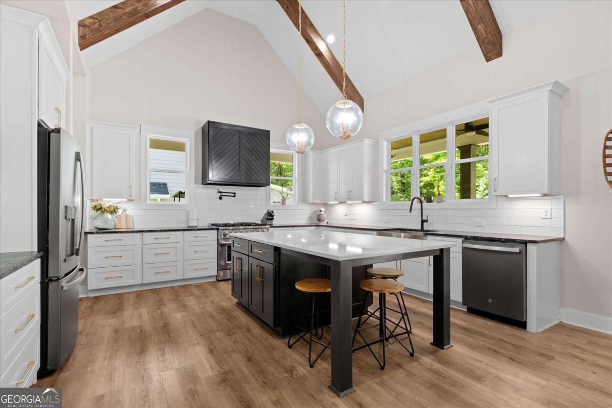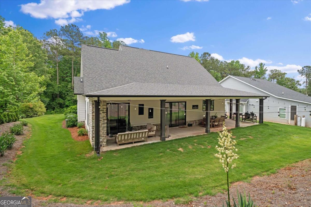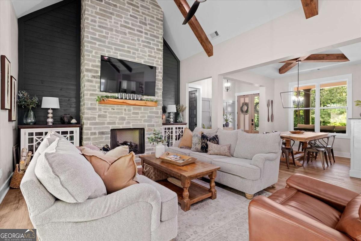 Fresh look. New price. Ready for its next chapter. This 2021 custom craftsman in Fairfield Plantation just got even more inviting-with a brand-new front door welcoming you in, a beautifully added accent fireplace in the primary suite, and a price that makes this opportunity hard to ignore. Inside, you'll find nearly 2,900 square feet designed for both everyday living and effortless entertaining. Rich hardwood floors lead you into a chef's kitchen centered around an oversized island, opening to a warm, fireside family room that feels like home the moment you walk in. Upstairs offers the perfect balance of space and privacy, with additional bedrooms tucked away upstairs. The primary suite now features its own accent fireplace, creating a cozy, elevated retreat at the end of the day. The defined dining area adds just the right touch of structure to the open flow. Out back, the covered porch with a stone fireplace and wooded views sets the stage for fall football, quiet mornings, or evenings that linger just a little longer. And beyond your front door? A lifestyle that's hard to match...golf, lakes, pools, tennis, and a true sense of community, all within easy reach of Atlanta. If you've been waiting for the right home at the right time this might be it.