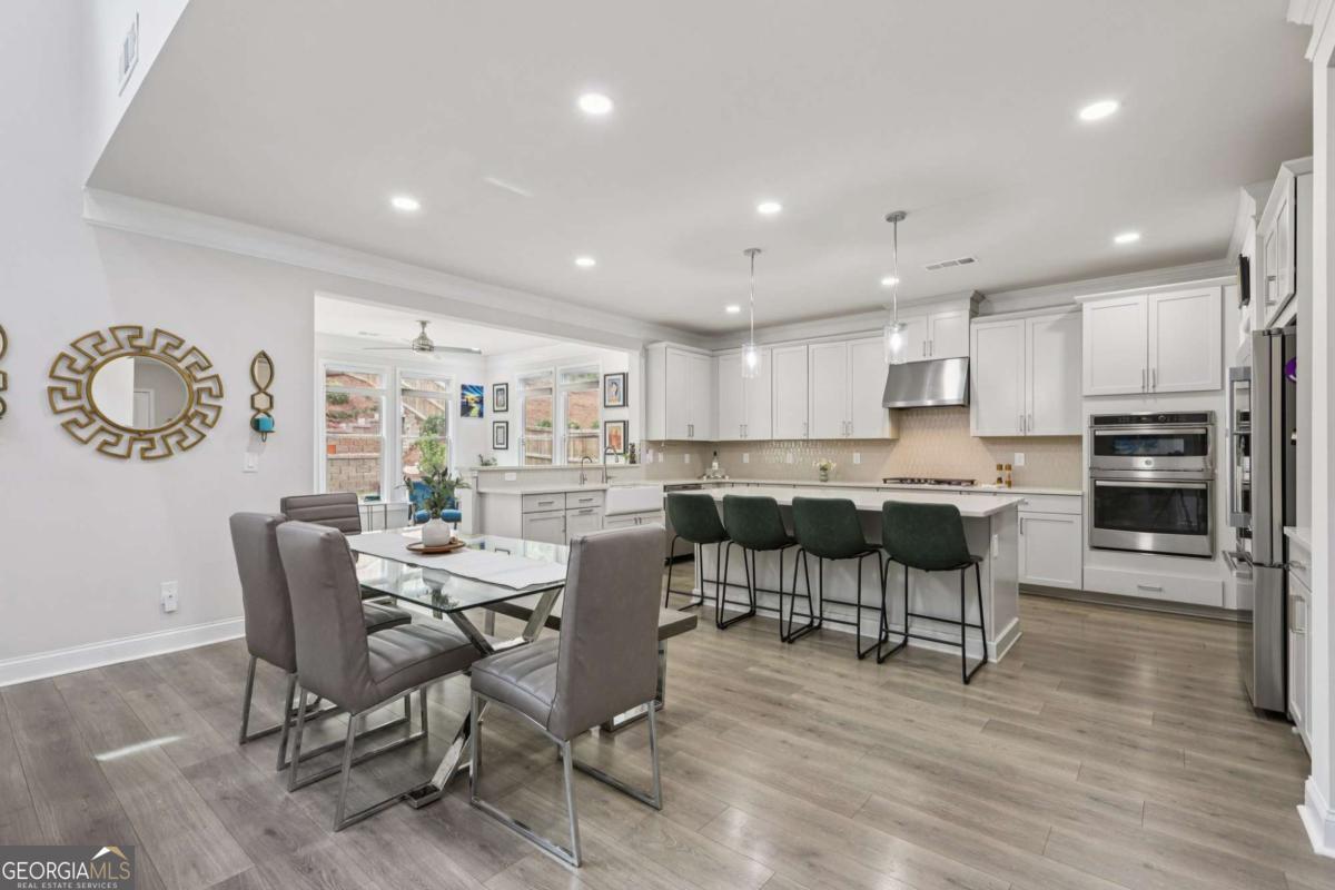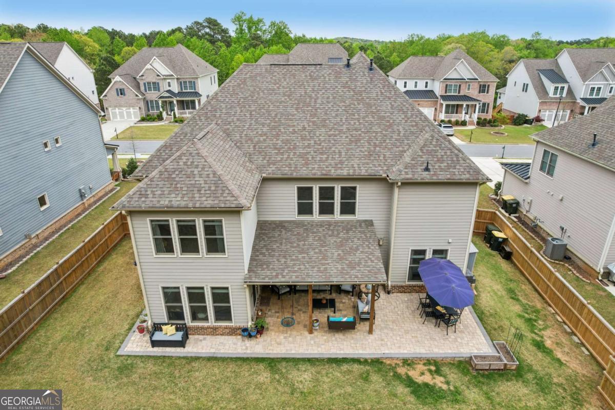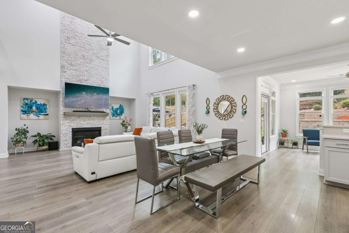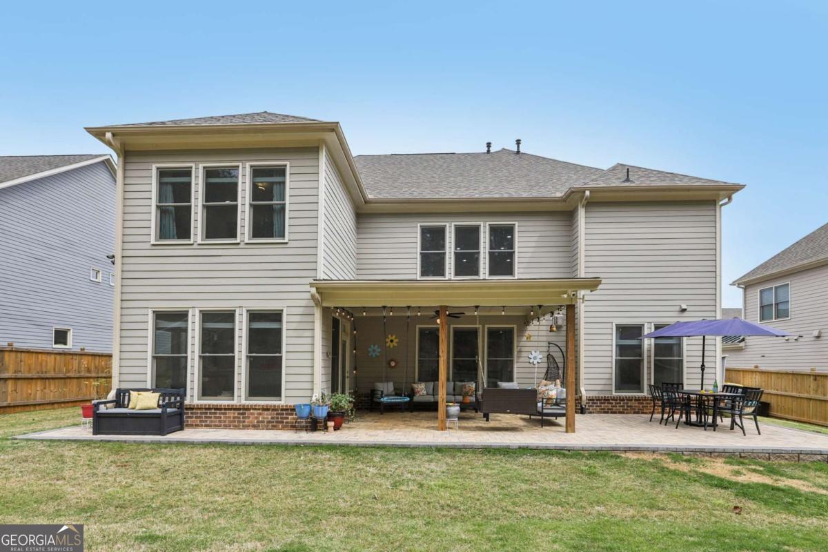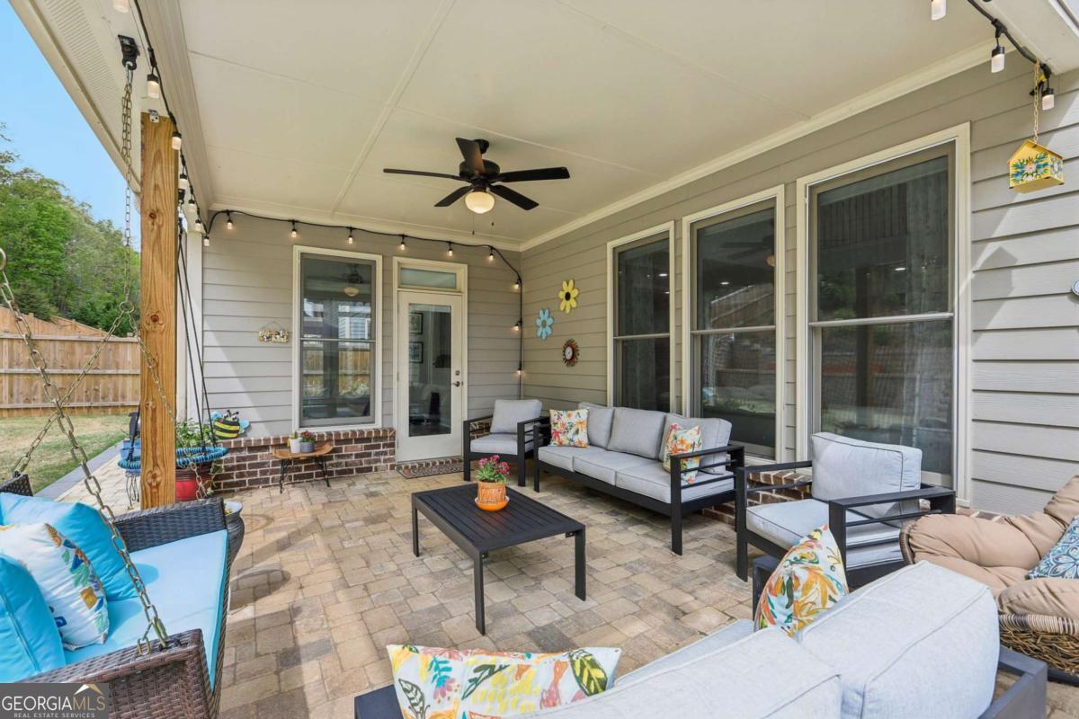 Welcome home to Hadley Estates, one of Forsyth County's most sought-after communities, known for its top-rated schools, close-knit atmosphere, and only 77 homes that truly create a neighborhood feel. Built in 2022 and thoughtfully upgraded, this east-facing home is filled with natural light throughout the day and offers the perfect blend of comfort, function, and elevated design. From the moment you enter, you are greeted by a dedicated office and formal dining room, leading into a spacious open-concept main level designed for both everyday living and entertaining. The main level features durable and stylish LVP flooring throughout, creating a seamless and modern feel. The heart of the home is the stunning kitchen, complete with an upgraded level 4 oversized quartz island, stainless steel appliances including a gas cooktop, oven, and built-in microwave, vent hood exhausting to the outside along with a walk-in pantry featuring built-ins and upgraded counters. The inviting living area is anchored by a gorgeous stacked stone fireplace and enhanced with remote-controlled blinds and smart lighting via Lutron, creating both comfort and convenience. Just off the kitchen, a beautiful sun room flows seamlessly to the covered back patio, creating a true outdoor oasis perfect for relaxing or hosting. The main level also features a private guest suite with its own ensuite bath, along with an additional flex space ideal for a playroom or second office. A conveniently located powder room completes the main level. Upstairs, plush carpeting adds comfort throughout the second level. The oversized primary suite offers a large sitting area, spa-like bath with dual vanities and a stunning walk in shower with built in bench, and a custom walk-in closet with built-ins. Three additional bedrooms provide generous space, including one with a private ensuite and two connected by a Jack-and-Jill bath. The upstairs laundry room adds convenience with a sink and built-in shelving. The fully fenced backyard has been enhanced with added stairs leading to an upper level, offering additional usable space perfect for quiet moments, entertaining, or even a peaceful retreat. Exterior focus lighting is controlled through the Lumary app, while the irrigation system is managed with B-hyve for effortless maintenance. This home is thoughtfully equipped with smart features throughout, including ceiling fans controlled via Hubspace, a smart front door with Schlage keypad entry, and a garage door system powered by myQ for added convenience and security. Additional highlights include a two-car garage and access to the community pool. This home also features Taylor Morrison's LiveWellTM package, thoughtfully designed to support everyday wellness with whole-home air filtration, filtered water at the kitchen sink, water-saving fixtures, and low-VOC materials that contribute to a cleaner, healthier living environment. Perfectly located with convenient access to GA-400 via Exit 13 and Exit 14, making commuting throughout Forsyth County and into North Atlanta seamless. Just minutes to The Collection at Forsyth and Cumming Marketplace, offering a wide variety of dining, shopping, and entertainment options. Enjoy close proximity to outdoor recreation including Sawnee Mountain Preserve, Central Park, and Fowler Park, offering trails, sports fields, and year-round activities. This is the one you've been waiting for.