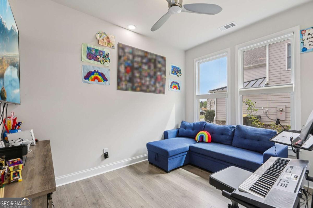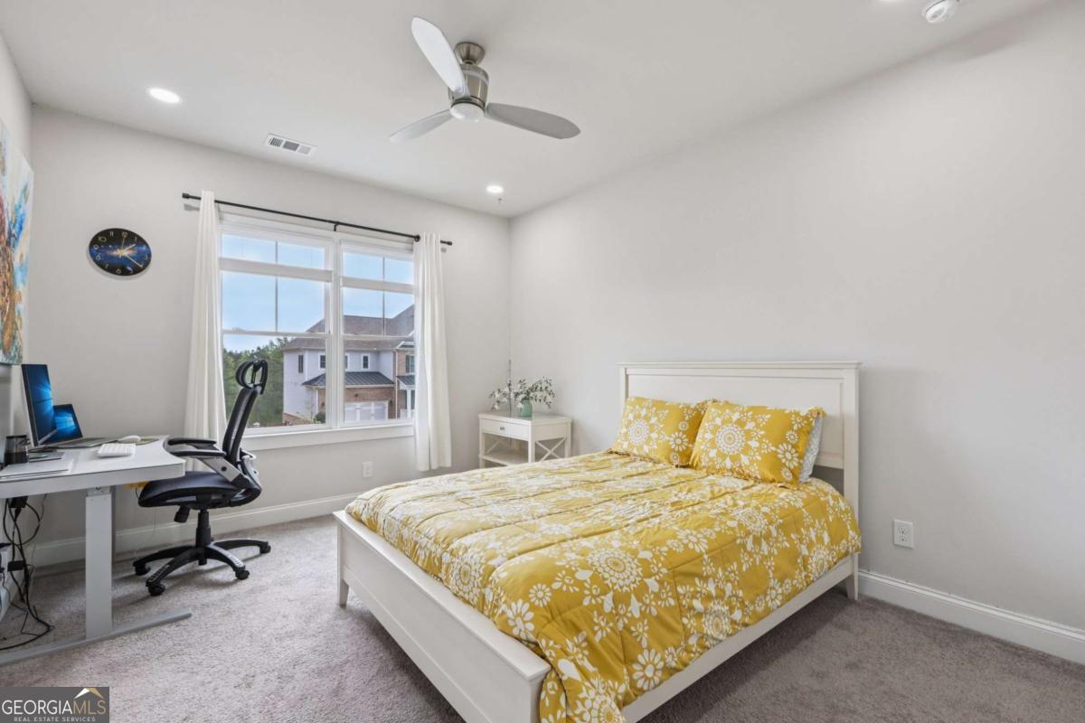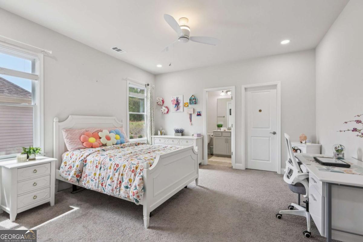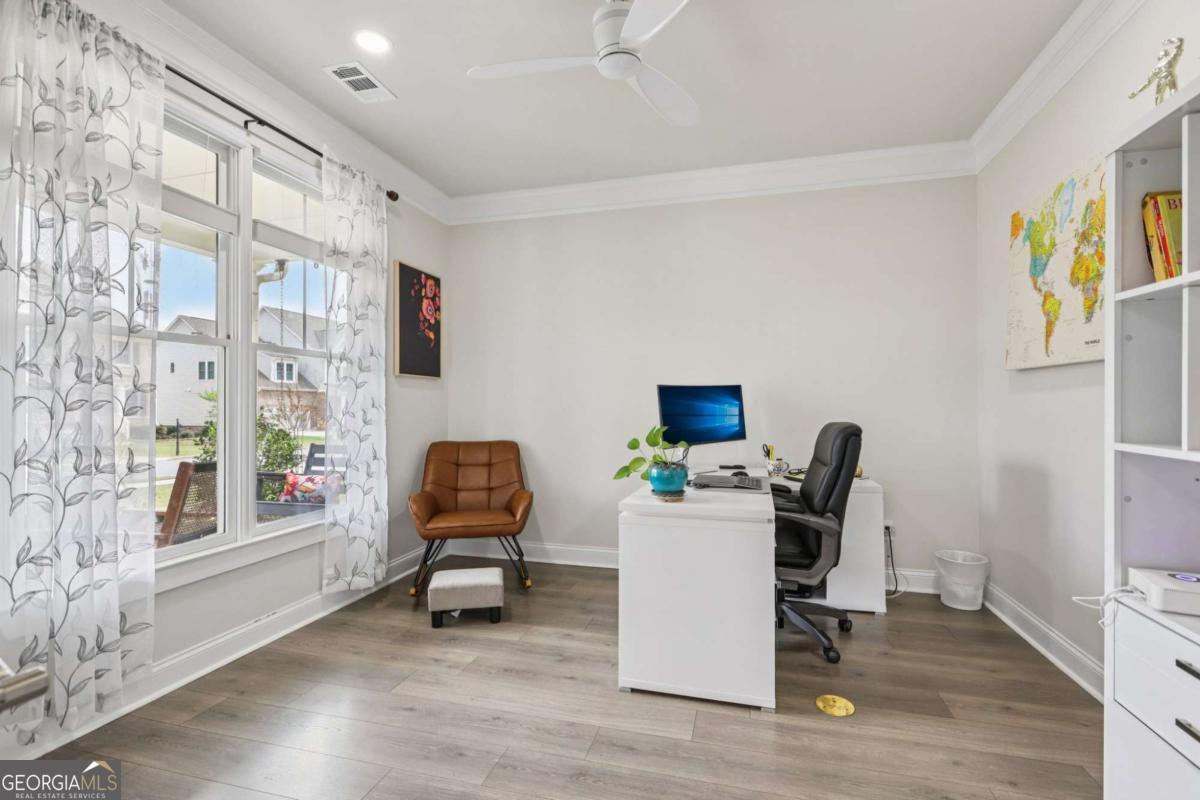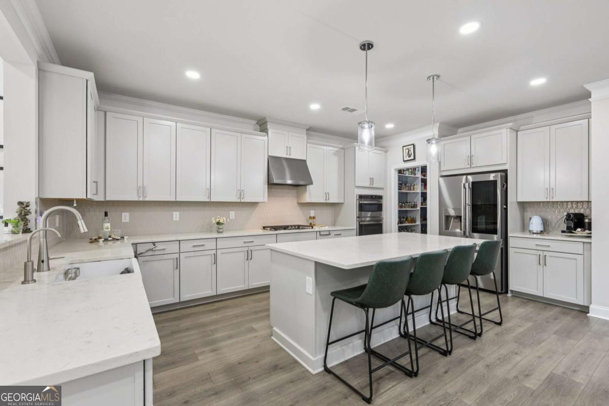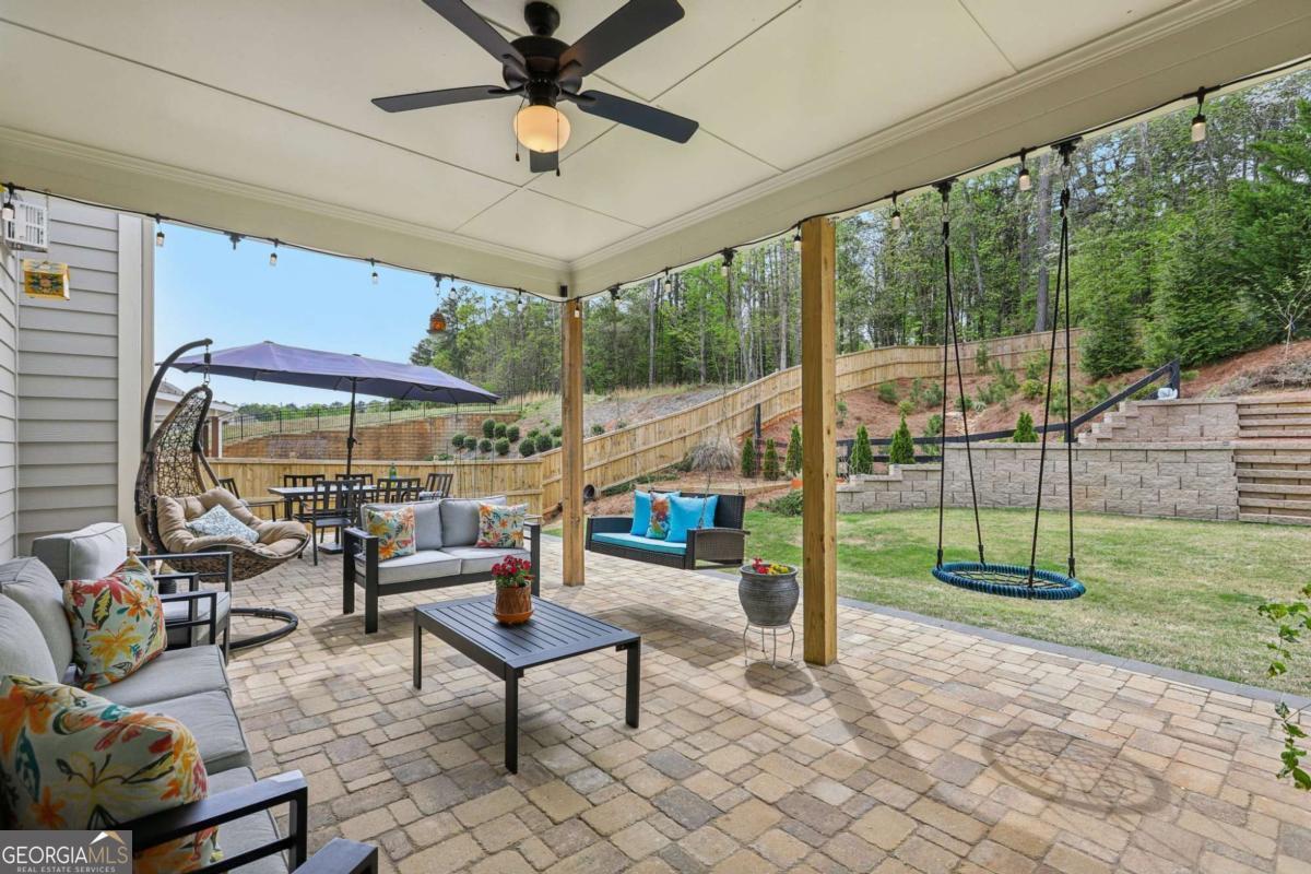 Welcome home to Hadley Estates, one of Forsyth County's most sought-after communities, known for its top-rated schools, close-knit atmosphere, and only 77 homes that truly create a neighborhood feel. Built in 2022 and thoughtfully upgraded, this east-facing home is filled with natural light throughout the day and offers the perfect blend of comfort, function, and elevated design. From the moment you enter, you are greeted by a dedicated office and formal dining room, leading into a spacious open-concept main level designed for both everyday living and entertaining. The main level features durable and stylish LVP flooring throughout, creating a seamless and modern feel. The heart of the home is the stunning kitchen, complete with an upgraded level 4 oversized quartz island, stainless steel appliances including a gas cooktop, oven, and built-in microwave, vent hood exhausting to the outside along with a walk-in pantry featuring built-ins and upgraded counters. The inviting living area is anchored by a gorgeous stacked stone fireplace and enhanced with remote-controlled blinds and smart lighting via Lutron, creating both comfort and convenience. Just off the kitchen, a beautiful sun room flows seamlessly to the covered back patio, creating a true outdoor oasis perfect for relaxing or hosting. The main level also features a private guest suite with its own ensuite bath, along with an additional flex space ideal for a playroom or second office. A conveniently located powder room completes the main level. Upstairs, plush carpeting adds comfort throughout the second level. The oversized primary suite offers a large sitting area, spa-like bath with dual vanities and a stunning walk in shower with built in bench, and a custom walk-in closet with built-ins. Three additional bedrooms provide generous space, including one with a private ensuite and two connected by a Jack-and-Jill bath. The upstairs laundry room adds convenience with a sink and built-in shelving. The fully fenced backyard has been enhanced with added stairs leading to an upper level, offering additional usable space perfect for quiet moments, entertaining, or even a peaceful retreat. Exterior focus lighting is controlled through the Lumary app, while the irrigation system is managed with B-hyve for effortless maintenance. This home is thoughtfully equipped with smart features throughout, including ceiling fans controlled via Hubspace, a smart front door with Schlage keypad entry, and a garage door system powered by myQ for added convenience and security. Additional highlights include a two-car garage and access to the community pool. This home also features Taylor Morrison's LiveWellTM package, thoughtfully designed to support everyday wellness with whole-home air filtration, filtered water at the kitchen sink, water-saving fixtures, and low-VOC materials that contribute to a cleaner, healthier living environment. Perfectly located with convenient access to GA-400 via Exit 13 and Exit 14, making commuting throughout Forsyth County and into North Atlanta seamless. Just minutes to The Collection at Forsyth and Cumming Marketplace, offering a wide variety of dining, shopping, and entertainment options. Enjoy close proximity to outdoor recreation including Sawnee Mountain Preserve, Central Park, and Fowler Park, offering trails, sports fields, and year-round activities. This is the one you've been waiting for.
