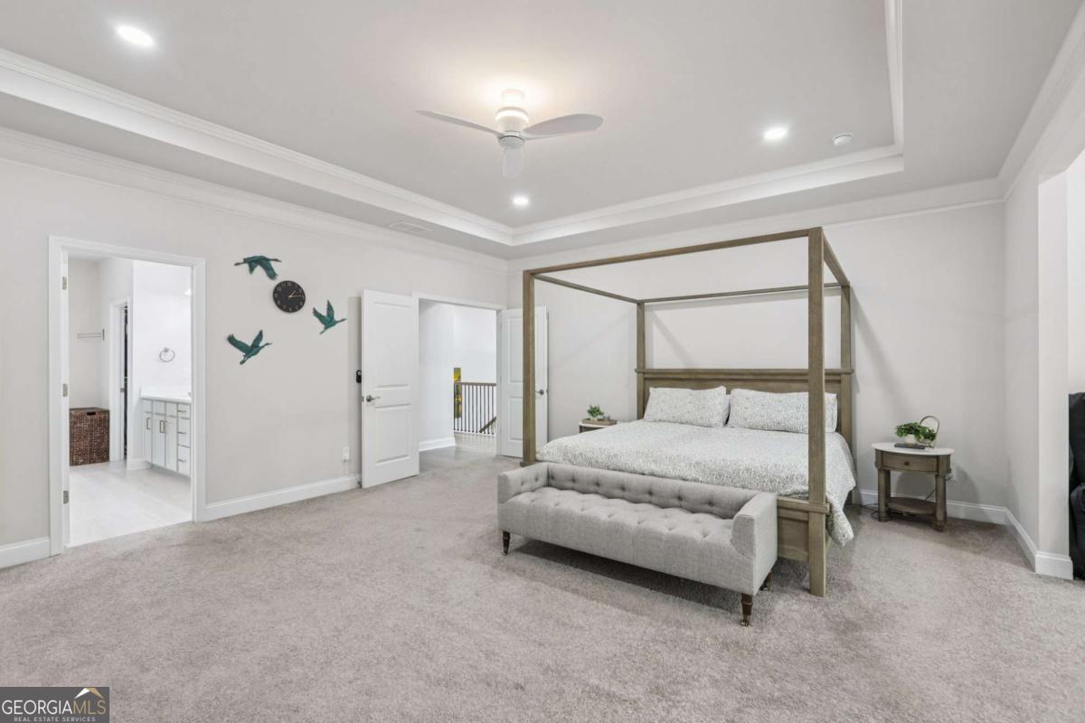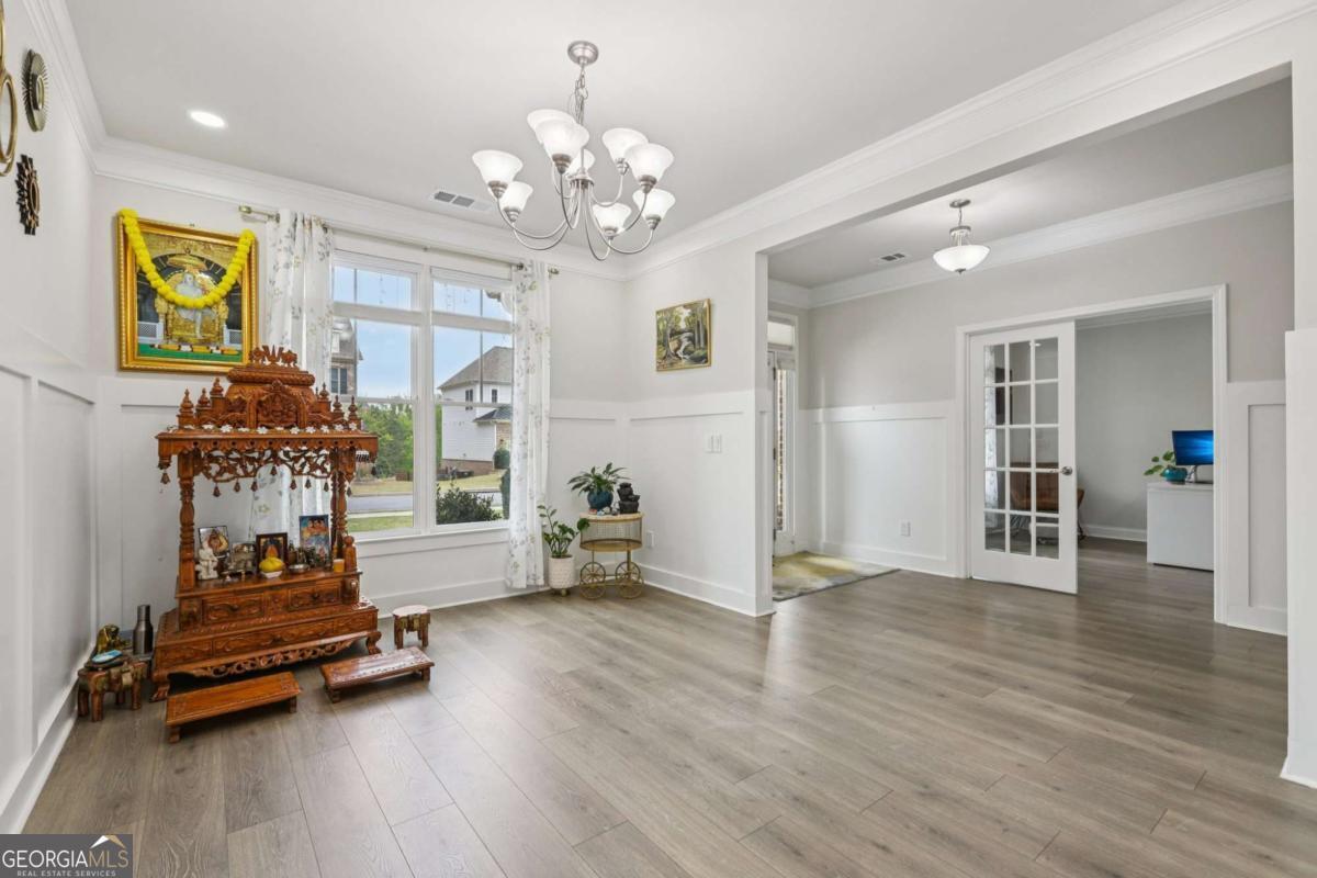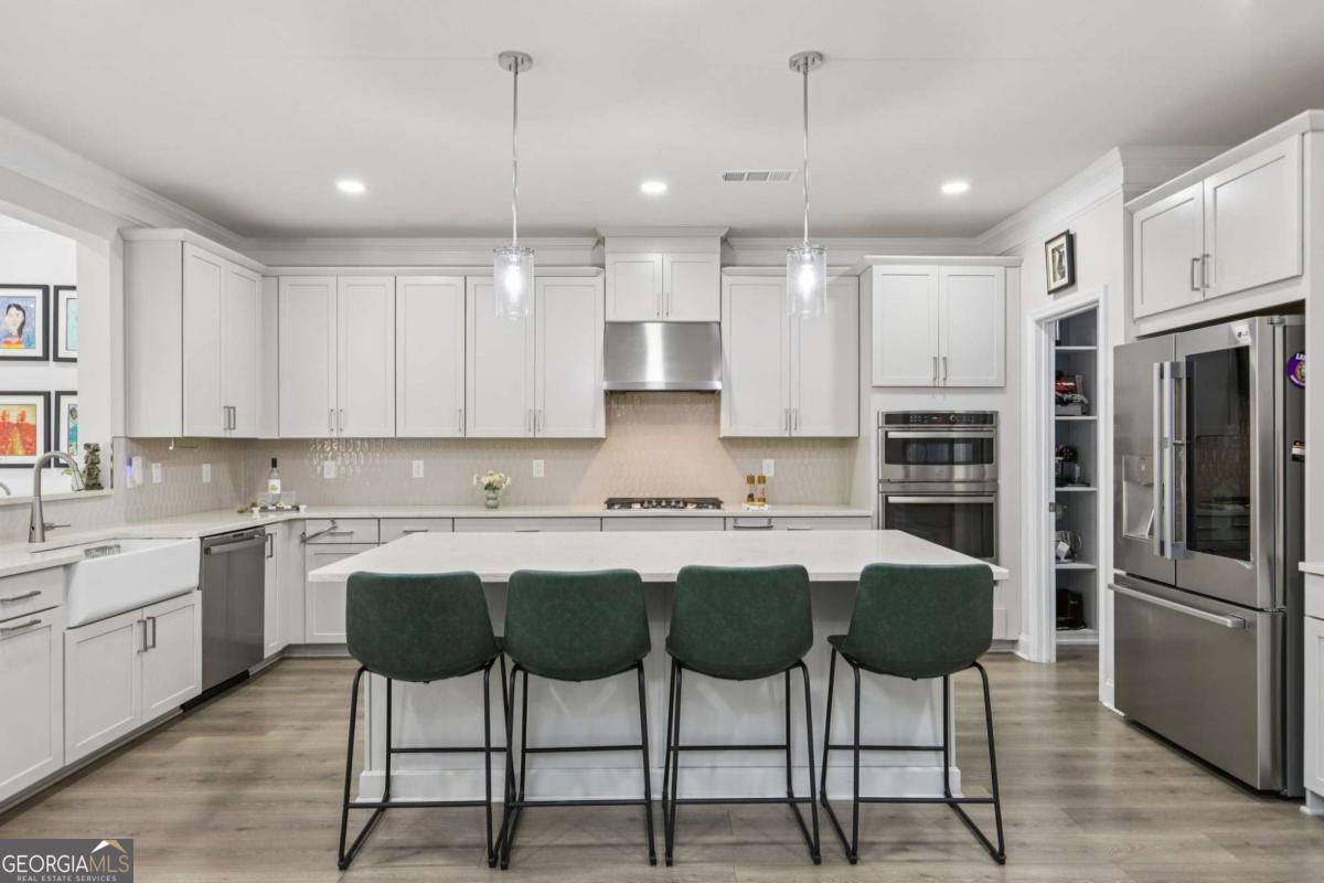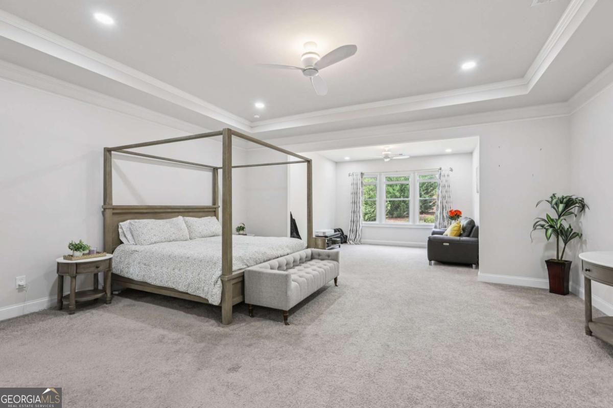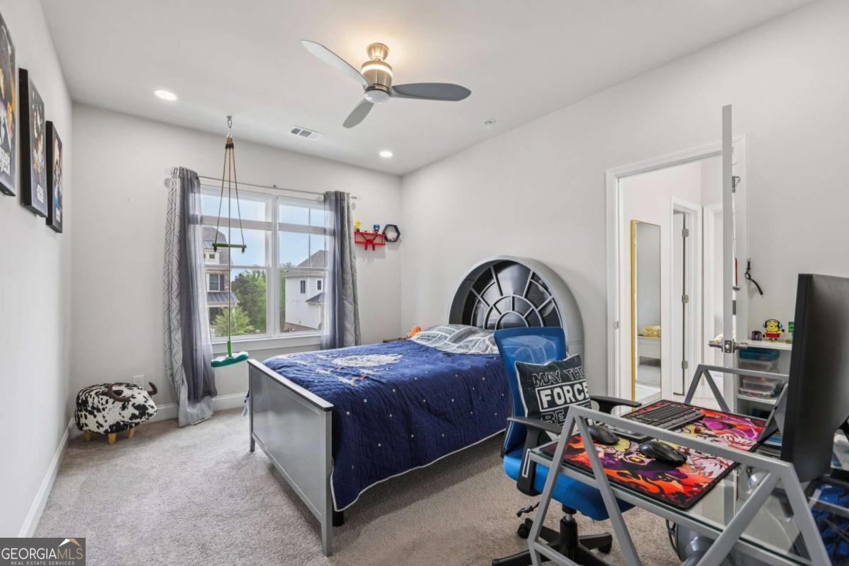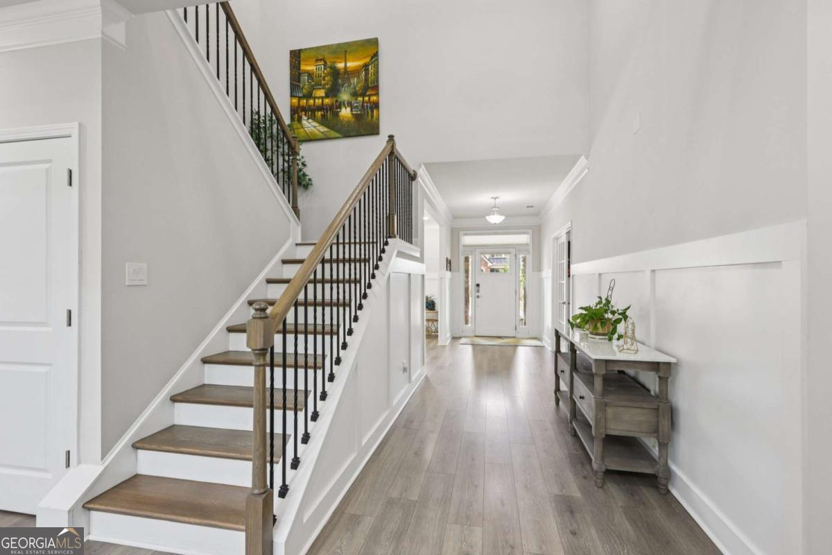 Welcome home to Hadley Estates, one of Forsyth County's most sought-after communities, known for its top-rated schools, close-knit atmosphere, and only 77 homes that truly create a neighborhood feel. Built in 2022 and thoughtfully upgraded, this east-facing home is filled with natural light throughout the day and offers the perfect blend of comfort, function, and elevated design. From the moment you enter, you are greeted by a dedicated office and formal dining room, leading into a spacious open-concept main level designed for both everyday living and entertaining. The main level features durable and stylish LVP flooring throughout, creating a seamless and modern feel. The heart of the home is the stunning kitchen, complete with an upgraded level 4 oversized quartz island, stainless steel appliances including a gas cooktop, oven, and built-in microwave, vent hood exhausting to the outside along with a walk-in pantry featuring built-ins and upgraded counters. The inviting living area is anchored by a gorgeous stacked stone fireplace and enhanced with remote-controlled blinds and smart lighting via Lutron, creating both comfort and convenience. Just off the kitchen, a beautiful sun room flows seamlessly to the covered back patio, creating a true outdoor oasis perfect for relaxing or hosting. The main level also features a private guest suite with its own ensuite bath, along with an additional flex space ideal for a playroom or second office. A conveniently located powder room completes the main level. Upstairs, plush carpeting adds comfort throughout the second level. The oversized primary suite offers a large sitting area, spa-like bath with dual vanities and a stunning walk in shower with built in bench, and a custom walk-in closet with built-ins. Three additional bedrooms provide generous space, including one with a private ensuite and two connected by a Jack-and-Jill bath. The upstairs laundry room adds convenience with a sink and built-in shelving. The fully fenced backyard has been enhanced with added stairs leading to an upper level, offering additional usable space perfect for quiet moments, entertaining, or even a peaceful retreat. Exterior focus lighting is controlled through the Lumary app, while the irrigation system is managed with B-hyve for effortless maintenance. This home is thoughtfully equipped with smart features throughout, including ceiling fans controlled via Hubspace, a smart front door with Schlage keypad entry, and a garage door system powered by myQ for added convenience and security. Additional highlights include a two-car garage and access to the community pool. This home also features Taylor Morrison's LiveWellTM package, thoughtfully designed to support everyday wellness with whole-home air filtration, filtered water at the kitchen sink, water-saving fixtures, and low-VOC materials that contribute to a cleaner, healthier living environment. Perfectly located with convenient access to GA-400 via Exit 13 and Exit 14, making commuting throughout Forsyth County and into North Atlanta seamless. Just minutes to The Collection at Forsyth and Cumming Marketplace, offering a wide variety of dining, shopping, and entertainment options. Enjoy close proximity to outdoor recreation including Sawnee Mountain Preserve, Central Park, and Fowler Park, offering trails, sports fields, and year-round activities. This is the one you've been waiting for.