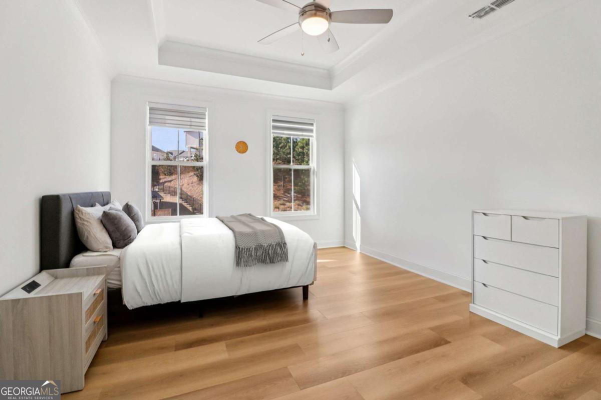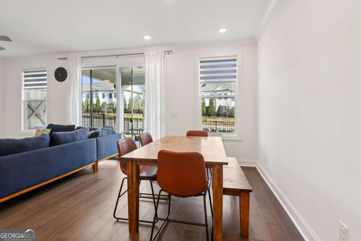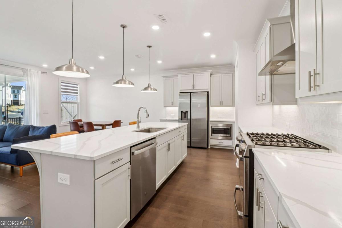 Welcome home to this beautifully maintained Brittany Plan, one of the community's most sought-after layouts, perfectly positioned as a desirable front-facing owner's unit. This two-story townhome showcases the stylish Cool Stone interior package, featuring light gray cabinetry and durable hard-surface flooring throughout, ideal for both everyday living and entertaining. The open-concept kitchen is designed to impress with quartz countertops, stainless steel appliances, and a spacious center island that flows seamlessly into the inviting family and dining areas. Step outside to your private, fenced backyard complete with privacy panels and a covered porch, perfect for relaxing or hosting guests. Upstairs, all three bedrooms feature upgraded hard-surface flooring for a modern, low-maintenance touch. The owner's suite offers a tray ceiling, dual quartz vanities, and a large tiled shower, creating a comfortable retreat. Two additional bedrooms share a well-appointed hall bath, while the conveniently located upstairs laundry room simplifies daily routines. Residents enjoy access to resort-style gated amenities, including a pool with a covered cabana, grilling stations, outdoor dining areas, a fireplace, and community fire pits. Ideally located in unincorporated Gwinnett County, this home is just minutes from Sugar Hill, Suwanee Town Center, and Buford, with easy access to shopping, dining, and major interstates.Seller offering a $5,000 concession. Ask about incentives with preferred lenders at Rocket.