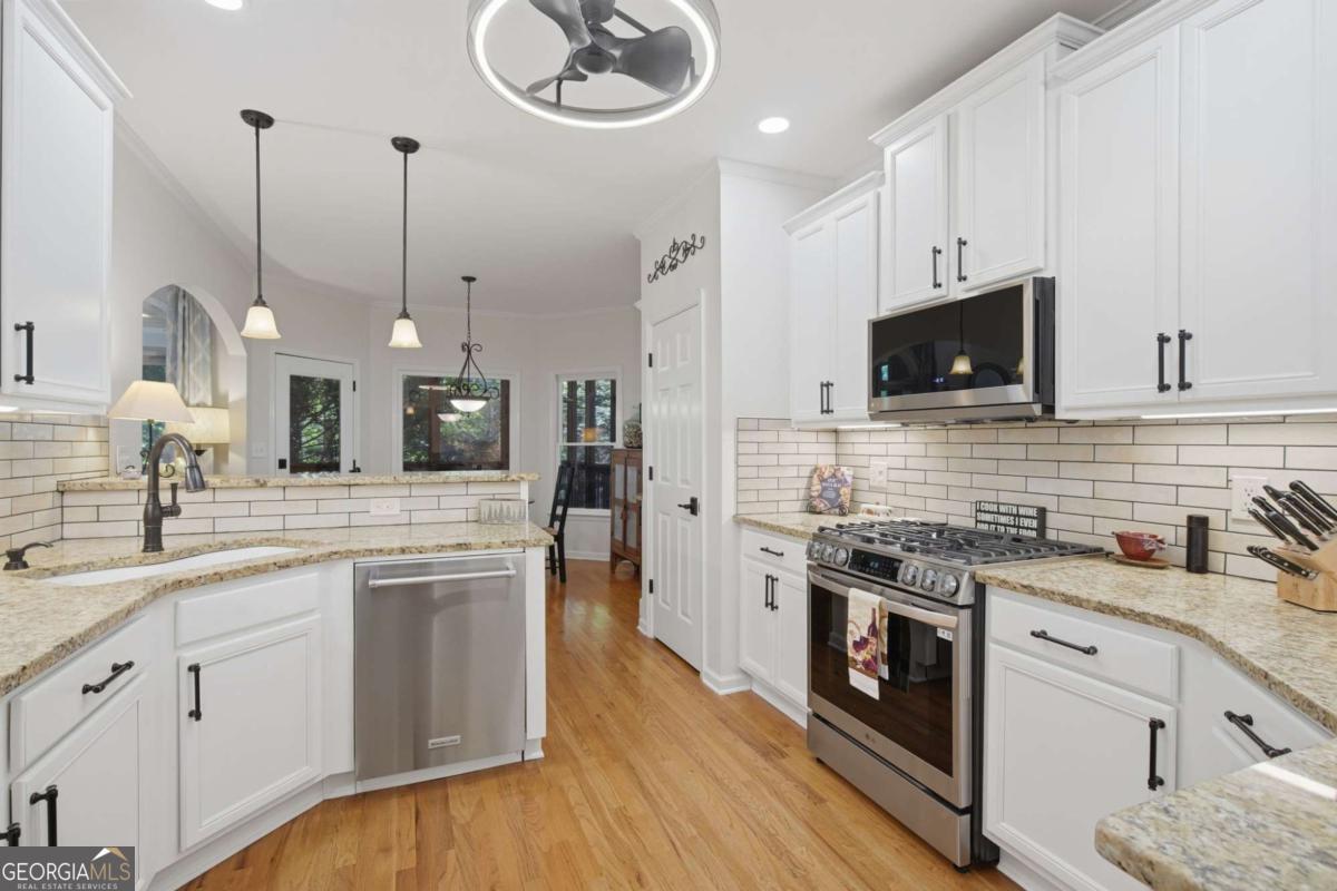 Welcome to the highly desirable High Gables community-perfectly situated just minutes from Hwy 400, shopping, top-rated schools, Lake Lanier, and scenic hiking trails. This beautiful neighborhood is known for its charm, convenience, and exceptional amenities, including sidewalks throughout, swim and tennis, pickleball and basketball courts, and a playground. Positioned on a spacious corner lot, this home offers fantastic outdoor living with a landscaped yard and an enclosed deck-ideal for relaxing or entertaining year-round. Inside, you'll find a thoughtfully designed ranch-style layout featuring an open floor plan and recently updated kitchen. Elegant arched entryways create a seamless flow between living spaces. The oversized primary suite is oversized with an updated primary bath and is situated on one side of the home, while two additional bedrooms are located on the opposite side for privacy. The finished terrace level adds even more versatility, complete with an additional bedroom, full bathroom, and a large storage area perfect for a workshop or hobby space. Don't miss the opportunity to become part of this welcoming and vibrant community-come see all that High Gables has to offer!