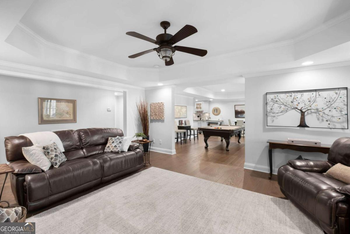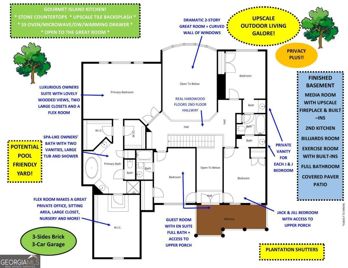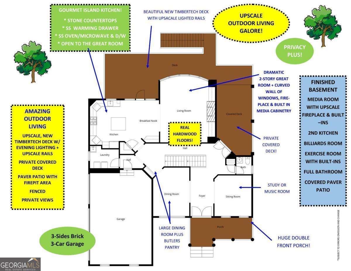EXECUTIVE HOME WITH UPSCALE OUTDOOR LIVING IN WOODMONT GOLF & COUNTRY CLUB! POTENTIAL POOL-FRIENDLY! FINISHED BASEMENT WITH A FIREPLACE AND A SECOND KITCHEN! THOUSANDS IN IMPROVEMENTS! Welcome to 404 Greyfield Drive, a beautifully maintained 4-bedroom, 4.5-bath home nestled in the heart of the sought-after Woodmont Golf and Country Club. This pristine, inviting property offers the perfect blend of comfort, style, and convenience, ideal for those seeking a peaceful suburban lifestyle with easy access to modern amenities. Step inside to discover a bright, open floor plan filled with natural light, designed for both everyday living and effortless entertaining. REAL HARDWOOD FLOORS GALORE! The spacious, open plan flows seamlessly from the SOARING 2-STORY GREAT ROOM WITH CURVED WALL OF WINDOWS into a well-appointed island kitchen featuring ample cabinetry, generous counter space, and upscale stainless steel appliances, including a warming drawer! This home features four generously sized bedrooms, including a relaxing primary suite, along with 4.5 well-appointed bathrooms. The private second-floor front porch is a lovely spot to enjoy a good book & a cup of coffee! One of the standout features of this property is the AMAZING FINISHED BASEMENT, complete with its own SECOND KITCHEN with dishwasher, oven/range, refrigerator, and more-ideal for multi-generational living, entertaining, or hosting family and friends. Don't miss the Exercise Studio with built-in cabinetry and a full bath. Step outside to enjoy premium outdoor living with durable Timbertech decking, upgraded rails with dramatic evening lighting, and an under-decking system that creates a dry terrace patio below, offering a shaded, all-weather space perfect for relaxing or entertaining year-round. Paver Patios including a Firepit Patio! The private backyard provides ample room for outdoor dining, play, or quiet evenings, while the home's well-maintained landscaping and 3-car garage enhance its overall appeal. Resort-Style Amenities await you at the Club! Award-winning Robert Trent Jones, Jr. Golf Course, 2 Restaurants, Work-out Room, Pro Shop, 2 Pools, 10 Tennis Courts, Tennis Pro Shop, Pickleball, and so much more! Memberships are available for sale at the Club - some amenities are only available to members. Experience the lifestyle you've always dreamed of! CREEKVIEW HS DISTRICT! MOVE IN READY!!!