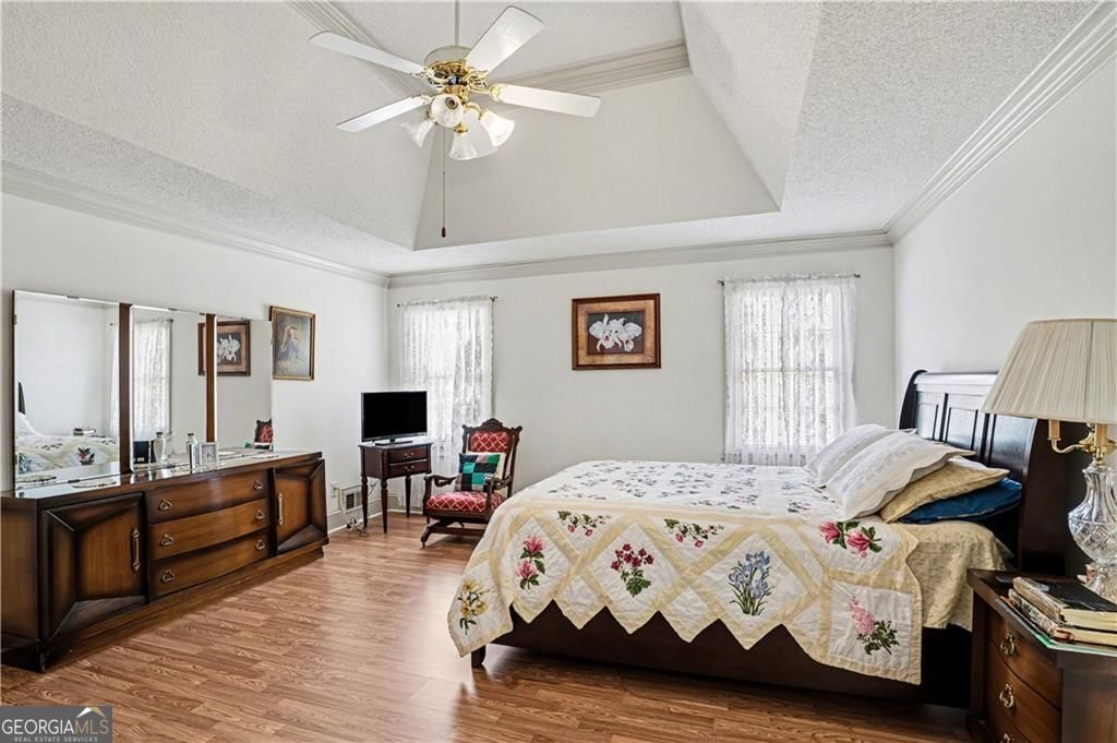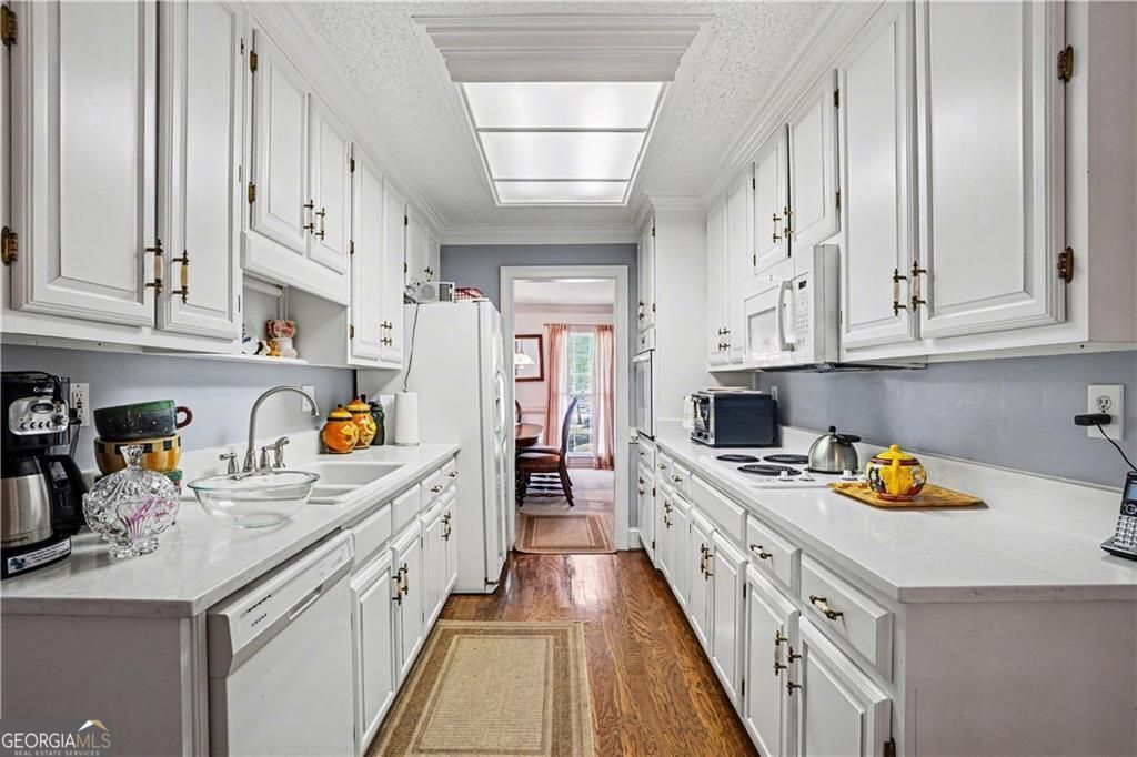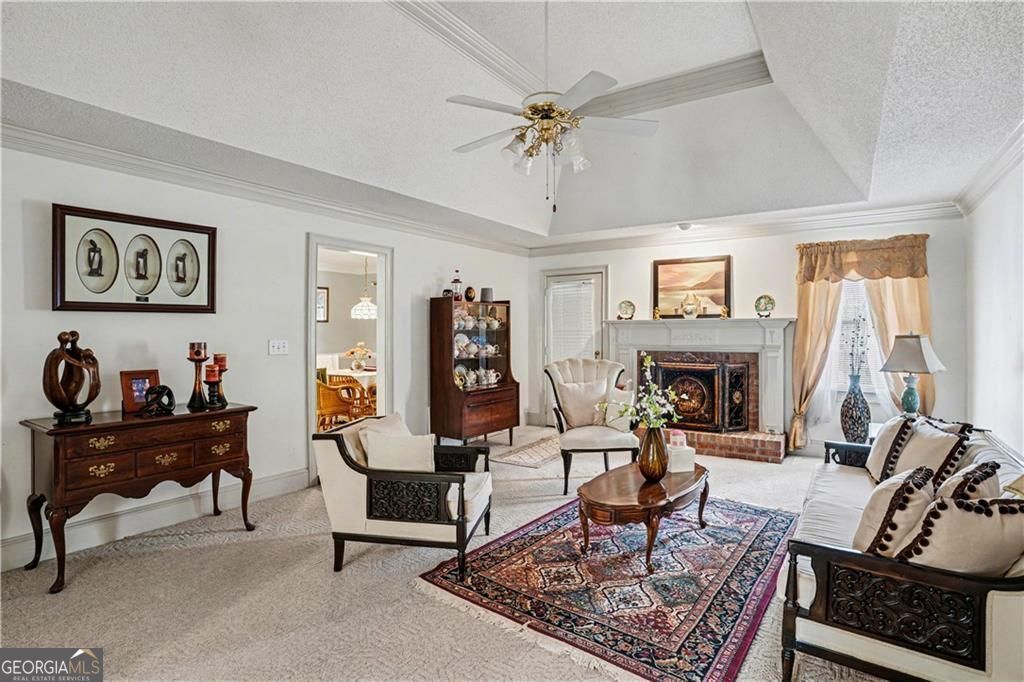 Welcome to this beautifully maintained ranch- style home perfectly situated on a spacious corner lot in a serene Conyers neighborhood. Step through the grand entrance into a flowing open layout featuring a formal dining room and an elegant family room with a tray ceiling and cozy fireplace- ideal for entertaining. The bright kitchen boasts white cabinetry, white appliances, hardwood floors, and a charming eat-in breakfast area. The split bedroom design offers two generous guest bedrooms with a full bath and a luxurious primary suite featuring his and hers closets, double vanities, a jacuzzi tub, and a separate shower. Enjoy year round relaxation in the enclosed sunroom, accessible from both the living room and primary suite, or unwind on the private outdoor deck. Additional features include pristine cream carpet throughout, a large laundry room, and a two car garage. Sellers are motivated - Home sold as is.