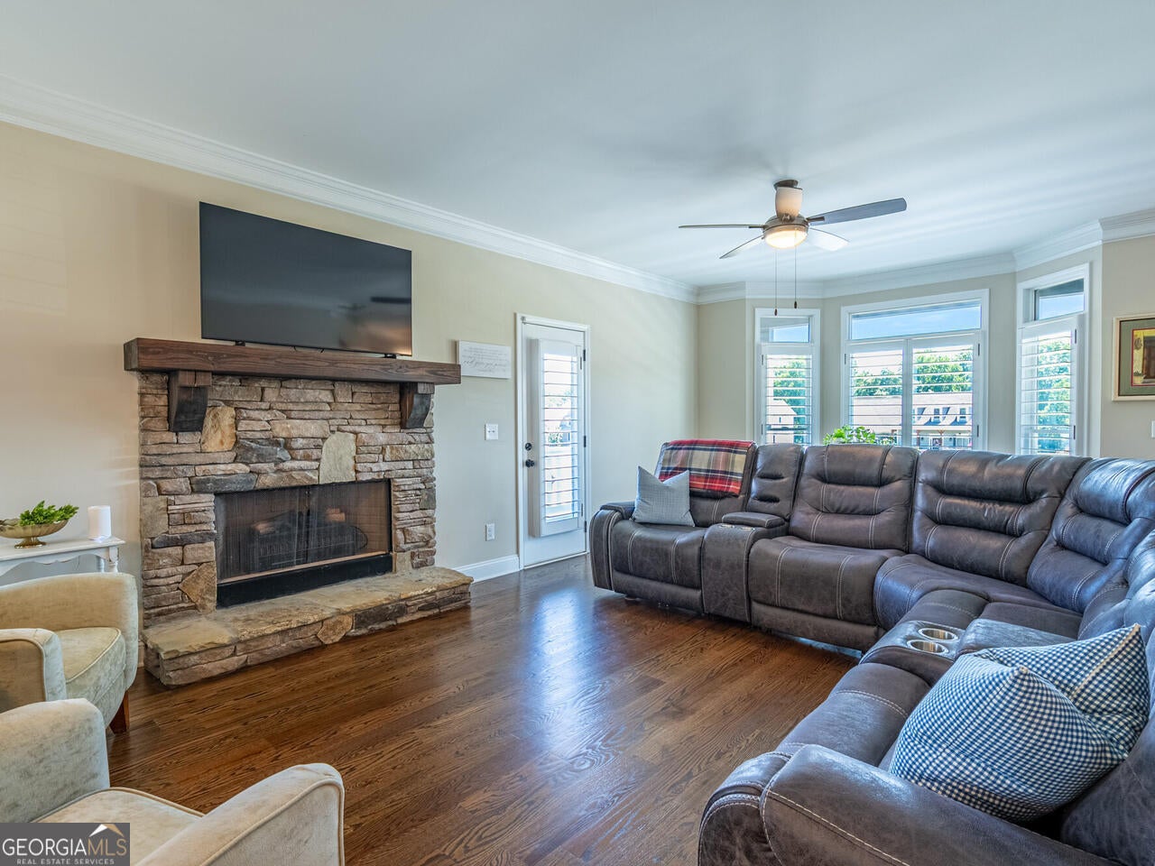 Welcome to this stunning, better than new 5 bedroom 4.5 bath home in the sought after Shaw Woods community. This spacious and thoughtfully designed home offers plenty of flexibility to meet all your needs. Step inside to discover beautiful hardwood floors, custom plantation shutters on the main and upper levels, and tinted front windows for added comfort and privacy. The heart of the home features an open living area that flows seamlessly into a well appointed kitchen and dining spaces, perfect for both everyday living and entertaining. The kitchen offers granite countertops, a walk in pantry, built in drawer microwave and added storage space within the island. Enjoy sipping coffee while sitting on the screened porch just outside the kitchen. The luxurious master suite boast a custom walk in closet and a spa like bath, offering a true retreat. Upstairs you will find four spacious bedroom, two Jack and Jill bathrooms with pocket doors, and the laundry room. The terrace level features LVP flooring, a full bathroom and an additional space for a teen suite or game room. Built with durable Hardie board siding, this home combines low maintenance living with timeless curb appeal. Enjoy the convenience of being within walking distance to the community pool and Etowah River access. This is more than a home; its a lifestyle.