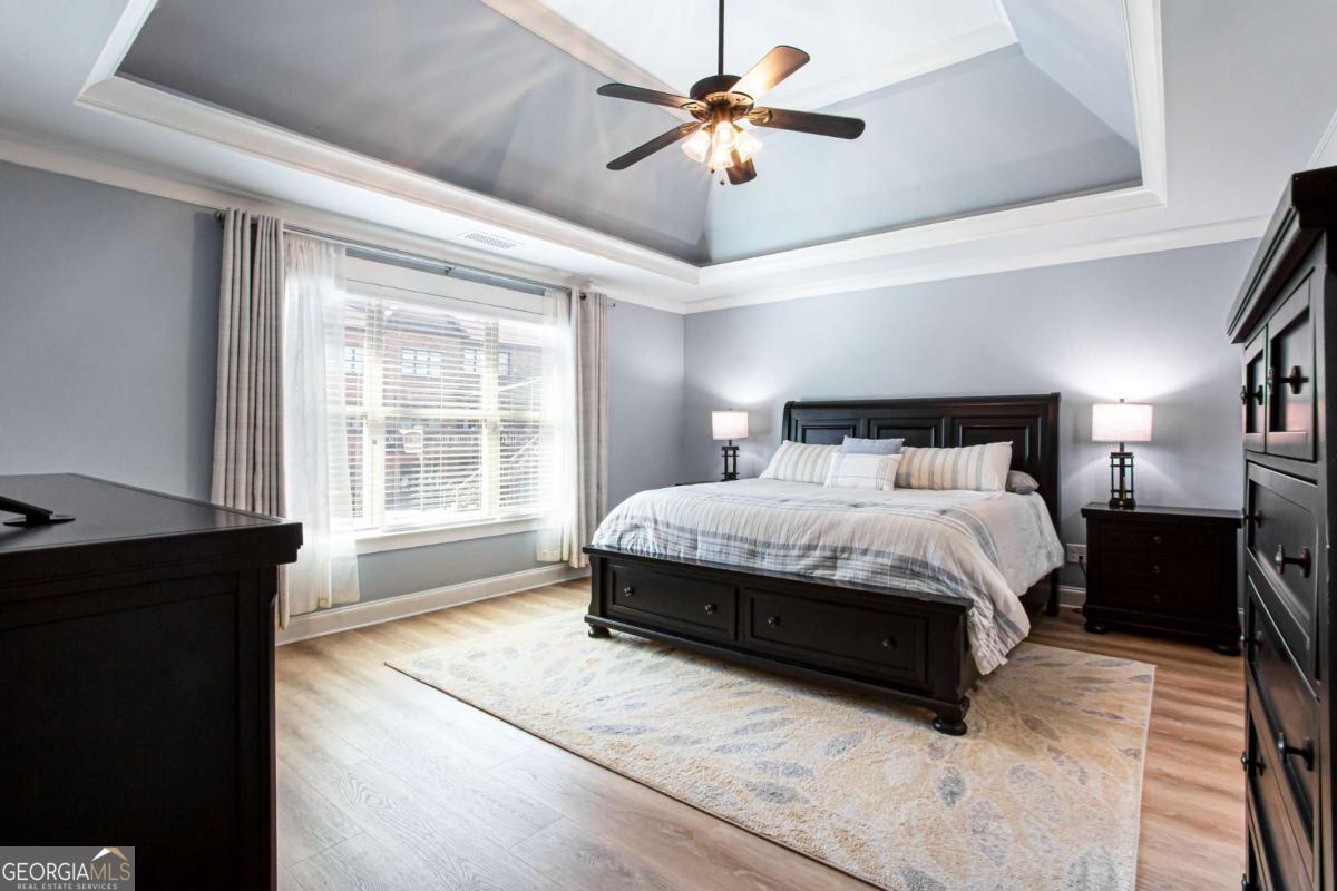 Best Price in a Highly Sought After area!!! Welcome home to this stunning property located in the Seckinger High School District! This 6 bed, 5 bath home with 3 car garage is designed for both comfort and style. This exceptional home truly has it all. Don't miss your chance to make it yours! All Hvac units 1.5yrs old. Water heater 3.5yrs old. Roof only 10yrs old. Featuring a true chef's kitchen at its center, complete with premium appliances, a sleek granite island, a commercial-grade gas range, and an impressive 64-inch separate refrigerator and freezer-perfect for everyday living and entertaining. The main level offers a seamless flow between the dining room, spacious living room, and a flex space ideal for an office. A convenient main-level bedroom and full bath provide the perfect setup for guests or multi-generational living. Upstairs, unwind in your private primary suite featuring an oversized shower, relaxing soaking tub, and two generously sized walk-in closets. Three additional bedrooms, two full bathrooms, and a dedicated laundry room provide plenty of space and convenience for everyone. In addition, a very large and open bonus room is perfect for all your many needs! The finished basement is built for entertaining, offering a stylish wet bar, expansive media area, open game room, plus an additional bedroom and full bathroom for added flexibility. Step outside to enjoy your own backyard retreat with a custom garden, charming playground, and open deck for upper and lower entertaining-perfect for relaxing or hosting gatherings. Pool table stays with the home! All appliances included.