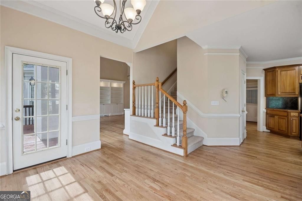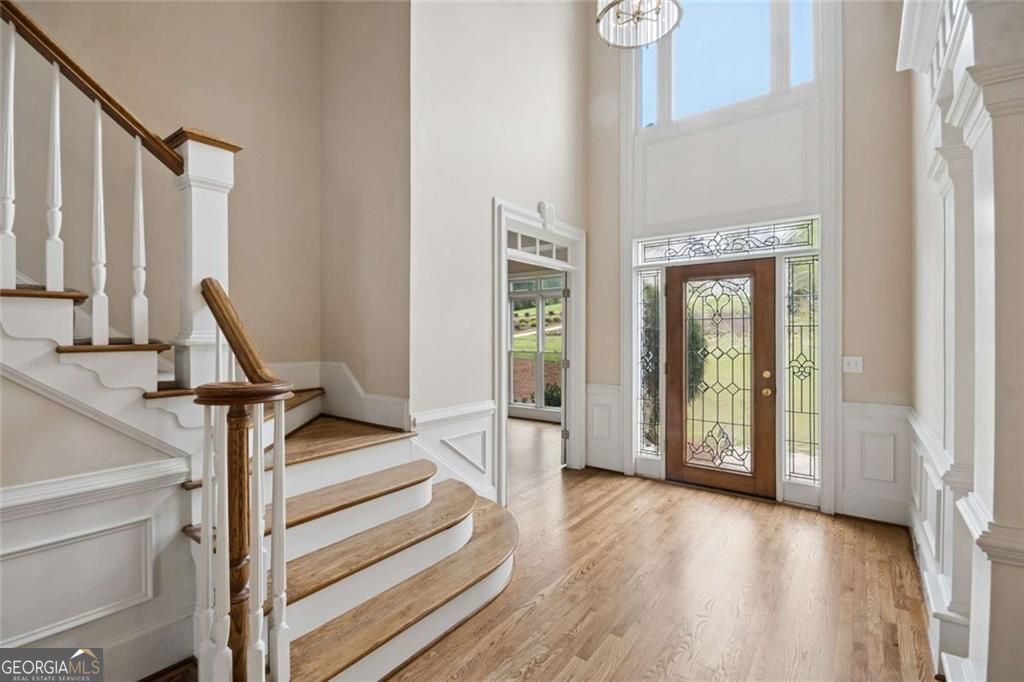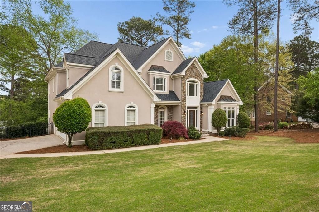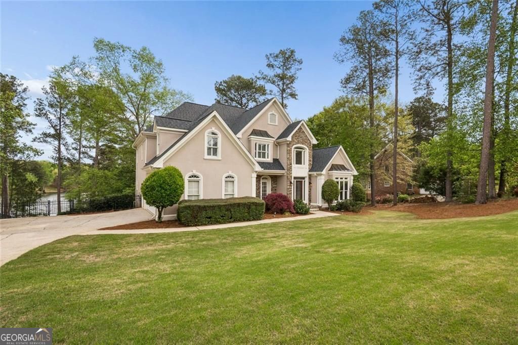 Get ready view this amazing lake front home! The floor plan, open and airy followed by a two-story entry foyer and a two-story family room accompanied by a catwalk that overlooks both areas. The primary bedroom is spacious, displaying a tray ceiling as well as a large sitting area overlooking Lake Joseph. The primary bathroom features a double vanity with a jetted garden tub; walk in closet, roomy and gratifying. The first floor also has a powder room for guests. Two story family room features bookcases and stack stone gas fireplace. This room also gives a breathtaking view of the lake. The kitchen comes with plenty of cabinets, and a gas cooktop. Breakfast area provides lots of natural light and a fantastic view of the fenced backyard and once again, the lake! Dual stairways are present here and lead to the upper floor followed by three additional bedrooms. Two bedrooms share a Jack & Jill bathroom, the other bedroom across the hall has its own separate bathroom. This room has a view to the lake! All of this sits on an unfinished basement. The basement is ready for you to add your special touch.