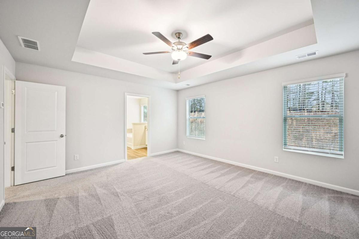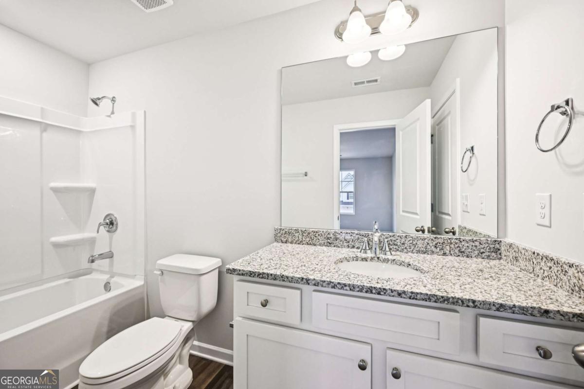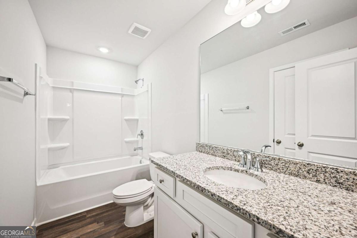 USDA-ELIGIBLE COMMUNITY. Qualified buyers may qualify for 100% financing and closing cost assistance through approved lender programs. Introducing the Downey! Exquisite 4 bedroom floorplan ***READY IN JUNE*** at The Hills at Cedar Creek, expertly crafted by Direct Residential Communities. Located in a resort-style swim and tennis community, this thoughtfully designed home blends comfort and sophistication with access to exceptional neighborhood amenities. Step into a welcoming two-story foyer that opens into a spacious, open-concept living area featuring 9-foot ceilings and ambient LED disc lighting. The main level includes a private guest bedroom with a full bath-perfect for visitors or multi-generational living. The gourmet kitchen is a showstopper, equipped with a large center island topped with granite, 36-inch shaker-style cabinets, a classic tile backsplash, and a sunlit breakfast area that flows effortlessly into the cozy family room with a warm fireplace centerpiece. Just off the breakfast nook, enjoy outdoor dining or relaxation on the concrete patio, overlooking your private backyard. Vinyl plank flooring and a silent flooring system ensure both style and serenity throughout the main level. Upstairs, the owner's suite is a peaceful retreat, offering a spacious sitting area, dual closets, and a luxurious en-suite bath with dual vanities, a walk-in shower, and a garden tub set beneath a charming window. Two additional bedrooms share a full bath with dual sinks, and a conveniently placed laundry room completes the upper level. Additional highlights include smart lock keyless entry, a 2-car garage with extended driveway, and easy access to sidewalks that wind through this prestigious community. Discover refined living in the Downey-schedule your personal tour today.