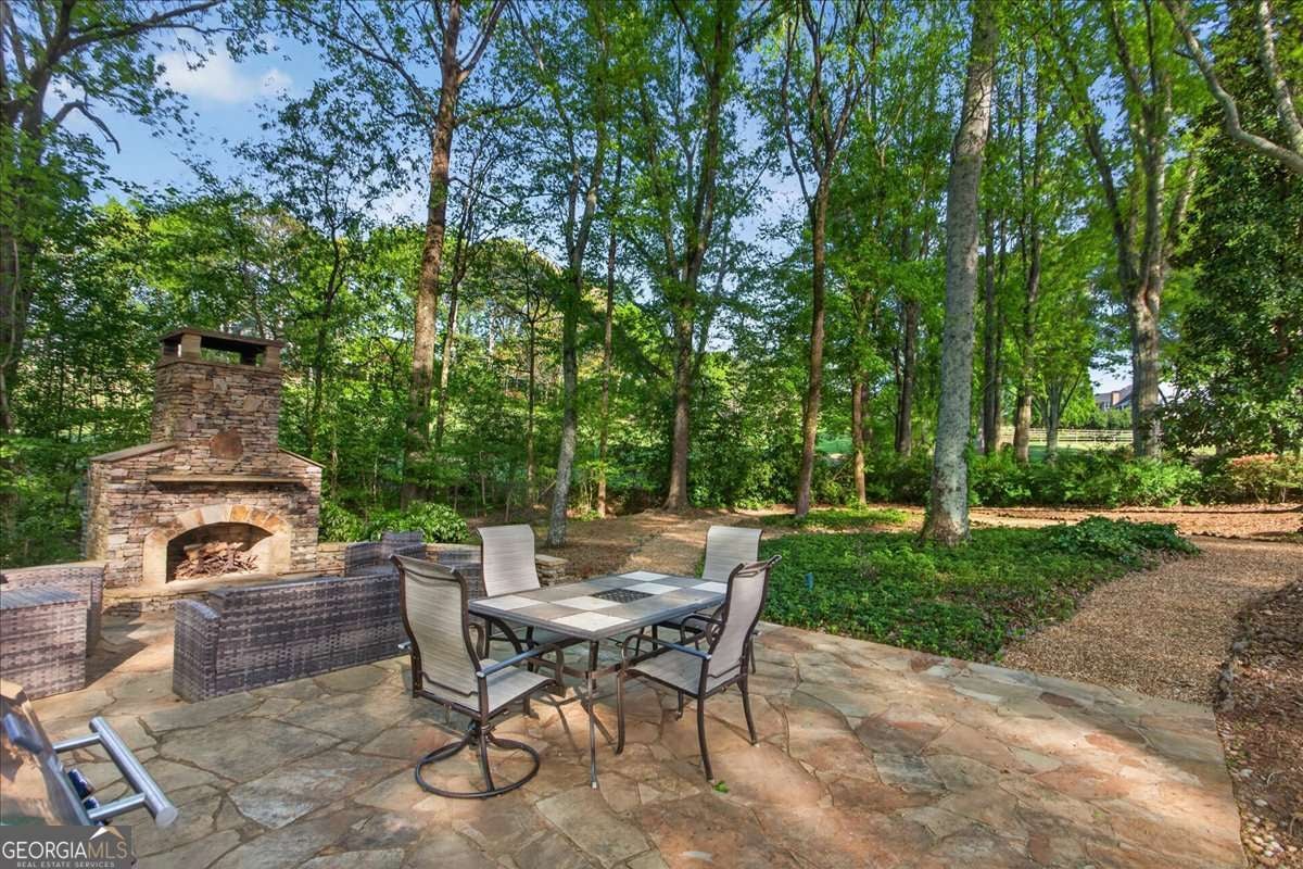 Welcome to this stunning golf course estate located in the highly sought-after Bradshaw Farm subdivision. Perfectly positioned on a beautifully landscaped lot, this 5-bedroom, 4.5-bath home offers luxury living both inside and out-including your very own private putting green. From the moment you arrive, you're greeted by a striking custom iron front door that opens into a grand two-story foyer with a sweeping curved staircase-one of two staircases with iron banisters. This home also features beautiful brand-new hardwood floors throughout the main and upper levels. There is a formal living room/office adorned with crown molding, along with an elegant dining room showcasing a large bay window and custom trim work. At the heart of the home is a spacious chef's kitchen designed for both everyday living and entertaining. Highlights include granite countertops, abundant prep space, a cooktop (convertible to gas), double ovens, soft-close drawers with built-in organizers, touchless faucet, a workstation, and a breakfast bar. The adjoining breakfast room offers serene views of the backyard oasis. The inviting two-story family room features a double-sided fireplace that also warms a bright and airy sunroom/den-perfect for relaxing year-round. Step outside to enjoy the screened porch, overlooking the incredible outdoor space. Upstairs, you'll find the expansive primary suite offering a private sitting room with fireplace and a fully updated spa-like bath complete with granite countertops, a luxury tile shower, jetted tub, double vanities, a makeup station, and a spacious walk-in closet. Three additional oversized bedrooms complete the upper level, including one with an en-suite bath and the other two with a Jack-and-Jill bathroom, each beautifully updated with granite and custom tile. The fully finished terrace level is an entertainer's dream, featuring a bedroom, full bath, custom bar, game room, and a large family room. There is also abundant storage space, offering plenty of room for organization, hobbies, and seasonal items. The backyard is truly a showstopper-designed like a private park with a custom large putting green, an outdoor fireplace with patio seating, a covered patio, beautiful lighting, and lush landscaping, all overlooking the scenic golf course. There is an irrigation system controlled by Wi-Fi, keeping this gorgeous yard looking perfect. It's an entertainer's dream and a rare feature that sets this home apart. Bradshaw Farm offers resort-style amenities including a pool, tennis courts, and golf, and is conveniently located near downtown Woodstock, Alpharetta, and Roswell, with access to highly rated schools. This exceptional home truly has it all-luxury, space, location, and unforgettable outdoor living.