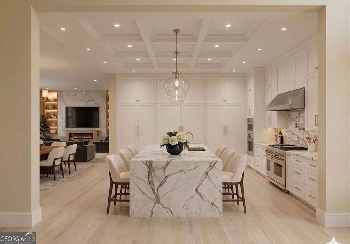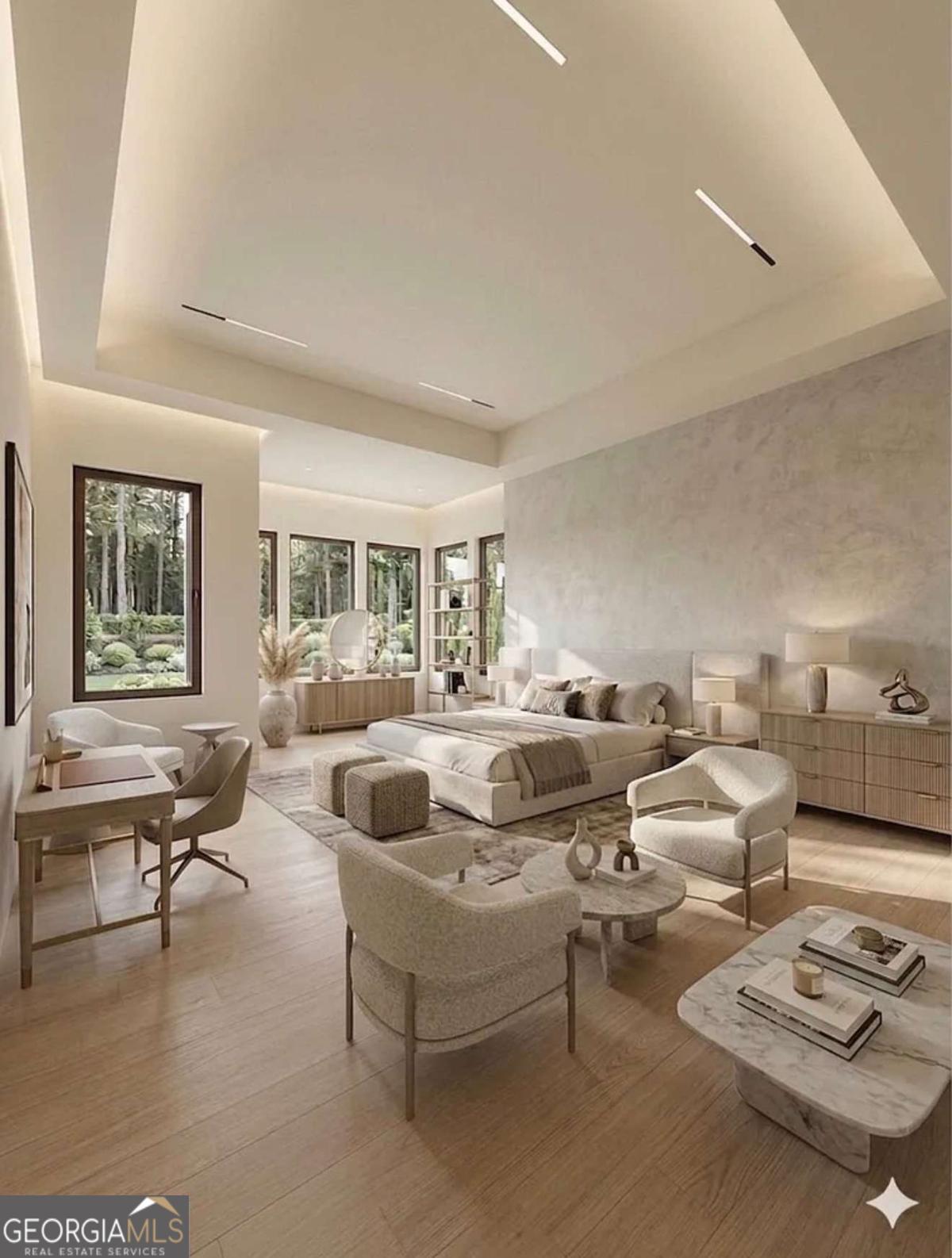 Before you ever walk through the front door, the rooftop terrace tells you everything you need to know about the intentionality of this build. Sitting above the garage, this spacious open-air entertainment deck is private, elevated, and finished with the same care as every interior space. It functions as a sky-level living room that simply does not exist elsewhere in this market. This home anchors a remarkable presale opportunity for a June 2026 delivery. Contract early to seize the unique advantage of personalizing the home's final aesthetic to your exacting standards. The exterior arrives with real presence. Inside, double-height ceilings, floor-to-ceiling windows, and wide-plank white oak floors anchor a great room. This room flows effortlessly into the dining area and chef's kitchen which features a large island, ceiling-height cabinetry, professional-grade appliances and a hidden butler's pantry. The main-level primary suite delivers at every turn: a massive bedroom, a dedicated study, and boutique-level his/her closets. The primary bath is finished in floor-to-ceiling marble with a freestanding soaking tub, a frameless glass shower, and double vanity. The terrace experience is further elevated by an adjacent vaulted game room. A space featuring a custom built-in wet bar and French doors that open directly to the outdoor living area. An outdoor kitchen, versatile pet spa or mudroom and a optional resort-style pool package, complete this thoughtfully designed floor plan. Located minutes from Camp Creek Marketplace, Trilith Studios, and Hartsfield-Jackson Airport, you are also near premier golf courses and less than 30 minutes from Woodward Academy and Atlanta proper. This is a stunning opportunity in the prestigious Le Jardin community before Summer 2026. Don't hesitate to contact the listing agent for immediate access to floor plans, specifications and final aesthetic to your exacting standards.