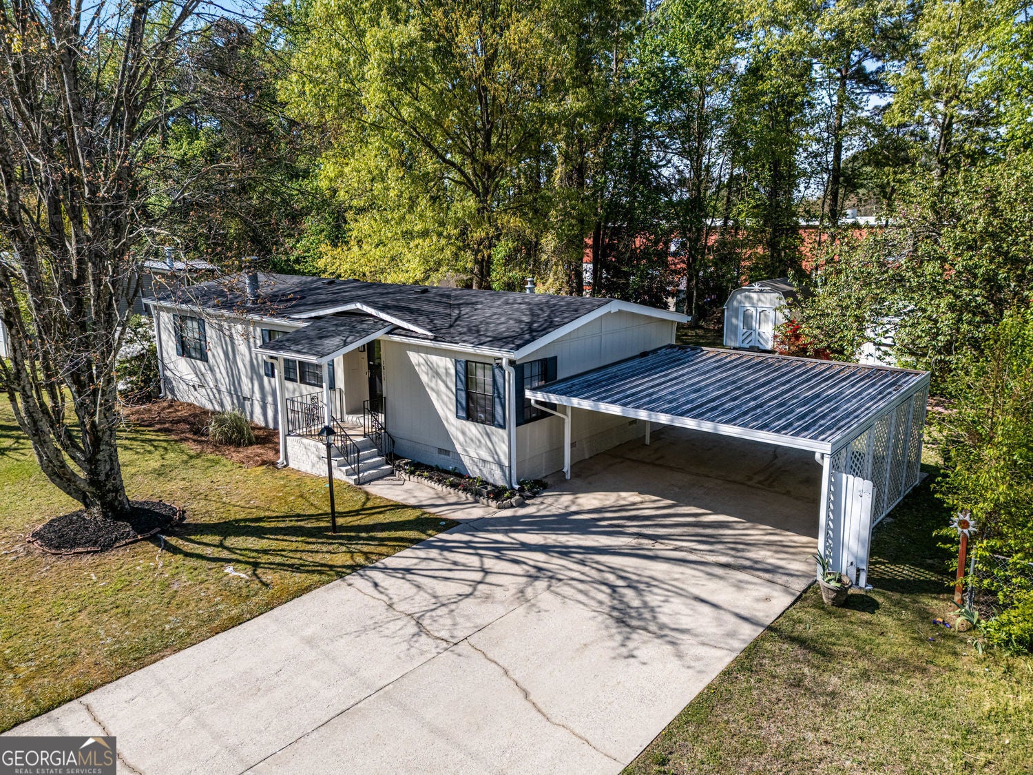 Welcome to this beautifully remodeled modular home. Roommate floor plan with 3 bedrooms and 2 full baths. This home has a Brand New Roof, all new Kitchen Appliances and Countertops, new LVP Flooring throughout, freshly painted and it looks amazing. 2 car covered Carport on a great flat lot. Step outside to enjoy the expansive covered back deck, ideal for hosting gatherings or relaxing outdoors. The established yard has beautiful mature landscaping. Plenty of storage with 2 sheds. Its a must see!! Can't miss the great Location!! Easy Access to 316, Sugarloaf Parkway, and I85. Conveniently located to Gwinnett Technical College. This home is a fantastic opportunity for first-time homebuyers or investors looking for a solid addition to their portfolio. Home does not qualify for FHA financing-90 day rule applies.