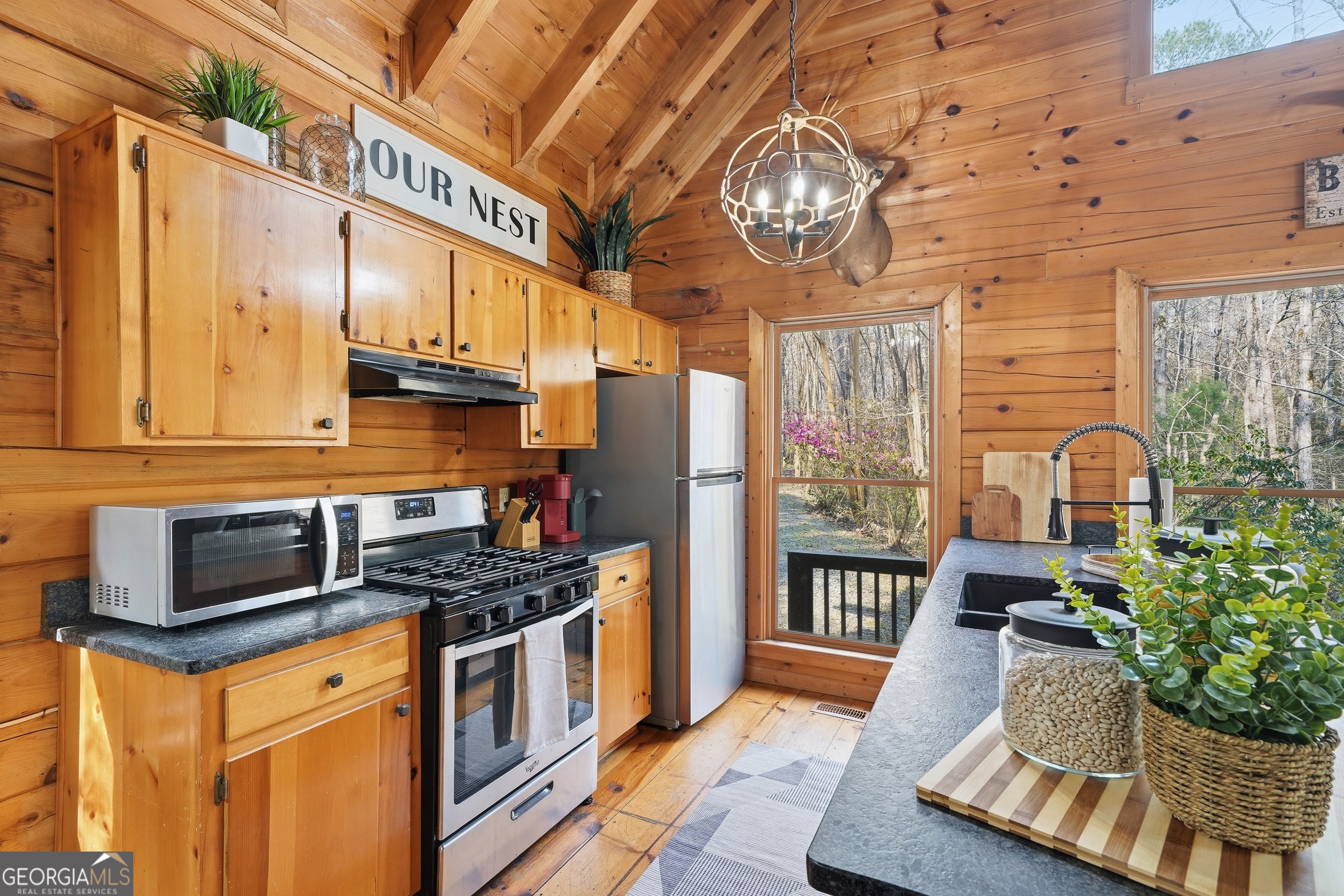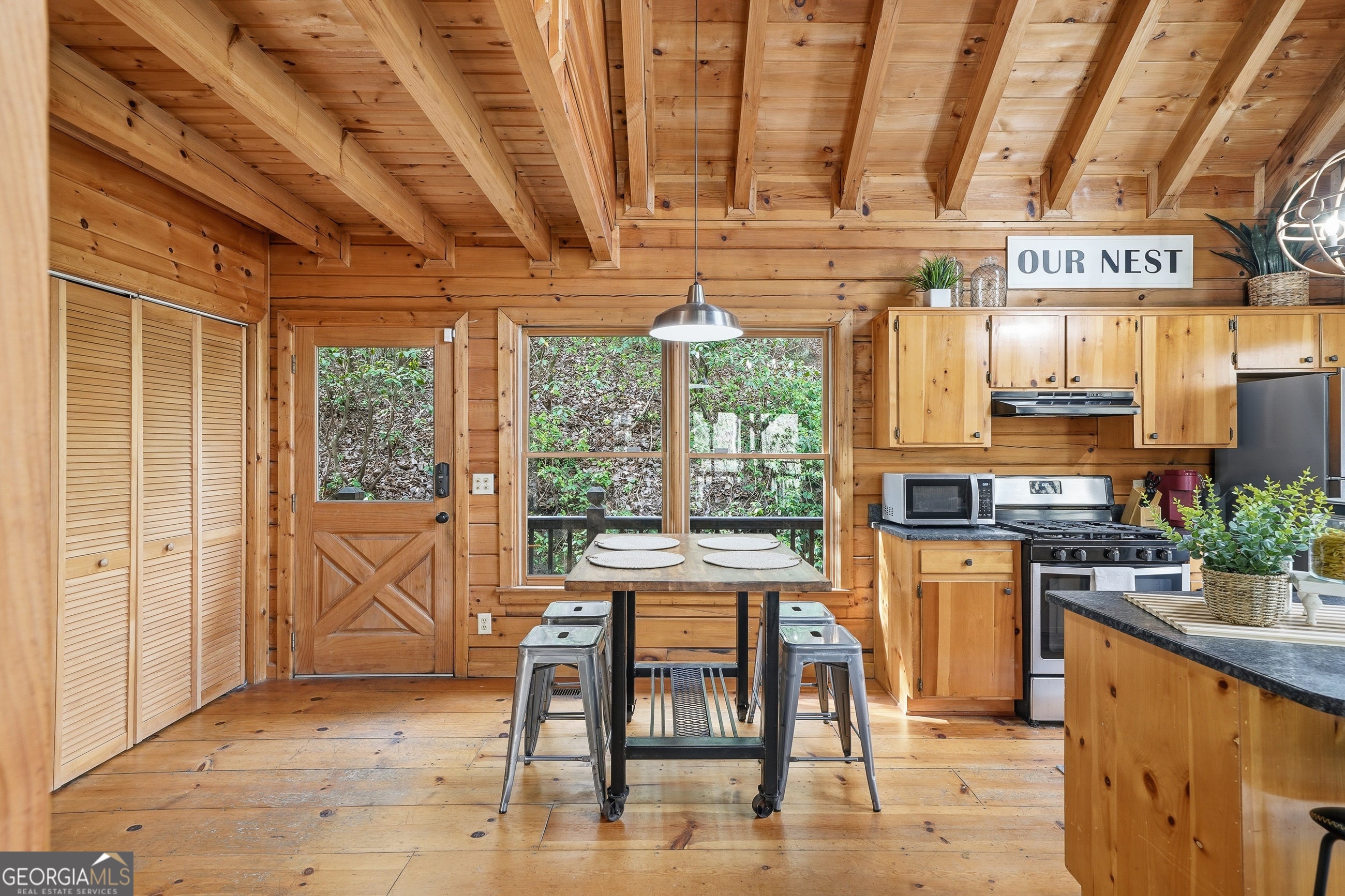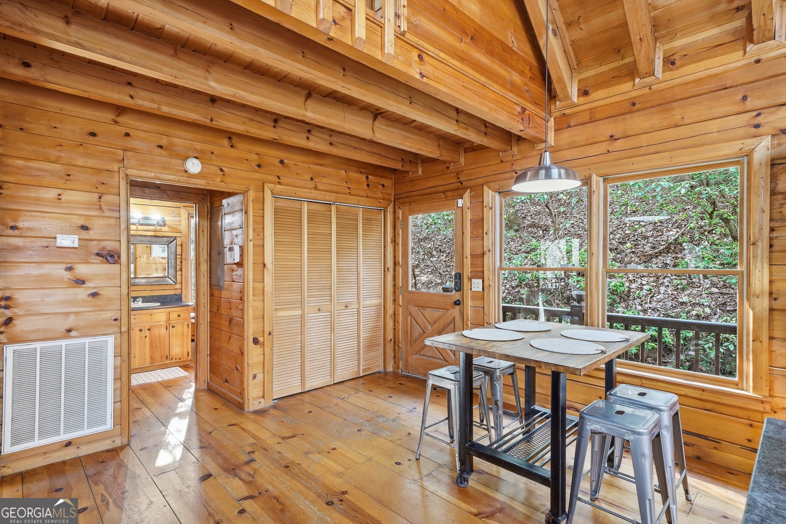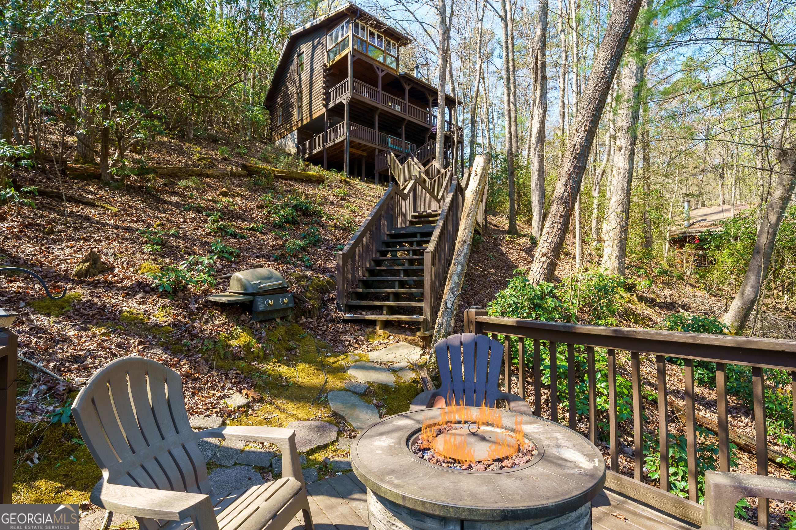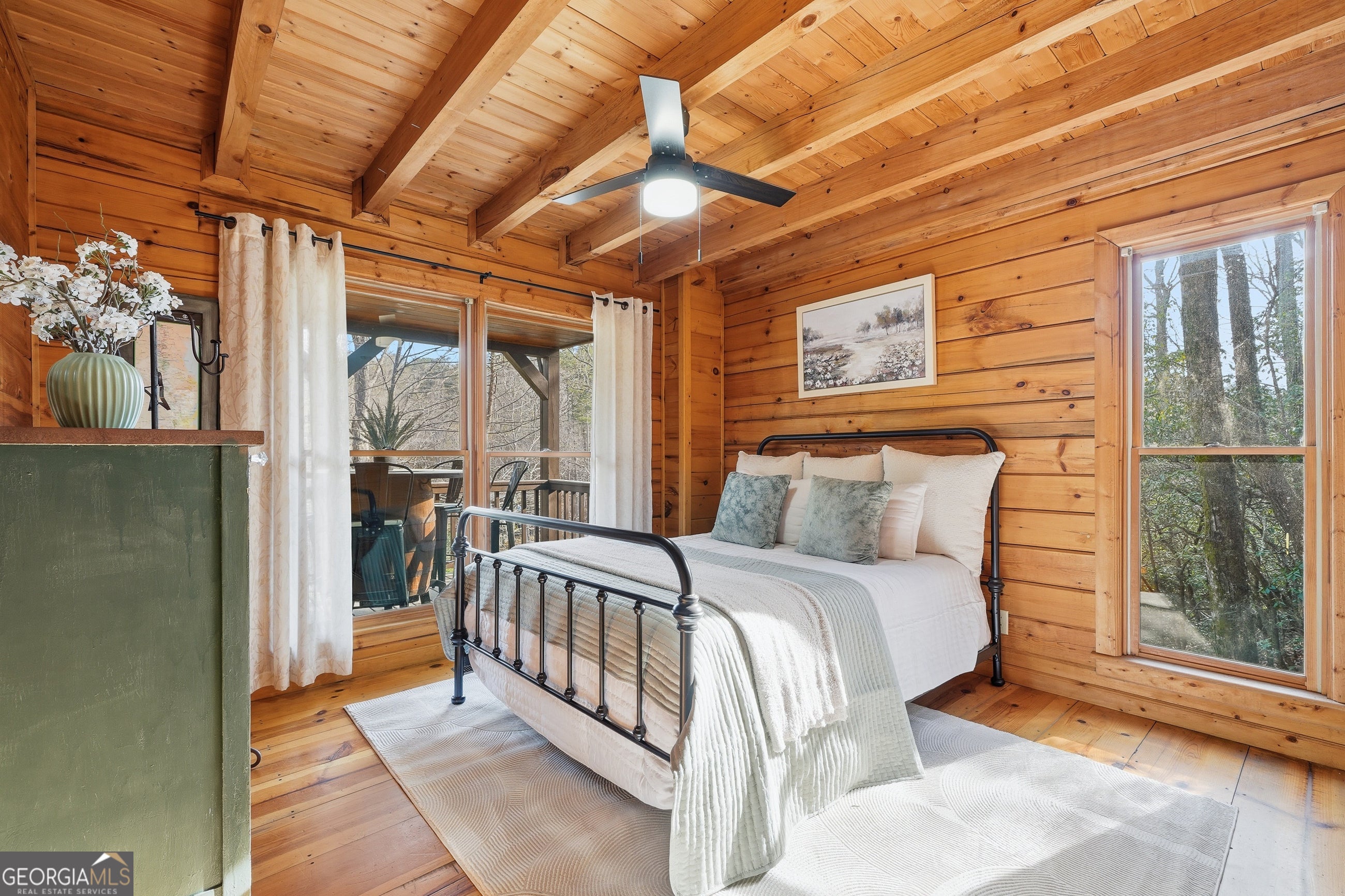Explore your own private sanctuary! Soaring above the shimmering glass-like surface of a private lake that remains full and vibrant through every season, this solid log cabin offers a rare connection to the water that never fades with the changing calendar. The heart of this sanctuary is the primary owner's suite, where a private sunroom with windows on three sides creates the magical sensation of floating among the emerald canopy of the North Georgia forest. This dedicated meditation space is perfectly positioned to capture elevated, panoramic vistas of the lake below, offering a peaceful start to your day as the mist rises off the water. Inside, the home unfolds with an open floor plan defined by towering vaulted ceilings and rich wood finishes that glow under the natural light pouring through massive windows. The seamless flow from the updated kitchen to the living area makes hosting effortless, while the warmth of the stone fireplace anchors the room with classic mountain character. Beyond the interior, multiple levels of outdoor living space-including two expansive decks and a dedicated lake patio-provide endless opportunities for entertaining or quiet reflection. Whether you are seeking a lucrative investment with excellent rental potential or a permanent escape just minutes from the charm of downtown Blue Ridge, this fully furnished retreat is designed for those who want to live in harmony with nature without sacrificing modern comfort. Reach out to schedule your private tour and witness the permanent beauty of this lakeside escape for yourself!