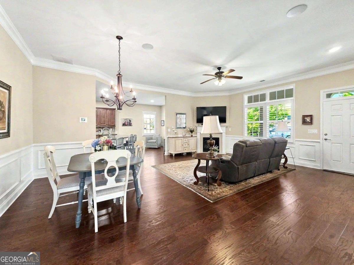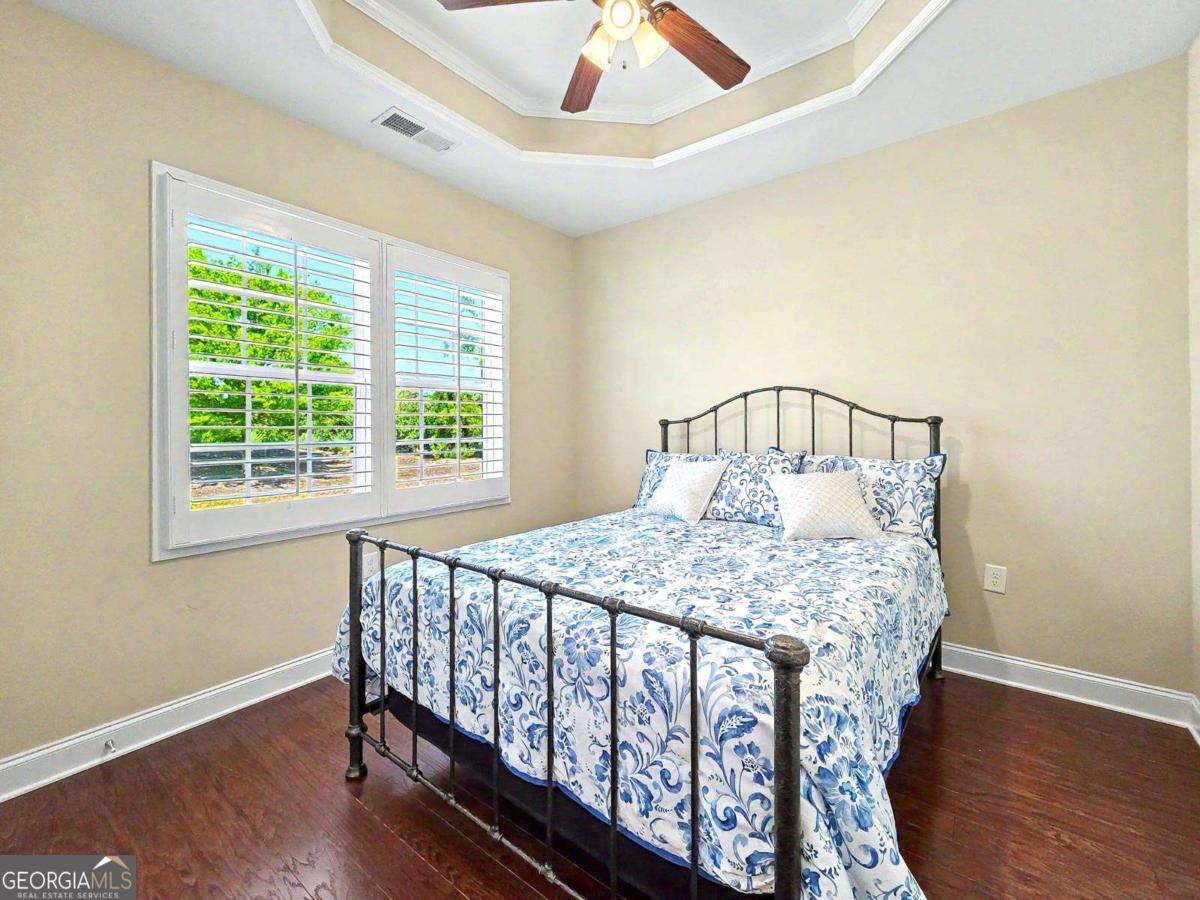 Welcome to easy, maintenance-free living in the highly sought-after Orchards at Park Ridge, a vibrant 55+ community. This beautifully maintained ranch-style condo offers true single-level living with thoughtful upgrades throughout. You'll enjoy the open and inviting floorplan. In addition to two spacious bedrooms this home offers a versatile office/den-perfect for working from home, hobbies, or a quiet retreat. The layout is enhanced by elegant plantation shutters, adding both style and privacy. Plus, you'll enjoy the beauty of hardwood floors, crown molding, wainscoting and the convenience of a central vacuum. The kitchen is a standout, complete with granite countertops, stained cabinetry, stainless steel appliances and a breakfast bar, offering both functionality and a modern touch for everyday living and entertaining. Step outside to your private screened porch with the Eze-Breeze vinyl enclosure system that shields from the weather while preserving an open, spacious sensation. It's the perfect place to enjoy your morning coffee or relax in the evenings while overlooking the peaceful surroundings year round. A bonus, this home includes a climate-controlled storage room on the upper level-ideal for keeping seasonal items organized and easily accessible. Residents of this welcoming community enjoy beautifully maintained sidewalks, recently upgraded landscaping, a clubhouse with a sparkling saltwater pool and a well-equipped fitness center, creating the perfect setting for an active and social lifestyle. Conveniently located near the Mall of Georgia and Interstates 85 & 985, this home offers the ideal blend of style, tranquility and accessibility. Don't miss your opportunity to enjoy comfortable, low-maintenance living in one of the area's most desirable active adult communities!