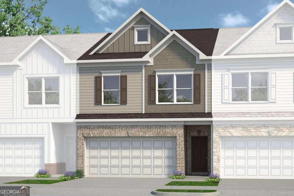 Move in Ready September 2026! The Ellison II plan by Smith Douglas Homes in the new community, Glendale Towns! This thoughtfully designed open-concept townhome seamlessly connects the kitchen, dining, and living areas, creating an inviting space ideal for both everyday living and entertaining. A private rear patio and yard extend the living space outdoors. The kitchen features timeless granite countertops and a center island with pendant lighting, offering both style and durability. Upstairs, the primary suite provides a relaxing retreat with a spacious bath that includes double vanities, a garden tub, separate shower, a walk-in closet, and a separate water closet. Two additional bedrooms, a full bath, and a conveniently located laundry room add comfort and functionality. With nine-foot ceilings on both levels and access to planned community amenities such as a pool with cabana, dog park, playground, and lawn maintenance, this home delivers easy, low-maintenance living. Photos representative of plan not of actual home. Agent is not onsite at present time. Please contact Becca Knight for further information and to set up an appointment.