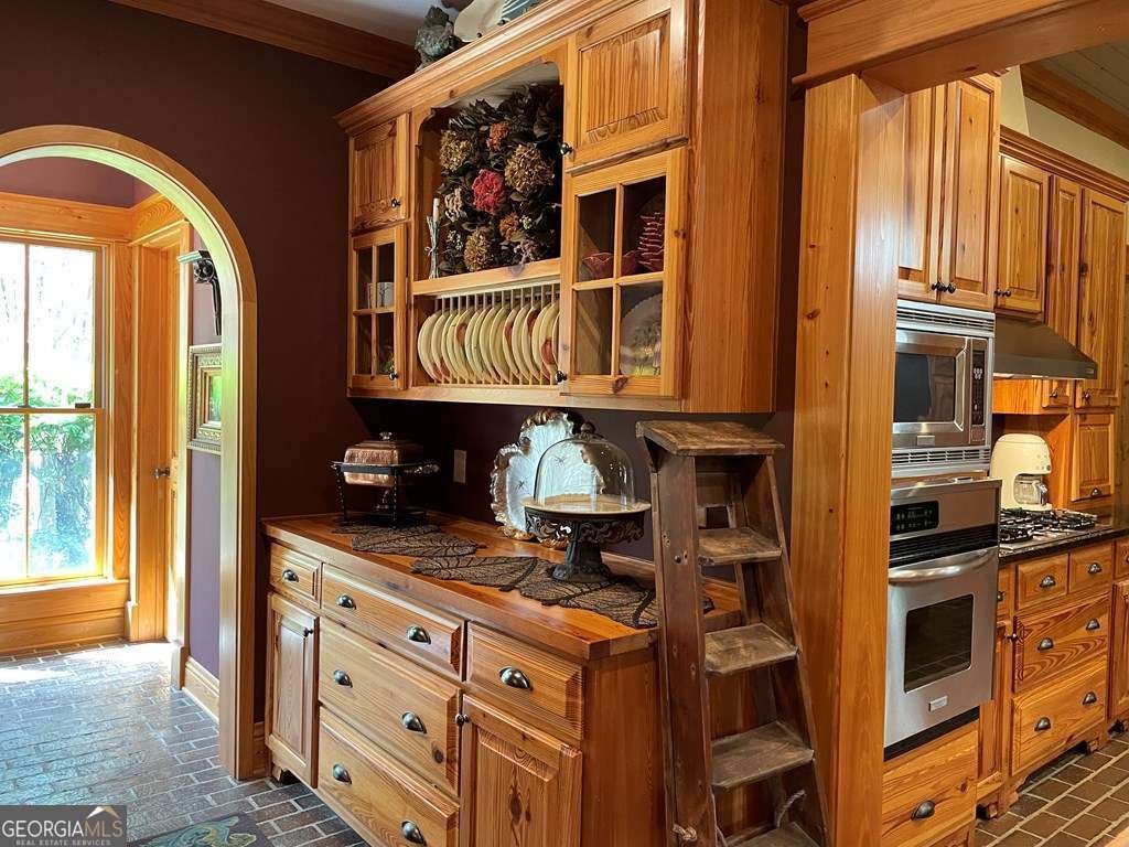 Step inside one of the finest homes in southeast Georgia. Breathtaking interior brick walls with two wood-burning fireplaces, heart pine floors throughout and specialty woods everywhere you look. Cabinets galore in almost every room including the mud room, butler's pantry, and office-nook. Exquisite finishes continue with arched openings into various rooms, including the entry/front door. Screen porches on multiple sides of the house with brick pavers on many interior/exterior floors. All solid core doors (interior and exterior) with high-end windows along with 10 foot ceilings and lots of storage throughout the home. Freshly painted cypress exterior with a three-car-garage and fenced in back yard. Adventure onto the sprawling property which includes metal storage buildings and a separate barn with enclosed fenced area for horses and other equipment/recreational uses. You don't want to miss seeing this home. You won't want to leave!