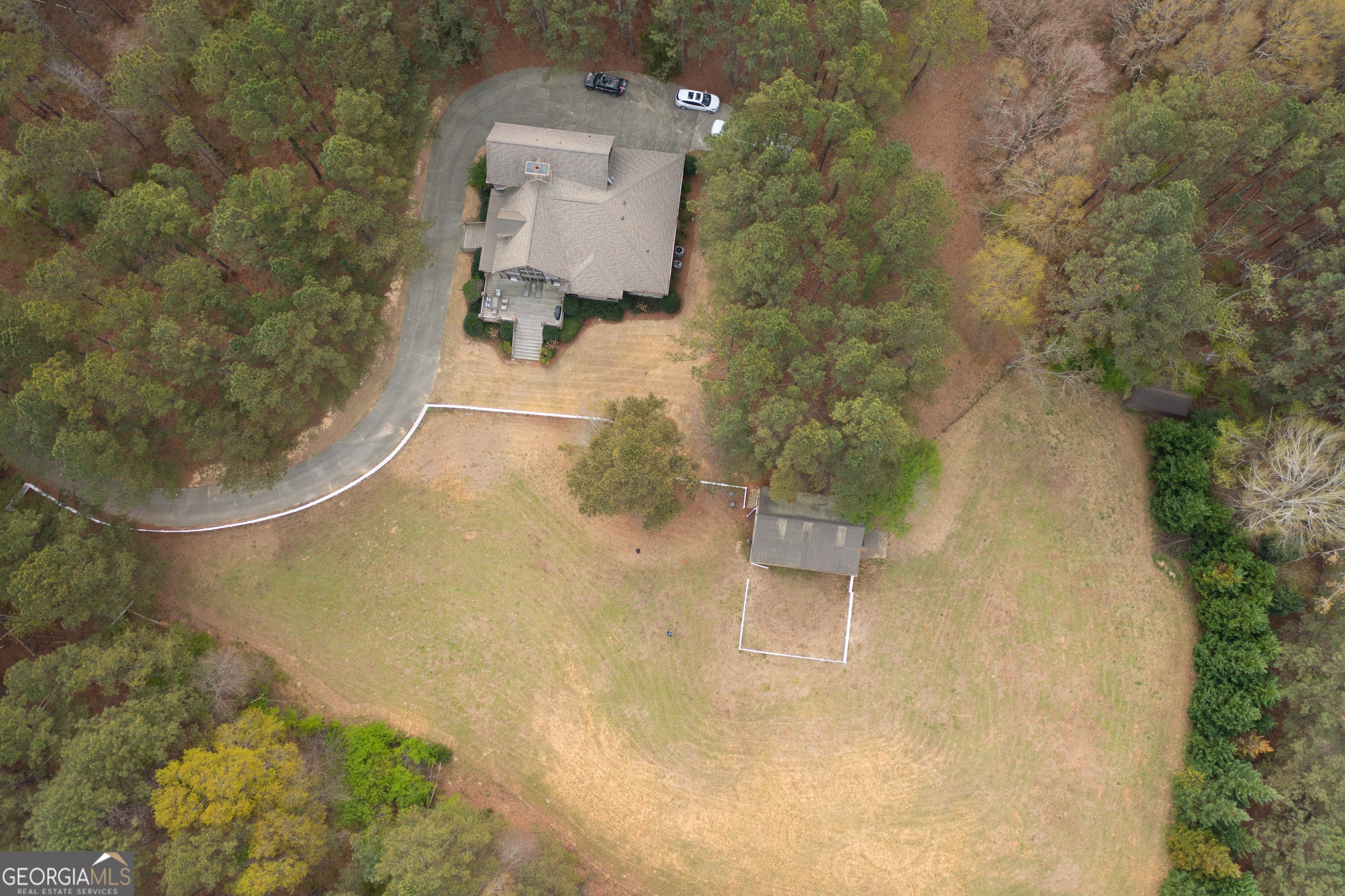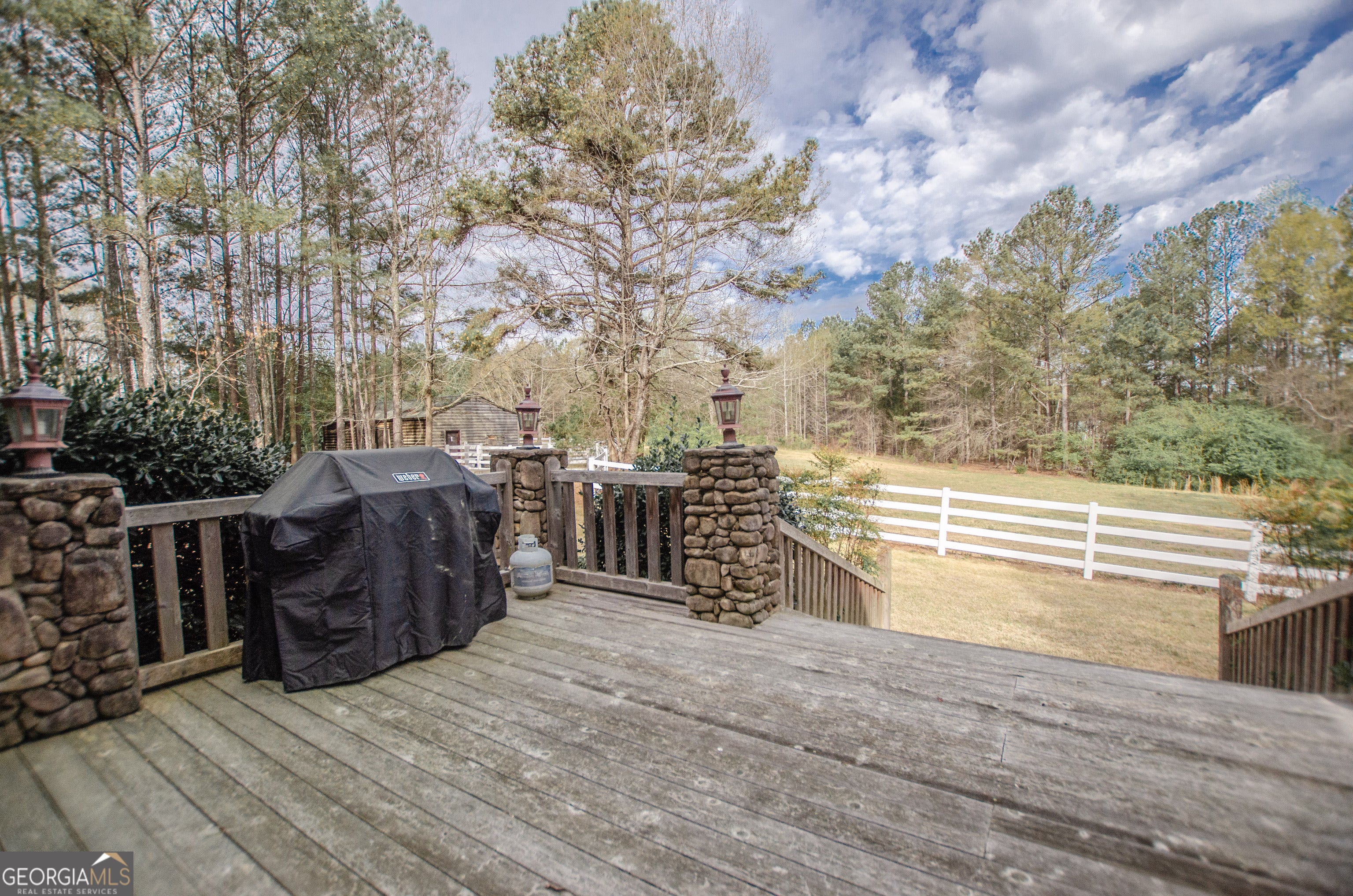 As you approach this beautiful 9+/- ac equestrian estate you are immediately captivated by its stunning grounds, pastures and impressive architecture. The exterior features meticulously crafted log construction and details that showcase the highest level of craftsmanship. The home is surrounded by professional landscaping and overlooks the winding drive, barn and pastures. Upon entering the farmhouse, you are greeted by a Great Room that exudes sophistication. The interior design is a seamless blend of classic and contemporary elements. High ceilings, chandeliers and a double-sided stacked stone fireplace. The kitchen is a chef's dream. It is equipped with top-of-the-line appliances, custom cabinetry, and granite countertops with stainless steel appliances. The kitchen is not only functional but also a stunning display of elegance and style. The living areas are designed to provide comfort and relaxation. Plush sofas, designer furniture, and exquisite d cor create a space that is both inviting and visually stunning. The Great room opens via French doors to the expansive porches that overlook the gorgeous pastures and adorable barn. The private Main Bedroom features hardwood floors, floor to ceiling windows overlook the beautiful grounds, 2 huge walk in closets, beautiful main bath with double vanities, whirlpool tub and separate shower. The two second floor bedrooms are designed to provide a serene and indulgent retreat. Luxurious bedding, hardwood floors, and large windows that offer breathtaking views of the surrounding pastures and woods enhance the sense of tranquility and comfort. The home will be sold fully furnished. This equestrian estate is gated and completely fenced with 4 board fencing and features a lovely 3 stall barn with outside wash rack and turnout paddocks. The Georgia International Horse Park, Black Shoals Park, dining and shopping are only minutes away. Escape the pressures of everyday life and immerse yourself in a world of comfort and beauty. Whether you choose to entertain guests in style or enjoy quiet solitude, this luxurious equestrian estate offers the perfect setting for a truly exceptional lifestyle.