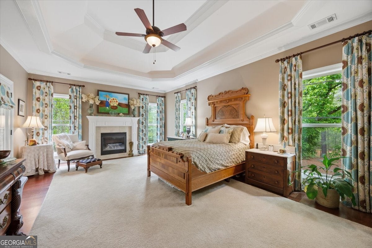 - Interior FeaturesDouble Vanity, High Ceilings, Master On Main Level, Pulldown Attic Stairs, Separate Shower, Tile Bath, Tray Ceiling(s), Two Story Foyer, Walk-In Closet(s)