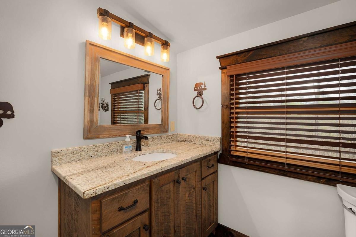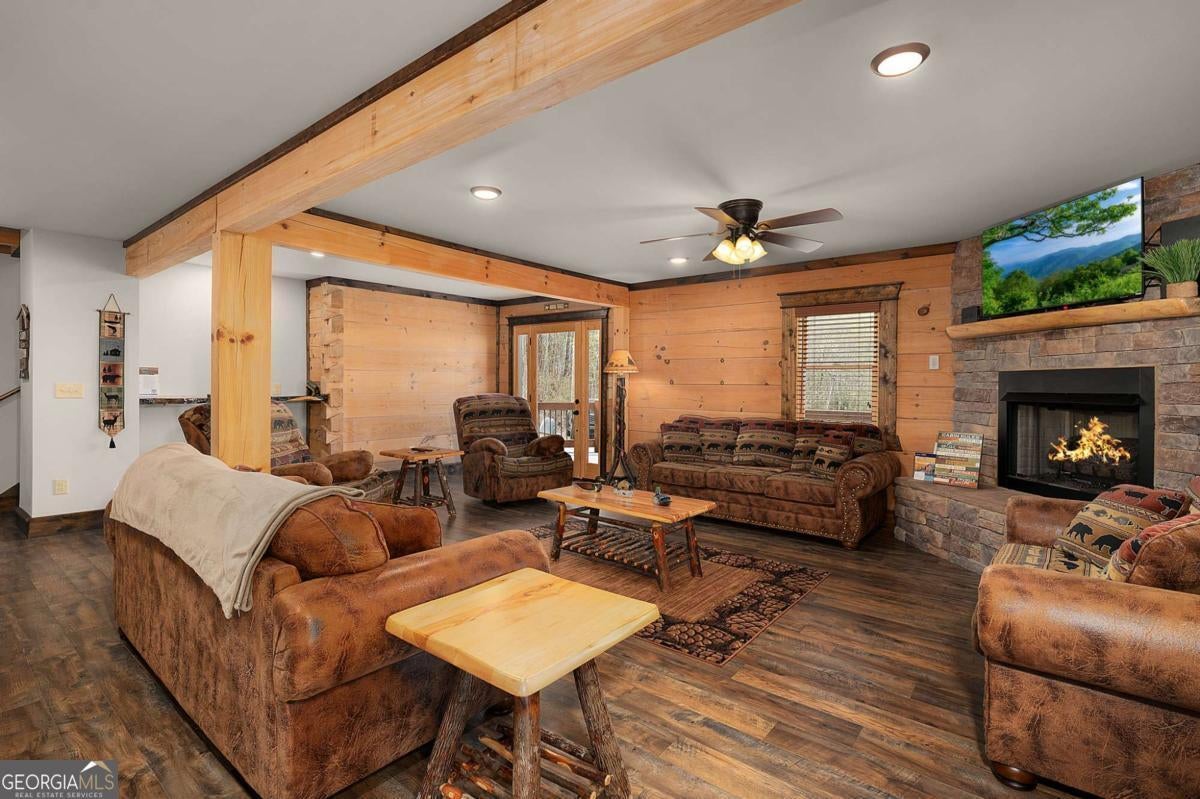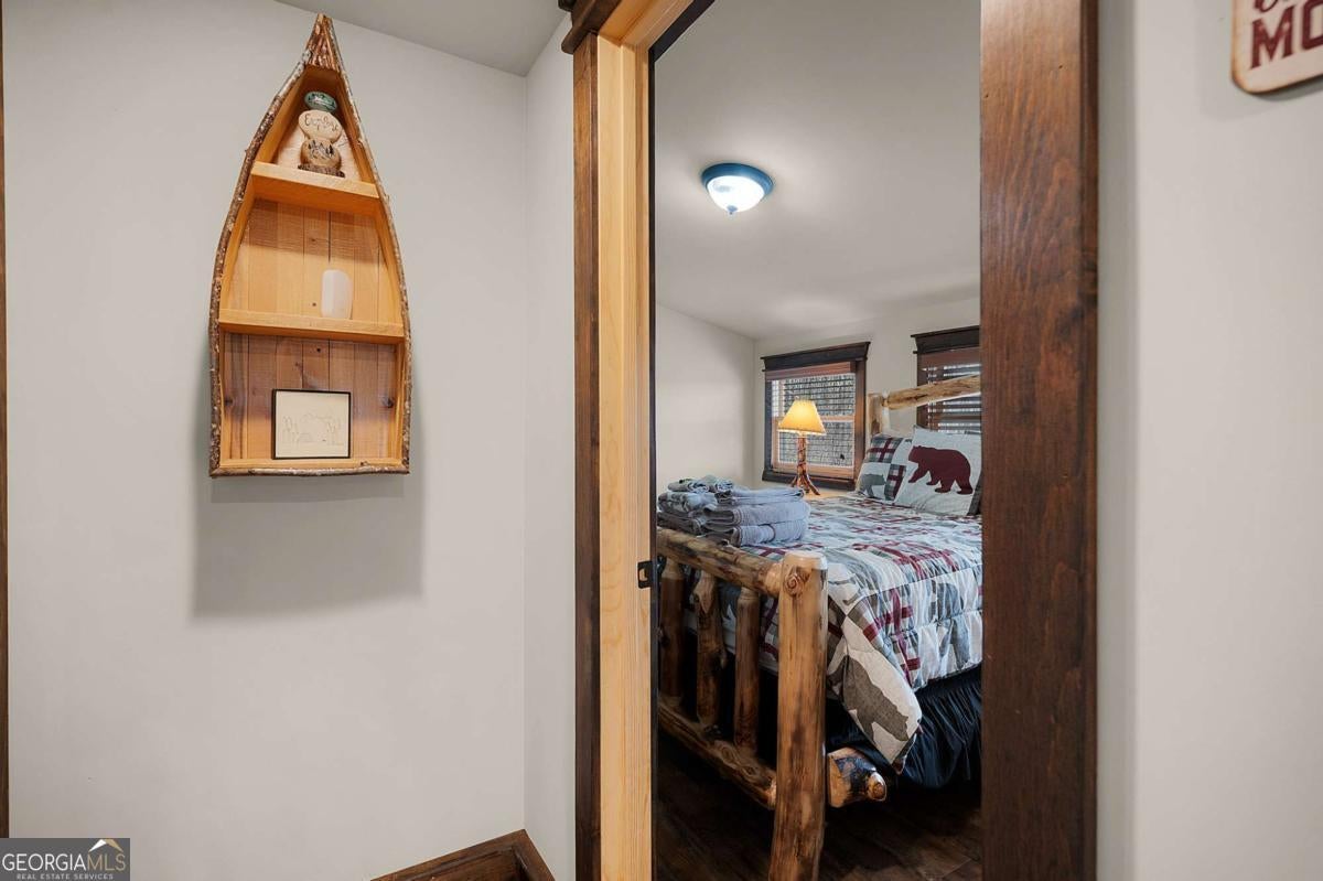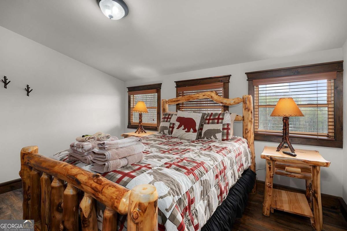 SERENITY!! Nestled atop a mountain, this magnificent log cabin offers a perfect blend of rustic charm and luxurious living. With breathtaking year-round mountain views and a serene valley below, this 4-bedroom, 2 1/2-bath home invites you to embrace the true essence of mountain living. Step inside, where an upscale kitchen and dining room combo await, perfect for entertaining. The spacious living room, featuring a stunning fireplace, provides a cozy ambiance for relaxing while enjoying the panoramic mountain vistas. Master on main floor with double vanity. Upstairs, discover three charming bedrooms, one with a large bonus/game room featuring bunks-a fantastic space for kids or guests. Immerse yourself in nature's beauty as you relax on the full wrap-around porches, where you can watch vibrant sunsets and unwind in the bubbling hot tub under a starlit sky. The crisp mountain air and the crackling fire pit create unforgettable moments of pure enjoyment. This home is ideally located close to downtown Blue Ridge and McCaysville, offering endless opportunities for outdoor adventures, while still being just minutes from local shops and dining. The property is also an active vacation rental, making it a fantastic investment opportunity. House is on 2.25 acres, with an additional adjacent parcel available for $160,000.